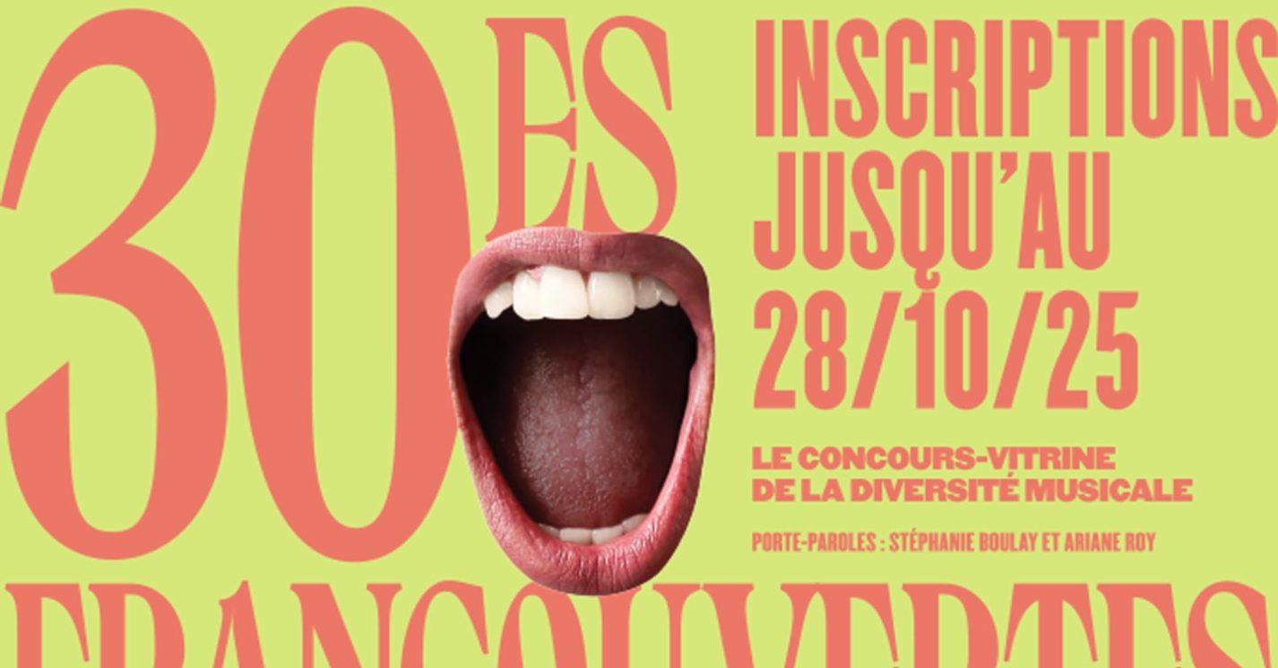 Trente ans, ça se célèbre en grand! En plus de la nouvelle garnison d’artistes et projets musicaux talentueux qui s’inscriront à la prochaine édition des Francouvertes, l’organisation a annoncé que Stéphanie Boulay (gagnante de la 16e édition avec Les Soeurs Boulay), ainsi qu’Ariane Roy (finaliste de la 24e édition) seront les porte-paroles en 2026. Cette nouvelle édition se déroulera du 9 mars au 11 mai 2026, au Cabaret Lion d’Or, au Club Soda pour la finale, et en ligne pour ceux et celles qui veulent suivre le concours dans le confort de leur salon. 21 projets et artistes seront sélectionnés!