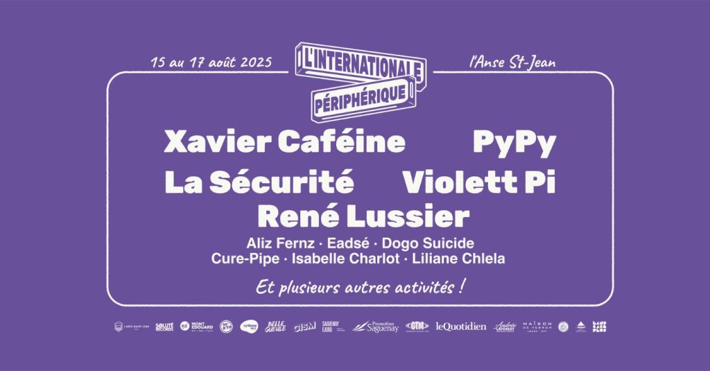 Pour sa première édition, l’équipe du festival a convié une douzaine de projets émergents et actuels. Lors de la première journée, celle du vendredi 15 août 2025, on y retrouvera les Saguenéens de Cure-Pipe, Alix Fernz et son post-punk, VioleTT Pi et la gang du groupe art punk La Sécurité.