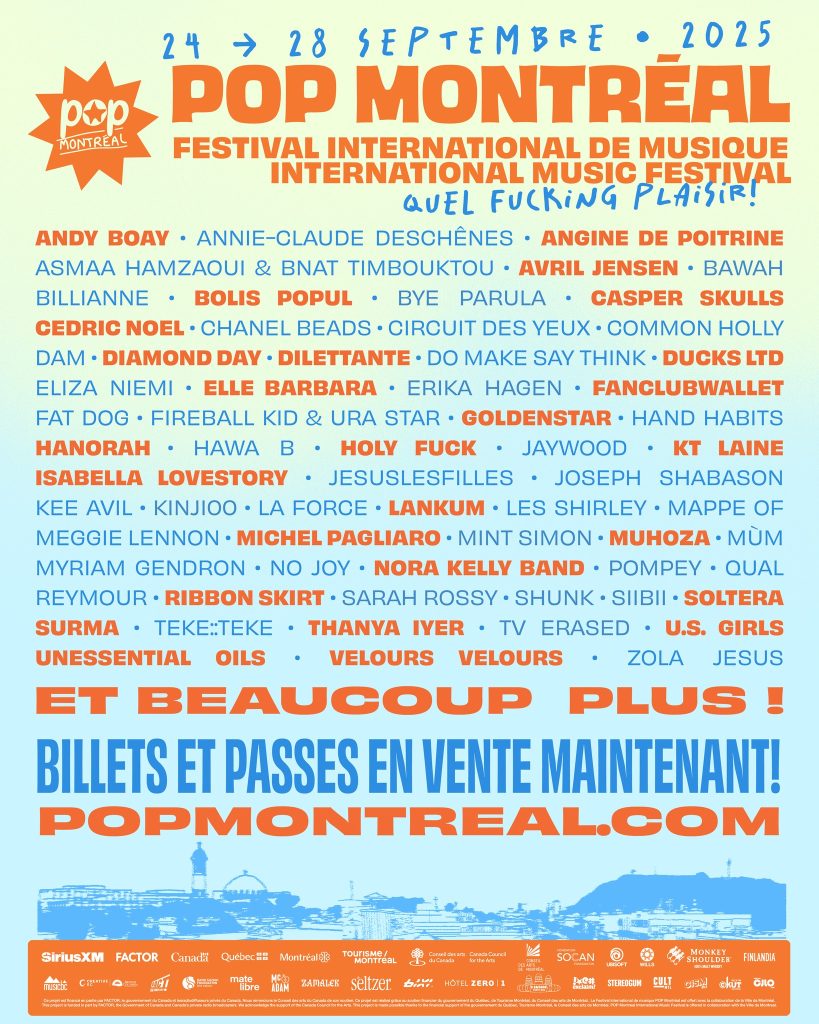 Cette fois, POP Montréal complète sa programmation 2025 avec plusieurs autres noms. Parmi ceux ci, on retrouve Angine de Poitrine, groupe masqué qui est sur toutes les lèvres actuellement, Unessential Oils, Thanya Iyer, fière d’un passage au Festival de Jazz cet été, Ribbon Skirt, Hanorah et Muhoza, grand gagnant des Francouvertes 2025.