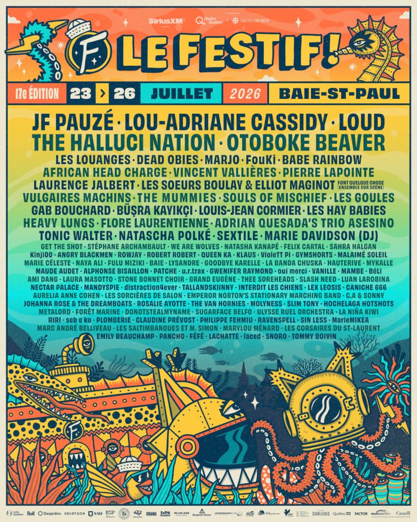 Pour sa 17e édition, le Festif! de Baie-St-Paul reste fidèle à ses habitudes avec un savant mélange d’artistes d’ici et de groupes de l’étranger qui se démarquent par la qualité de leurs propositions. 120 artistes passeront par la ville de Charlevoix entre le 23 et le 26 juillet prochain. On avait déjà su que le Festif! verrait le retour en grande pompe de Dead Obies. Ce ne sont pas les seuls artistes du milieu du rap québécois qui seront de la partie, puisque Loud, FouKi, Kinji00, Rowjay, Naya Ali et quelques autres seront de la partie.