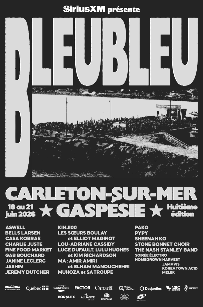 Déjà une huitième édition pour le festival BleuBleu qui se tient à Carleton-sur-Mer. Gros changement pour cette édition, le festival n’est pas collé à la Saint-Jean comme les éditions précédentes. C’est Lou-Adriane Cassidy qui est la tête d’affiche de cette nouvelle édition. Celle qui a gagné 12 Félix au dernier gala de l’ADISQ sera un peu partout cet été dans les festivals. On pourra aussi y voir Jeremy Dutcher, Gab Bouchard, Kinji00 et Les Sœurs Boulay & Elliot Maginot, qui propose un projet commun cet été.