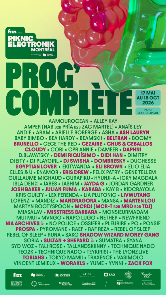 Comme chaque année, le Picnik Électronik proposera une bonne quantité d’artistes québécois qui prendront la scène au cours de l’été. On pourra notamment y voir Shadow Wizard Money Gang, qui fait de plus en plus parler de lui ici au Québec, notamment avec sa collaboration avec Kinji00. On pourra y voir Tallandskiinny, Arielle Roberge, Sweet Like Honey, Guillaume Michaud, Gene Tellem, Kris Guilty, Mandiz, KARABA, Lia Plutonic, Isla Den et plusieurs autres.