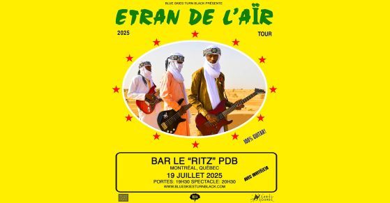 Etran de l’Aïr est un groupe de rock du désert d’Agadez au Niger formé en 1995. Le nom de la formation veut dire : les étoiles de L’Aïr. Ce dernier étant un massif important qui borde la ville d’Agadez qui est situé entre le désert du Sahara et le Sahel. La formation est composée de Moussa Ibrahim, Abdourahamane Ibrahim, Abdoulaye Ibrahim et Alghabid Ghabdouan. Les trois premiers sont des frères.