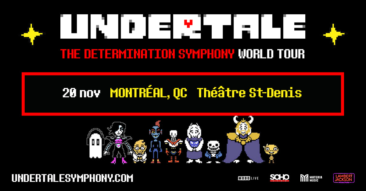 La tournée symphonique pour interpréter la musique du jeu vidéo Undertale s'arrêtera à l'Espace Saint-Denis le 20 novembre prochain. |