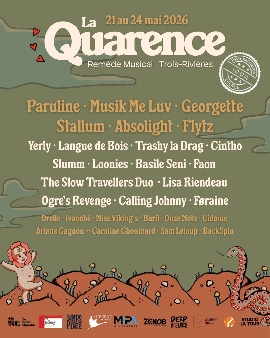 La Quarence aura lieu à Trois-Rivières du 21 au 24 mai et met en vedette : Paruline, Georgette, Musik Me Luv, Stallum, Absolight, Flytz et bien plus.