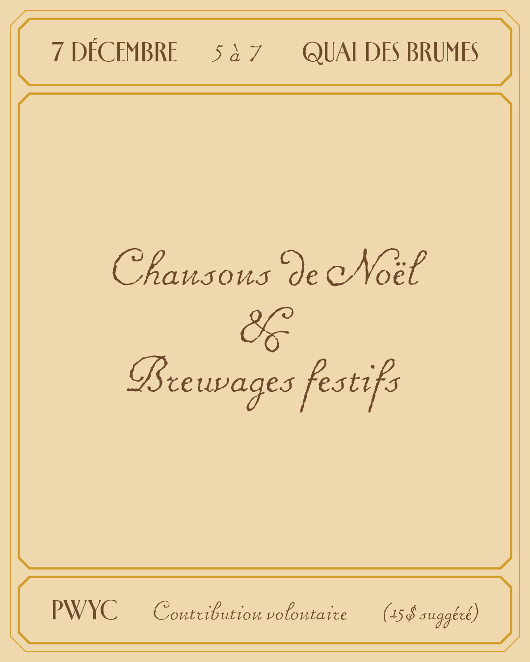 C'est en mode 5 à 7 que Belle Grand Fille vous convie au Quai des Brumes pour présenter les pièces de son EP Noël nouvelet. Sandra Contour et Jeanne Côté se joignent à la fête.