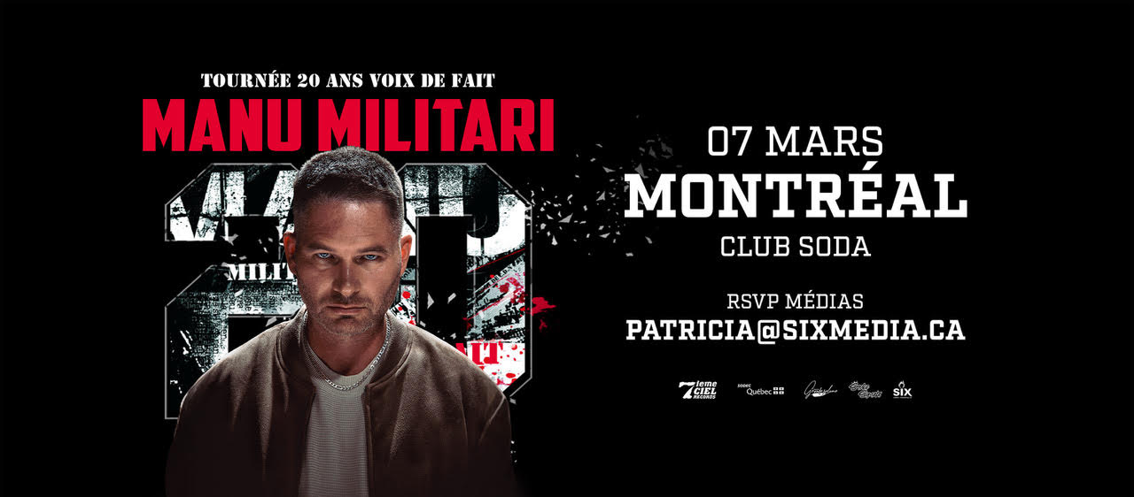 Manu Militari fêtera les 20 ans de l'album Voix de fait le 7 mars prochain au Club Soda dès 20h.