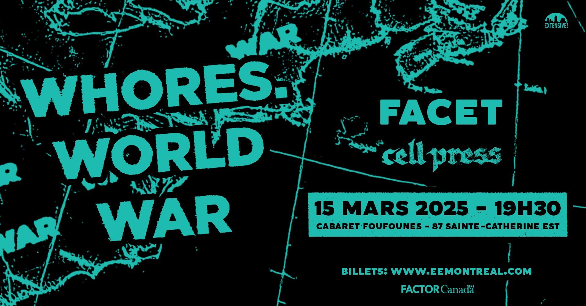 Les groupes Whores., Facet et Cell Press seront en concert aux Foufounes Électriques, à Montréal, le 15 mars 2025.