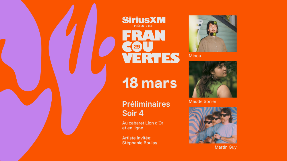 La quatrième soirée des préliminaires des Francouvertes 2025 mettra en scène Minou, Maude Sonier et Martin Guy.