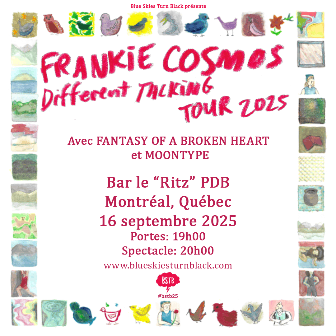 Frankie Cosmos, Fantasy of a Broken Heart et Moontype seront en concert le 16 septembre au Bar le Ritz P.D.B. dans le cadre de leur tournée.