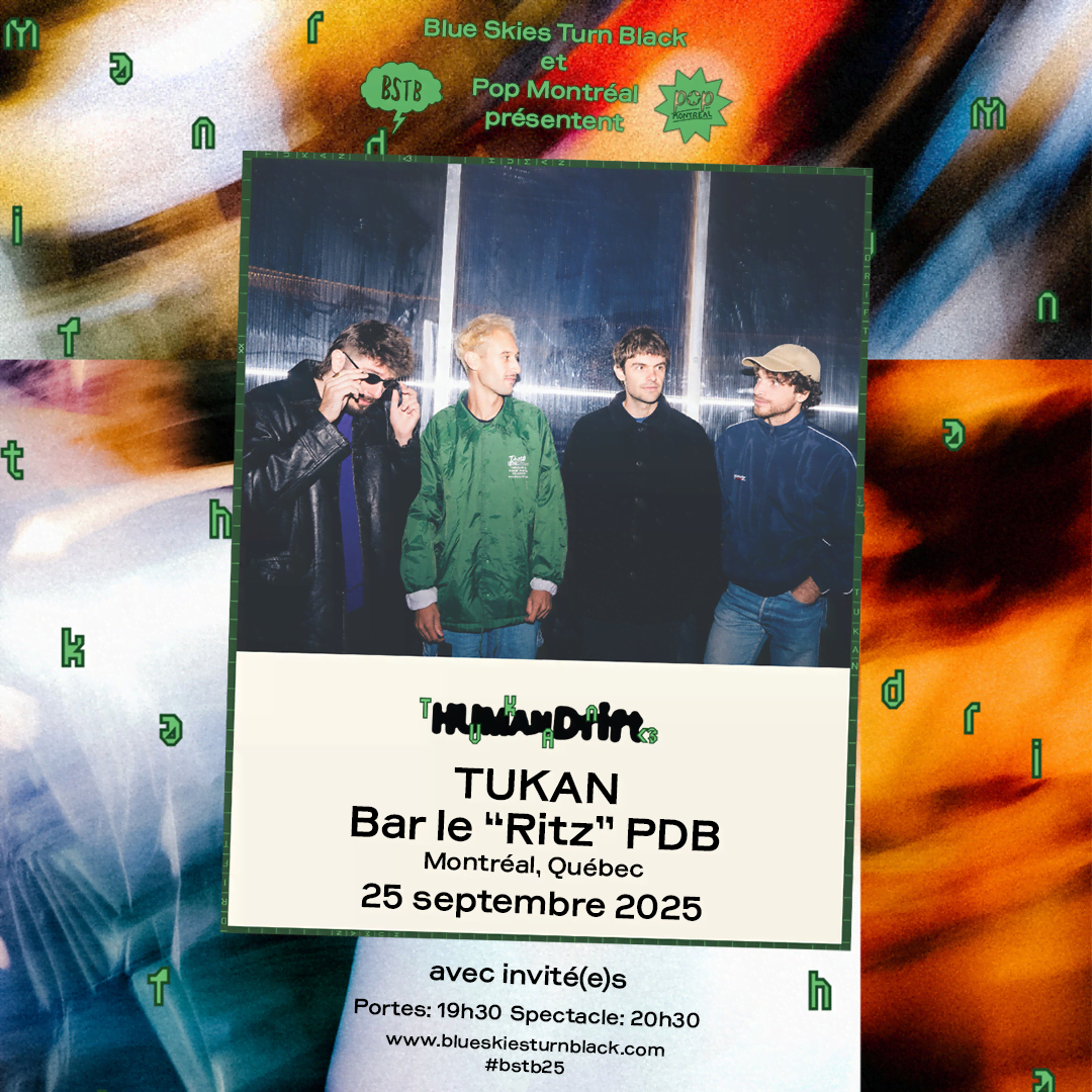 Tukan seront en concert le 25 septembre au Bar le Ritz P.D.B. dans le cadre de leur tournée Human Drift. |