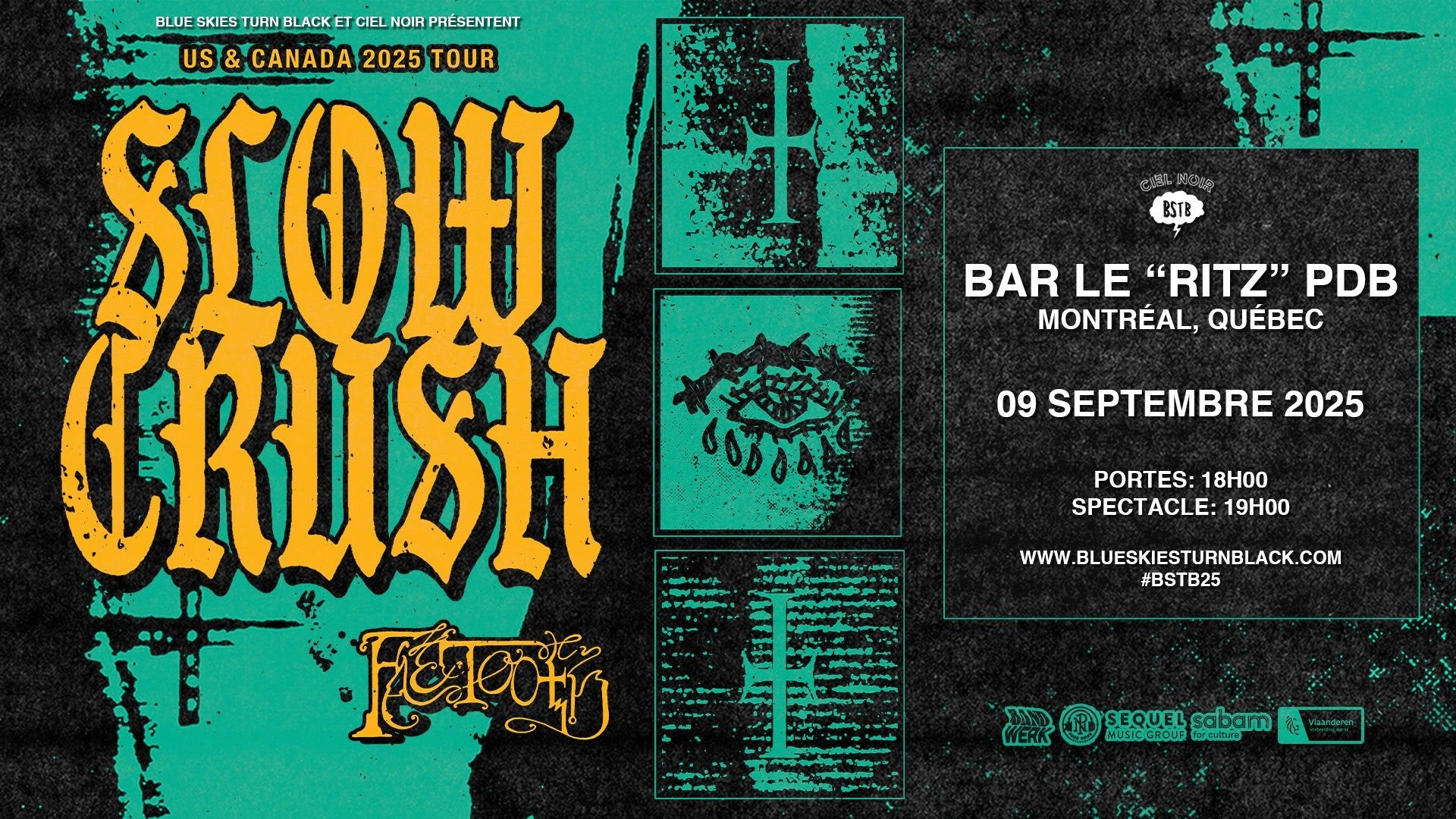 Slow Crush et Faetooth seront de passage à Montréal au Bar le Ritz PDB le 9 septembre prochain dans le cadre de leur tournée. |