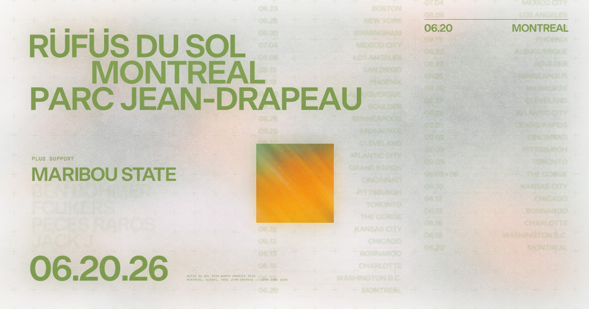 Rüfüs Du Sol et Maribou State feront un arrêt au Parc Jean-Drapeau dans le cadre de leur tournée nord-américaine le 20 juin prochain. |