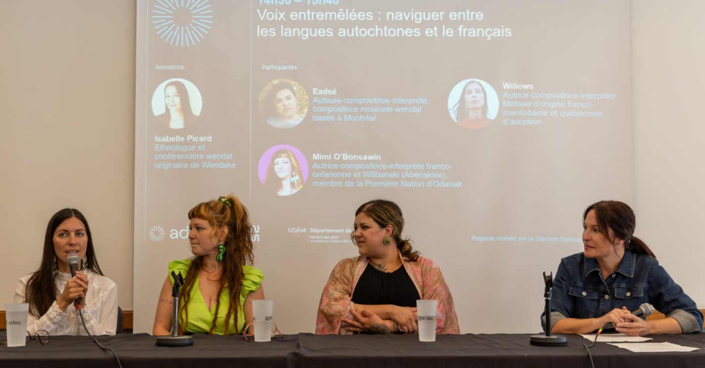 Le 26 septembre dernier, des membres de l’industrie musicale étaient conviés à l’UQAM pour une journée entière de réflexion philosophique sur l’état de la chanson au Québec et au Canada. Loin des préoccupations financières, la journée était là pour poser des questions profondes sur l’état des choses actuellement au Canada. Dans ce troisième texte, on parle la relation entre les langues autochtones et le français pour trois autrices-compositrices-interprètes à la pratique établie.