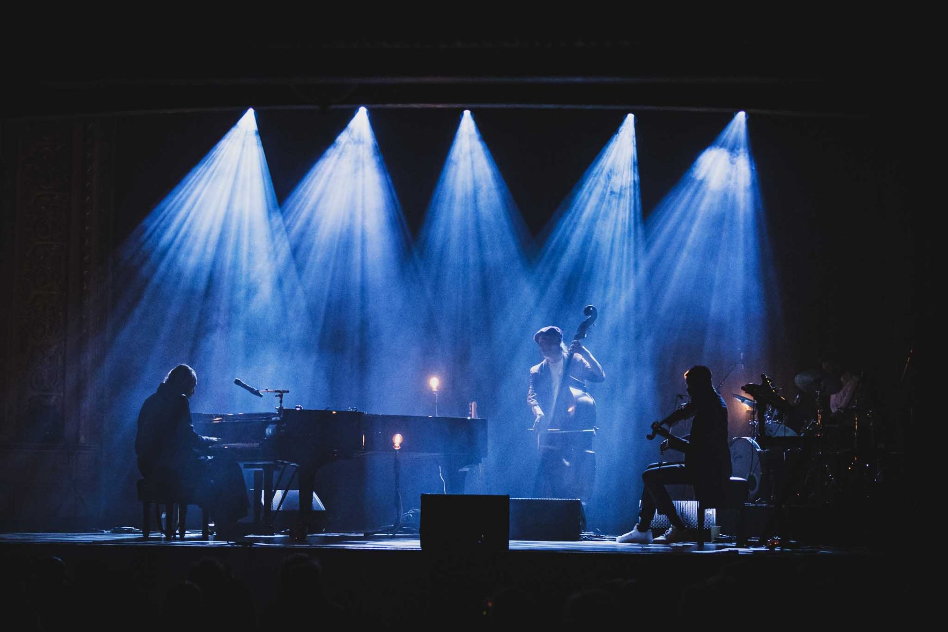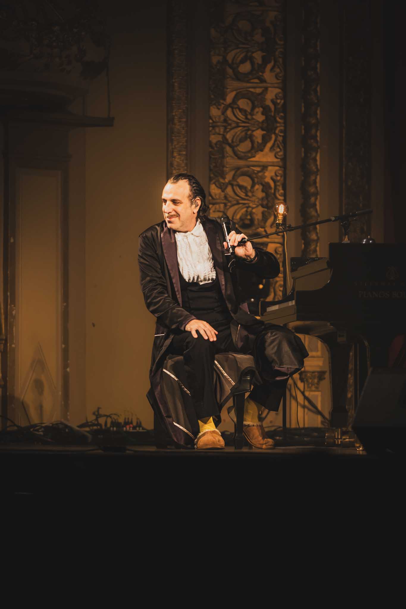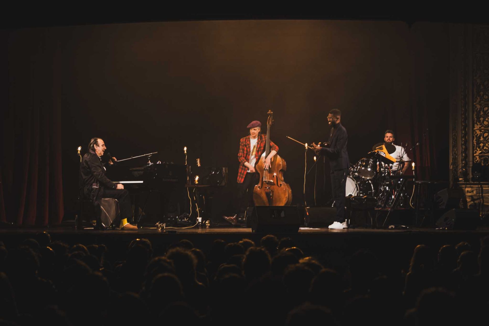 Trois musiciens l’accompagnaient sur scène et chacun, ou presque, échangeait d’instrument en cours de route. Ouvrant sur une nouvelle composition, Gonzo est immortalisé dans ce vieux théâtre comme une sorte de comte venant d’une autre époque. Peignoir avec des pantoufles, apprêté comme un chef d’orchestre, il représente le respect. Les musiciens s’échangent des regards complices qui éliminent la barrière sérieuse des spectacles de musique classique.