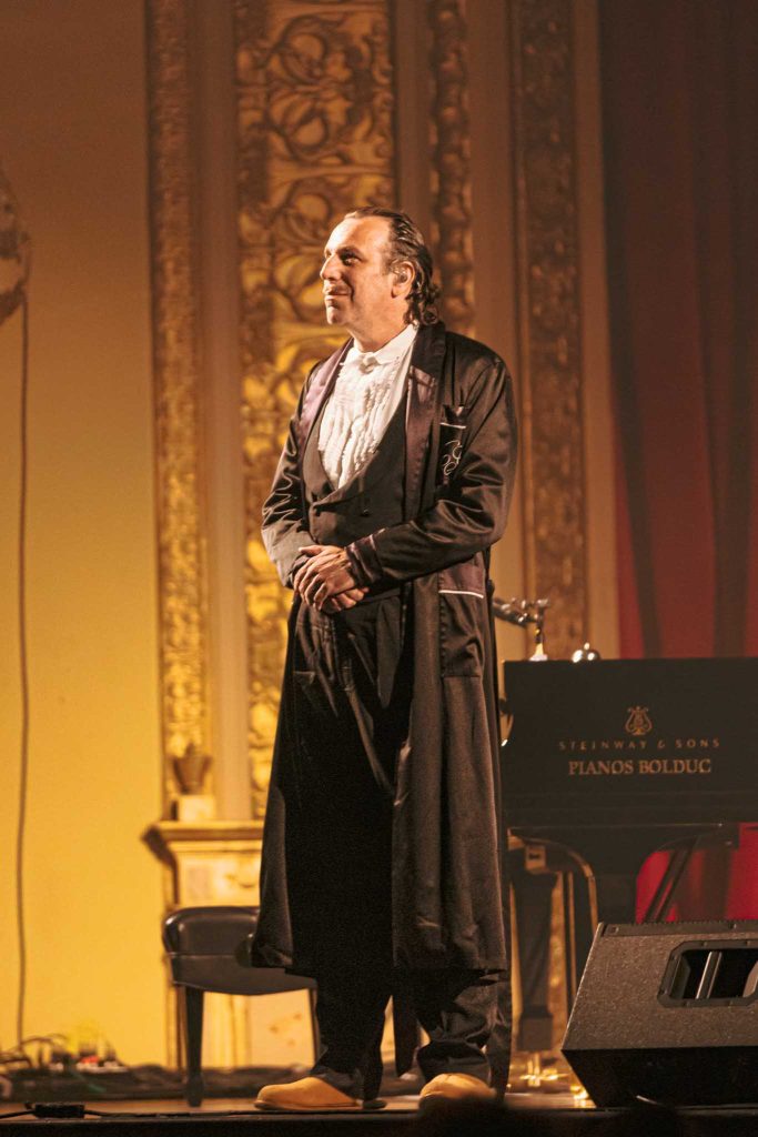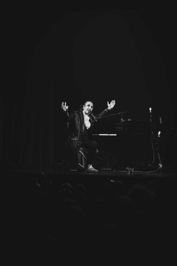 Pour les non-initiés, Chilly Gonzales n’est pas un interprète qui se colle à la tradition d’un spectacle de musique classique. Née musicalement entre les cahiers de piano autour du 514 et à la contre-culture berlinoise des années 2000, il n’y a rien pour le choquer. Il est connu pour aller jusqu’à faire du crowdsurf avec son public (spoiler il ne l’a pas fait pour cette fois-ci.) Artiste improbable, ma question était plutôt portée sur le type de matériel qu’il allait chanter. Connu mondialement pour ses albums en solo au piano, il a sorti plusieurs albums où il chante aussi.