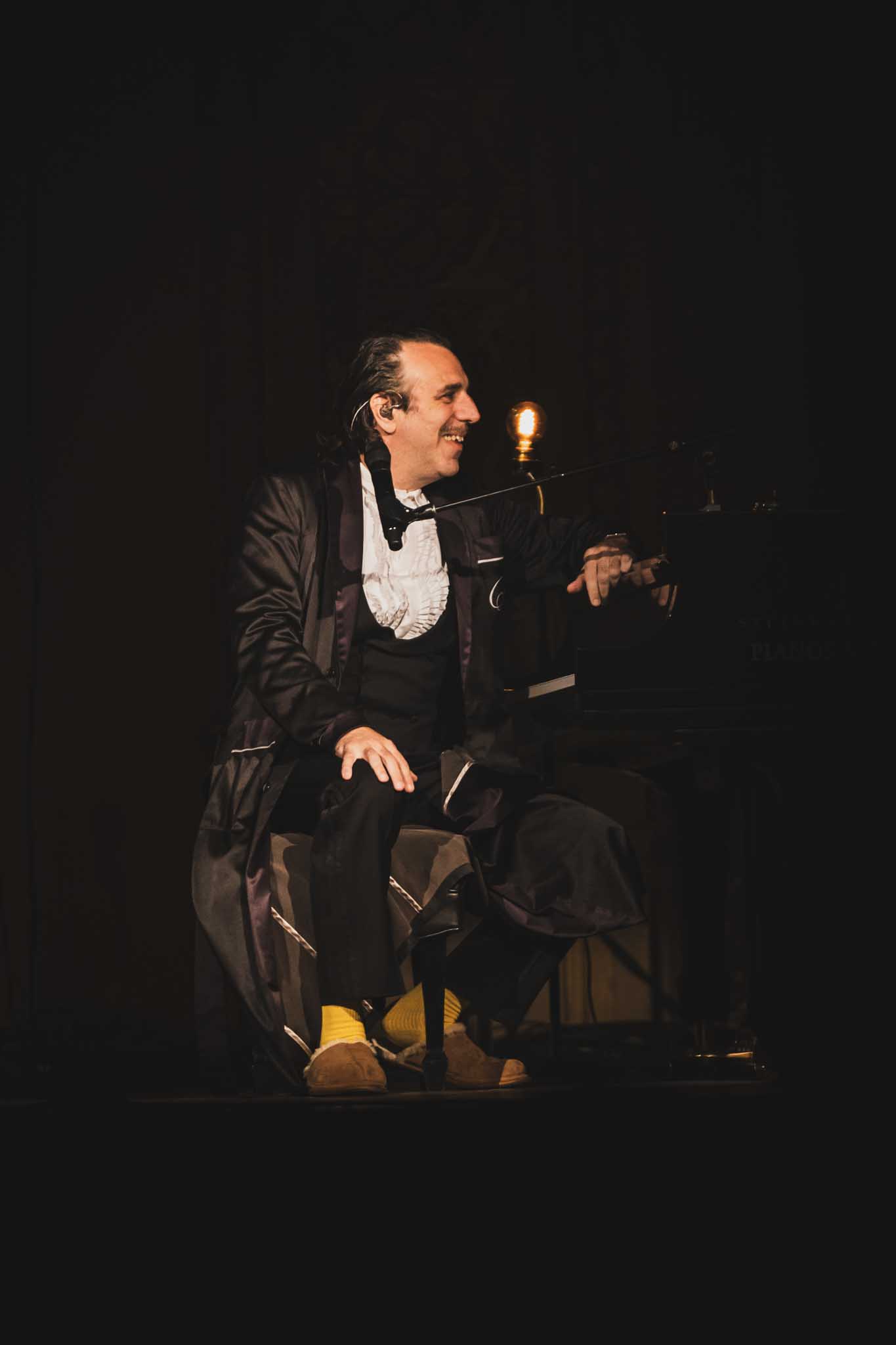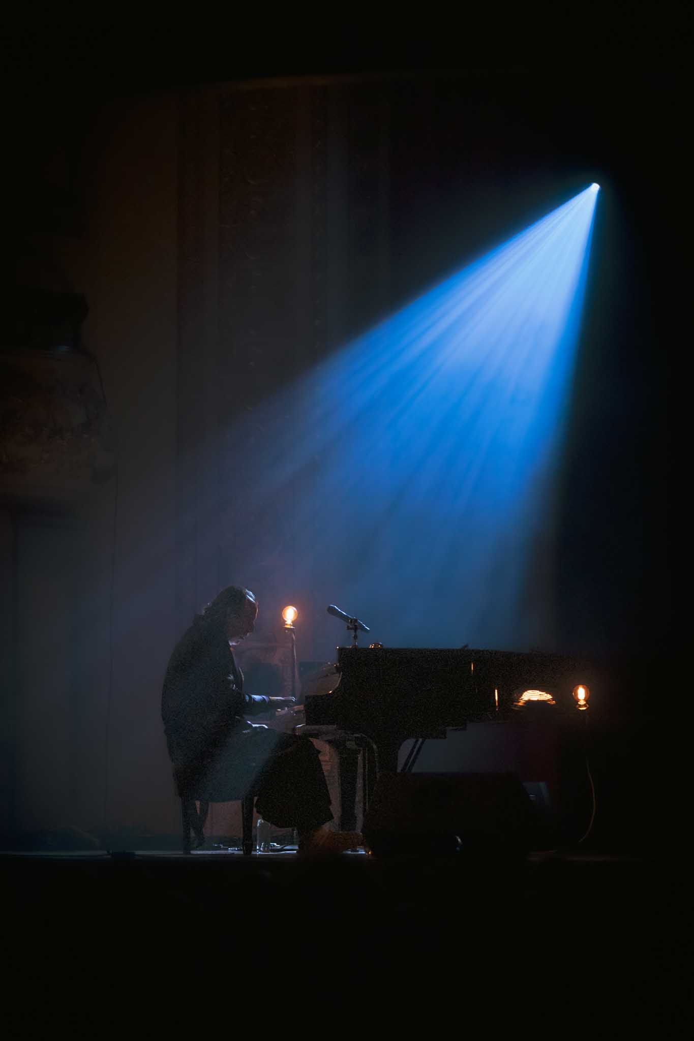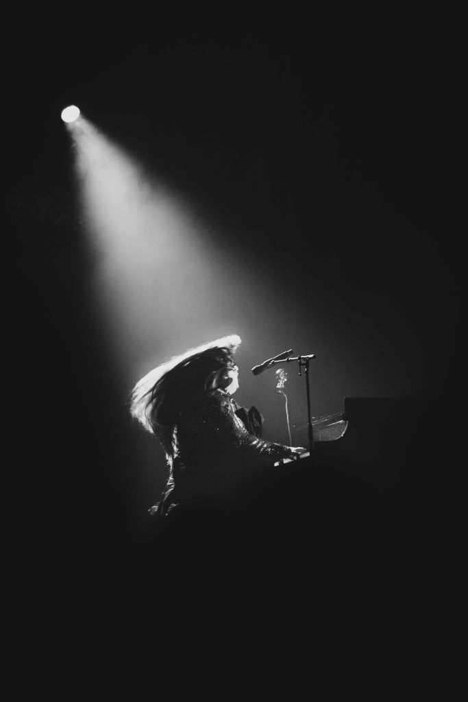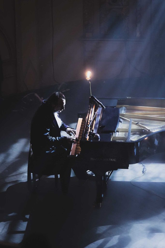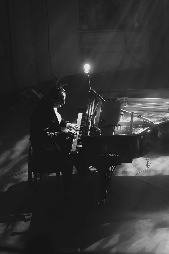 Puis, retour au piano en solo. Le jeu de lumière étant sombre, seul le reflet du visage y est exposé. Jouant les mêmes chansons à répétition, il s’est encore amusé à varier les notes de l’interprétation originale.
