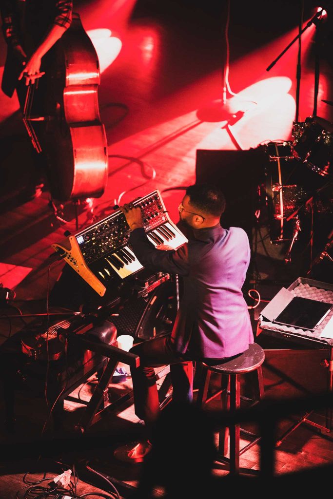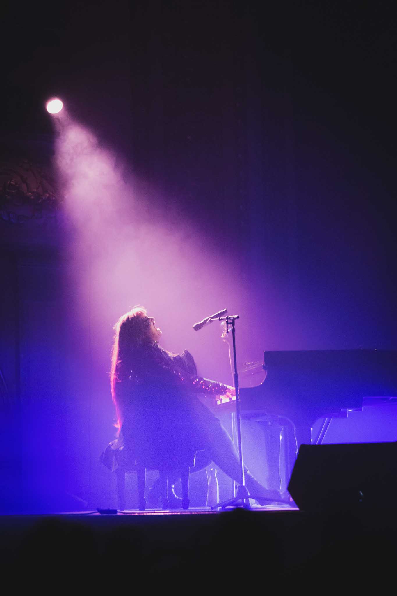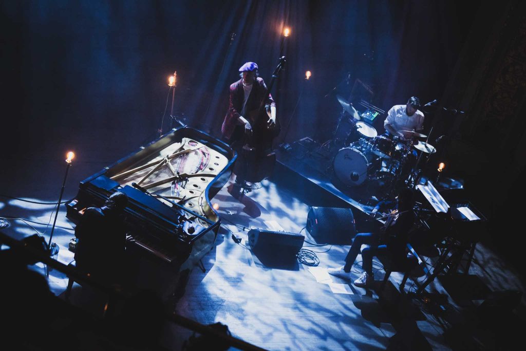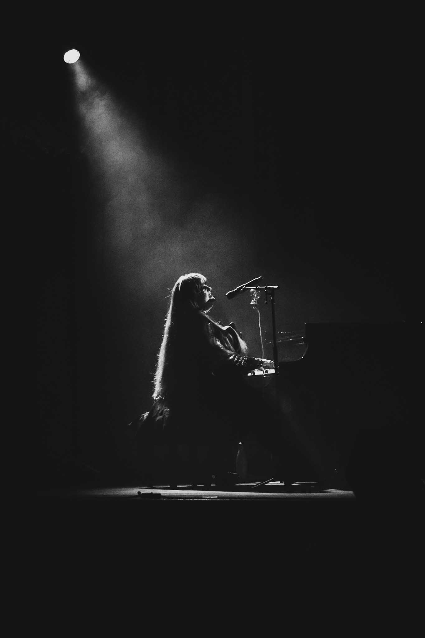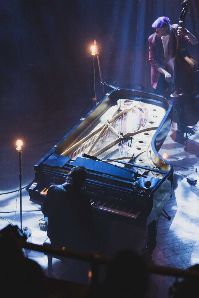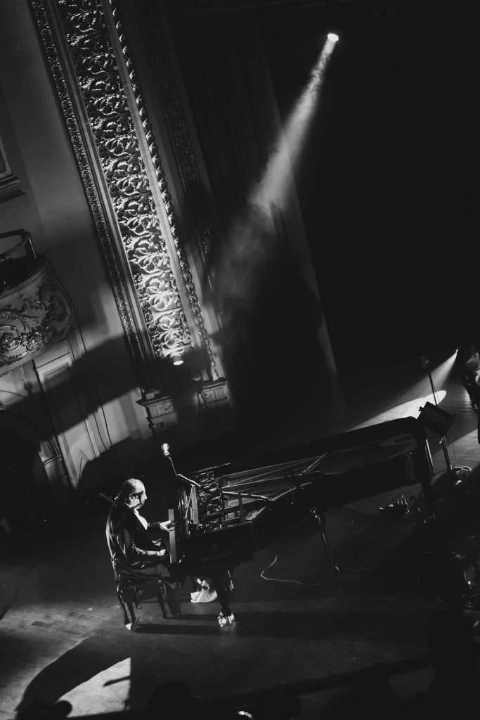 Collaboratrice de longue date de l’exilé montréalais, il n’était pas surprenant de la voir en première partie. En mode piano solo, la proposition de l’artiste, originaire de l’état de New York, est marginale, mais charmante. Avec sa longue robe à paillette, ses cheveux qui bougent au rythme de la musique et son jeu qui rappelle la commedia dell’arte, nous ne sommes pas devant une personne qui se prend au sérieux.