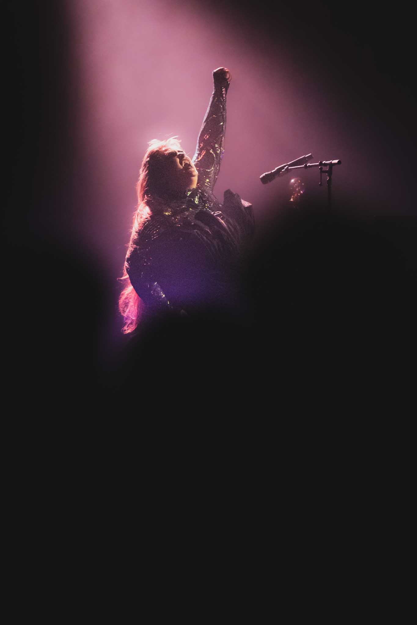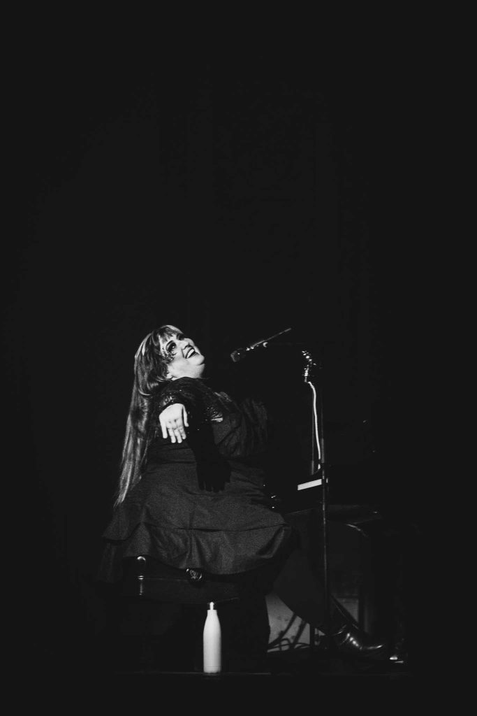 Entre la voix grave qui crie fort et le jeu intense qui rappelle une pièce de commedia dell’arte, on ne peut pas rester sérieux pendant ce concert. Pourtant, on ne sent aucun malaise. L’artiste a une joie de vivre intense, mais rigole sur le fait qu’elle chante des chansons avec des thèmes assez sombres. Une première partie avec la même règle que Gonzo qui dit que les règles sont faites pour être brisées.