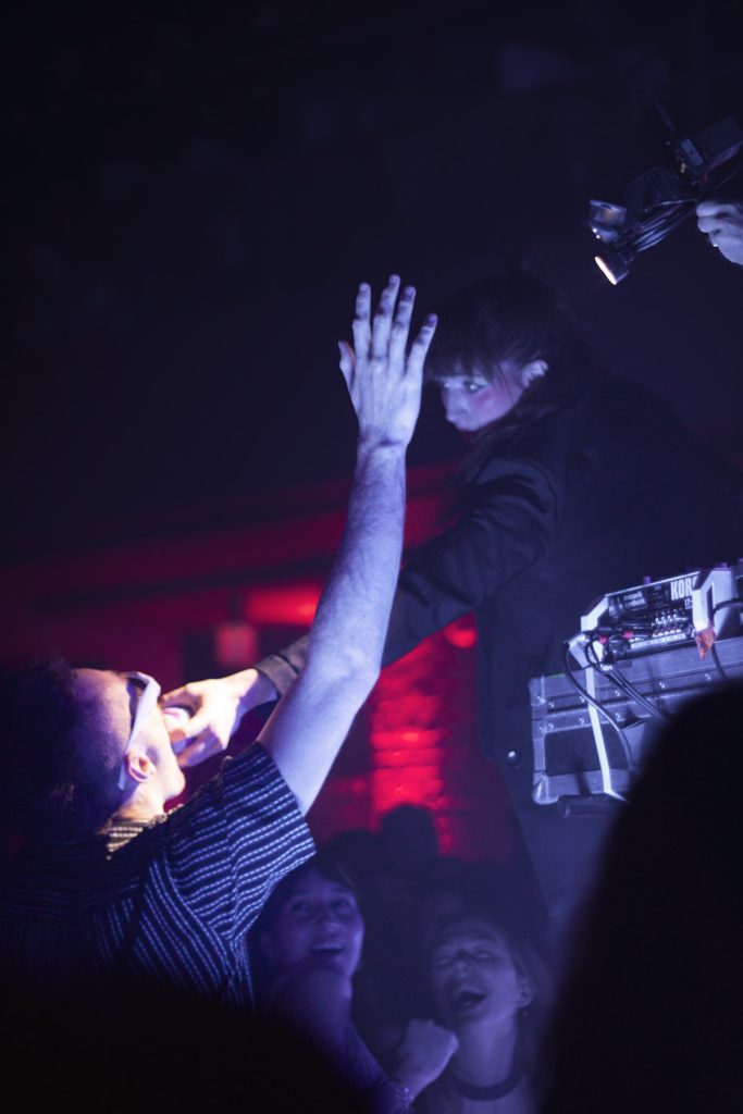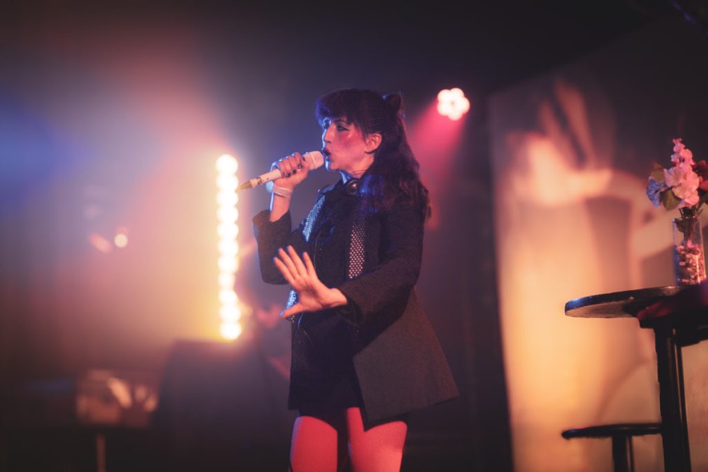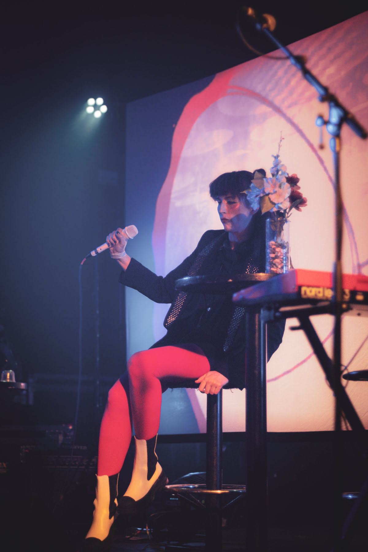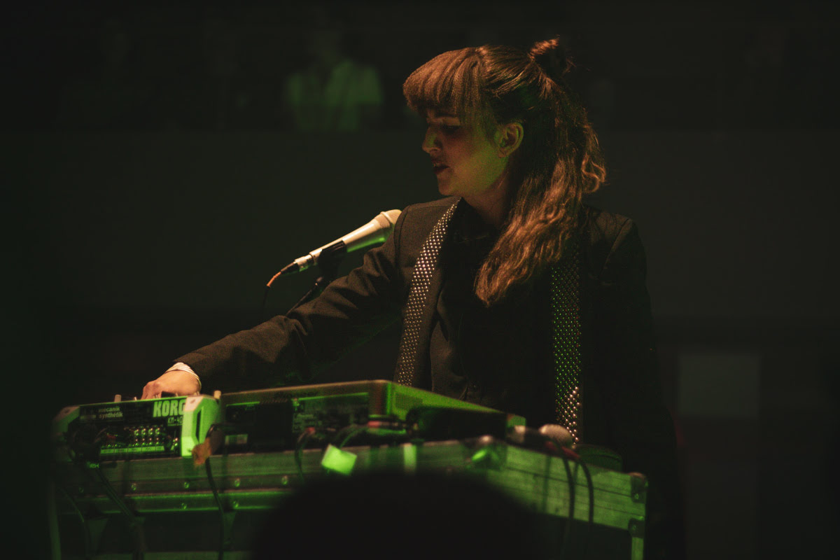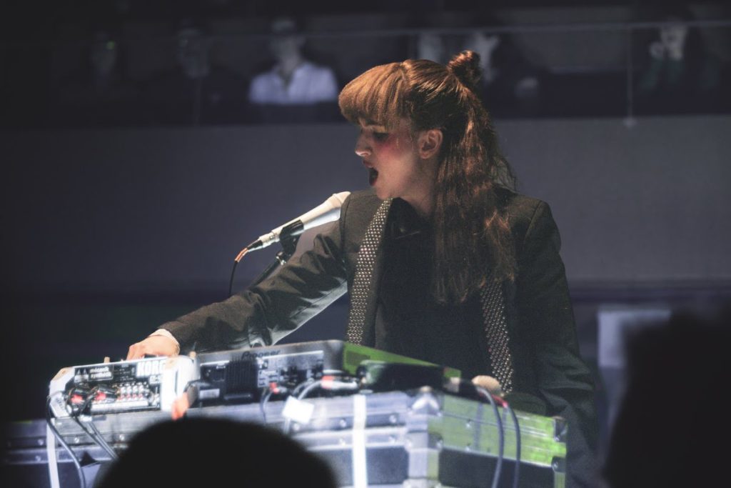 L’artiste, qui ne laisse rien au hasard, avec son œil aiguisé pour la mise en scène, accompagnait les chansons électroniques et pop minimales de son album LES MANIÈRES DE TABLE avec un concept de restaurant glauque et mystérieux. Au milieu de la foule, une équipe de service est arrivée, plateau à la main, pour une distribution de collations. Crèmes caramel ou puddings ont été consommés. Alors qu’Annie-Claude Dechêsnes s’affairait sur scène et que le service battait son plein, des images étaient également projetées derrière la scène. On pouvait y voir les captations, en direct, de son caméraman qui, lampe de poche à la main, enregistrait les mauvaises manières des convives. C’était comme si l’émission Les Chefs avait été tournée à la Blair Witch Project. Décadent.