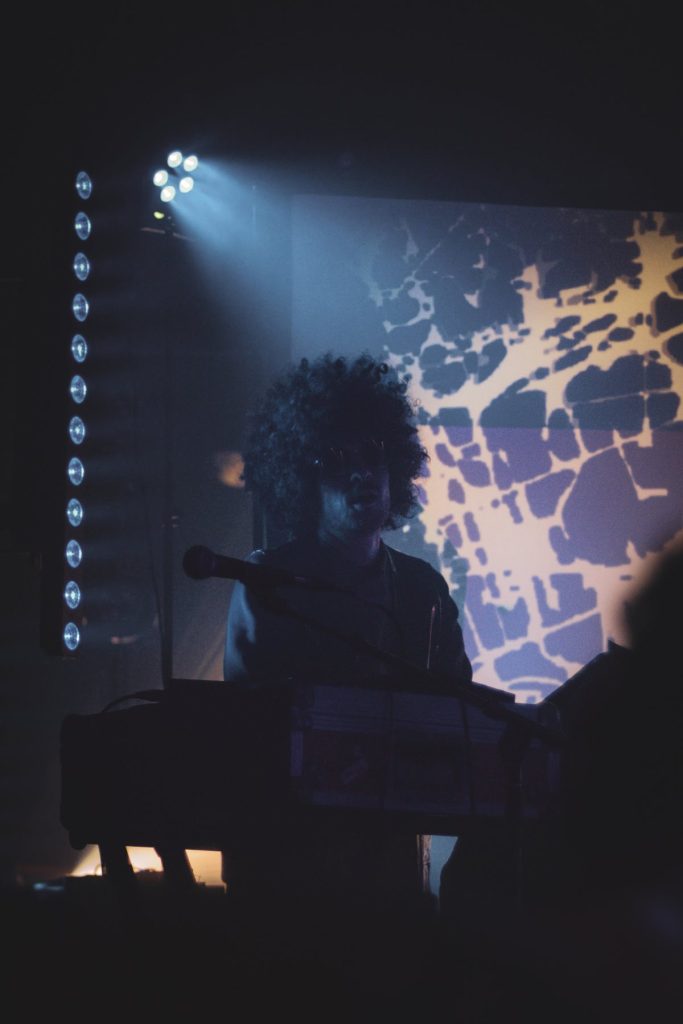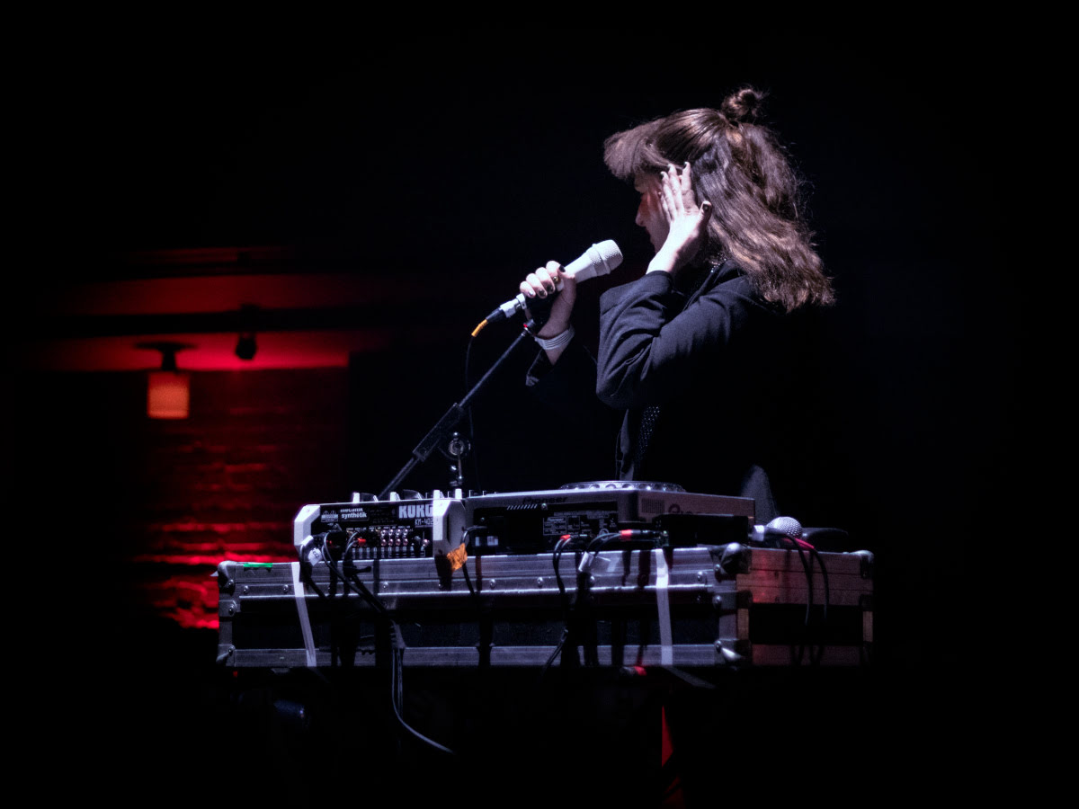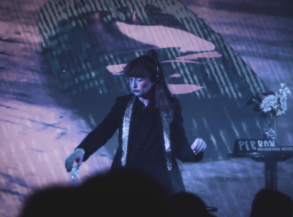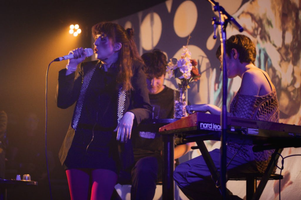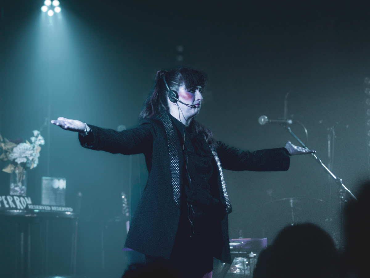 L’artiste, qui ne laisse rien au hasard, avec son œil aiguisé pour la mise en scène, accompagnait les chansons électroniques et pop minimales de son album LES MANIÈRES DE TABLE avec un concept de restaurant glauque et mystérieux. Au milieu de la foule, une équipe de service est arrivée, plateau à la main, pour une distribution de collations. Crèmes caramel ou puddings ont été consommés. Alors qu’Annie-Claude Dechêsnes s’affairait sur scène et que le service battait son plein, des images étaient également projetées derrière la scène. On pouvait y voir les captations, en direct, de son caméraman qui, lampe de poche à la main, enregistrait les mauvaises manières des convives. C’était comme si l’émission Les Chefs avait été tournée à la Blair Witch Project. Décadent.