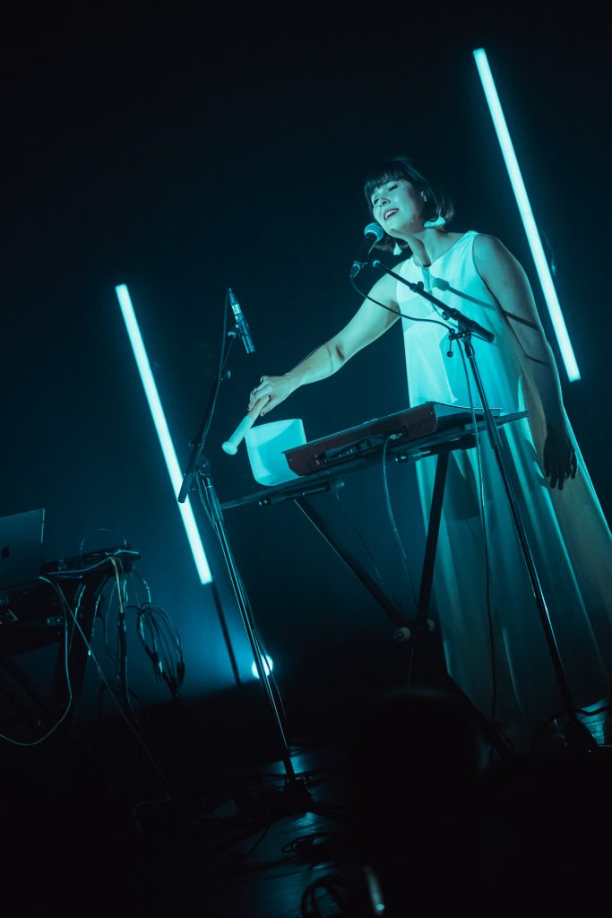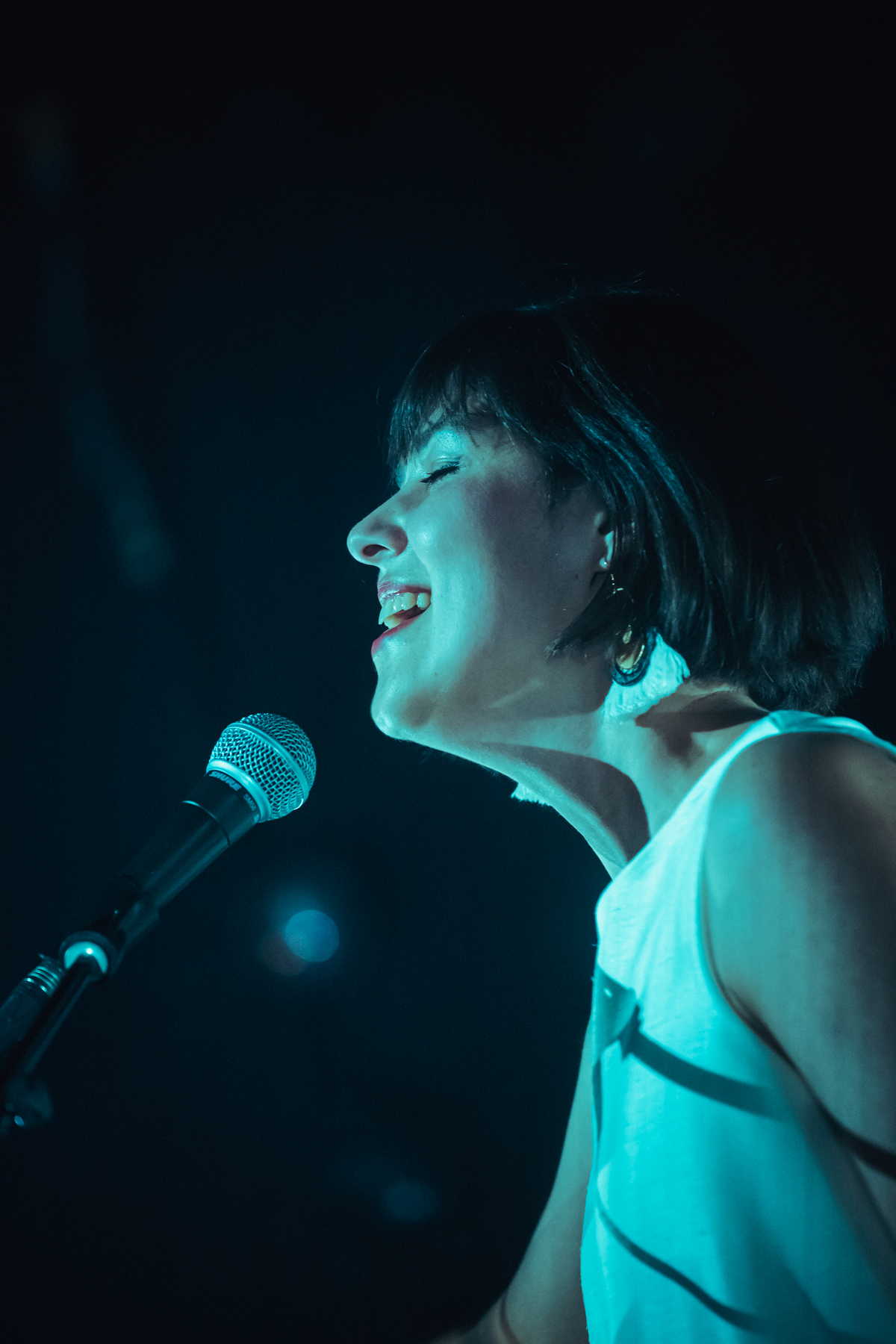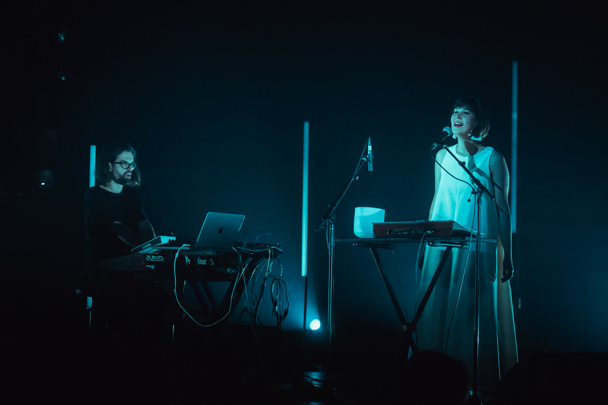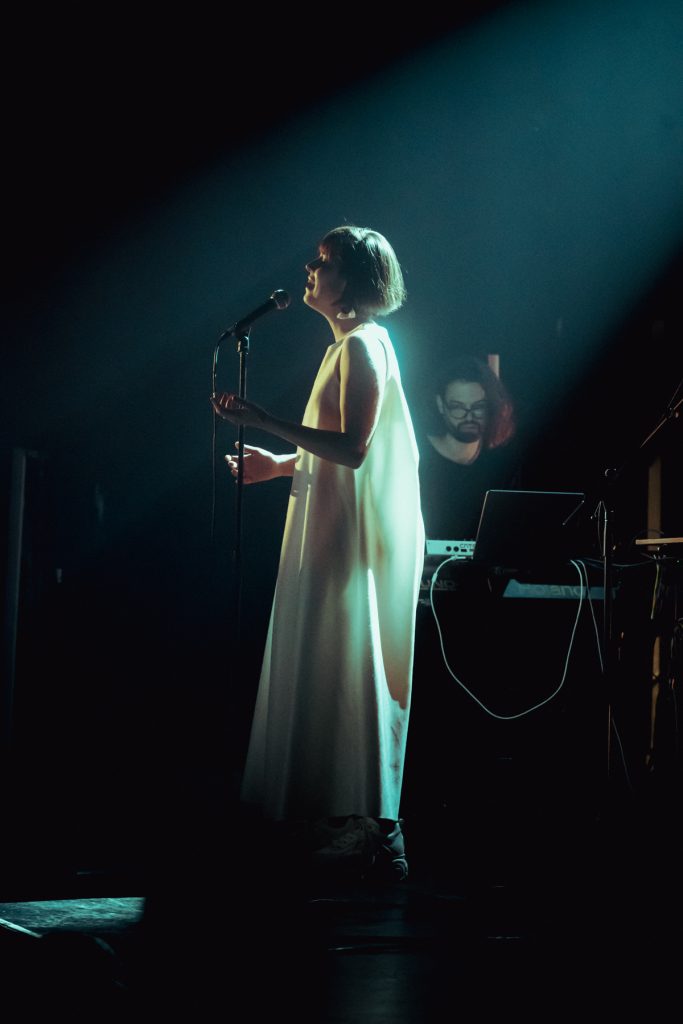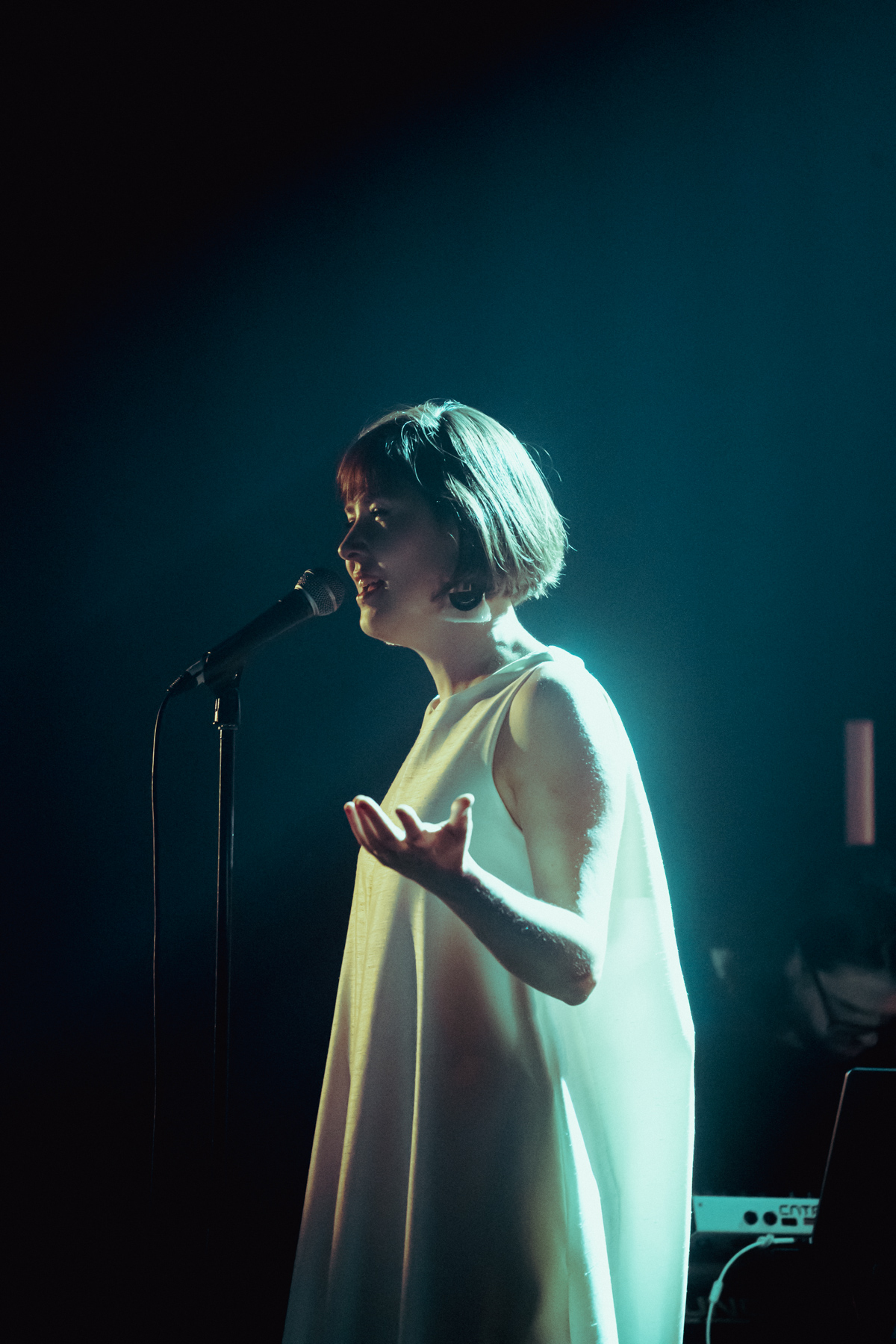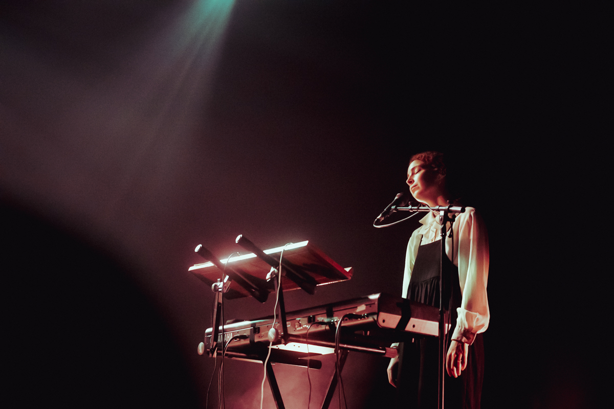 Jessica Hébert, de son vrai nom, est apparue sur scène, derrière son clavier, suivie d’une harpiste et d’une violoncelliste qui allait apporter une instrumentation riche à la performance. Le petit groupe nous a ainsi conviés au cœur de l’album still, there is the sea, un projet étoffé et sensible qui nous a beaucoup plu lors de sa sortie au début du mois de juin.
