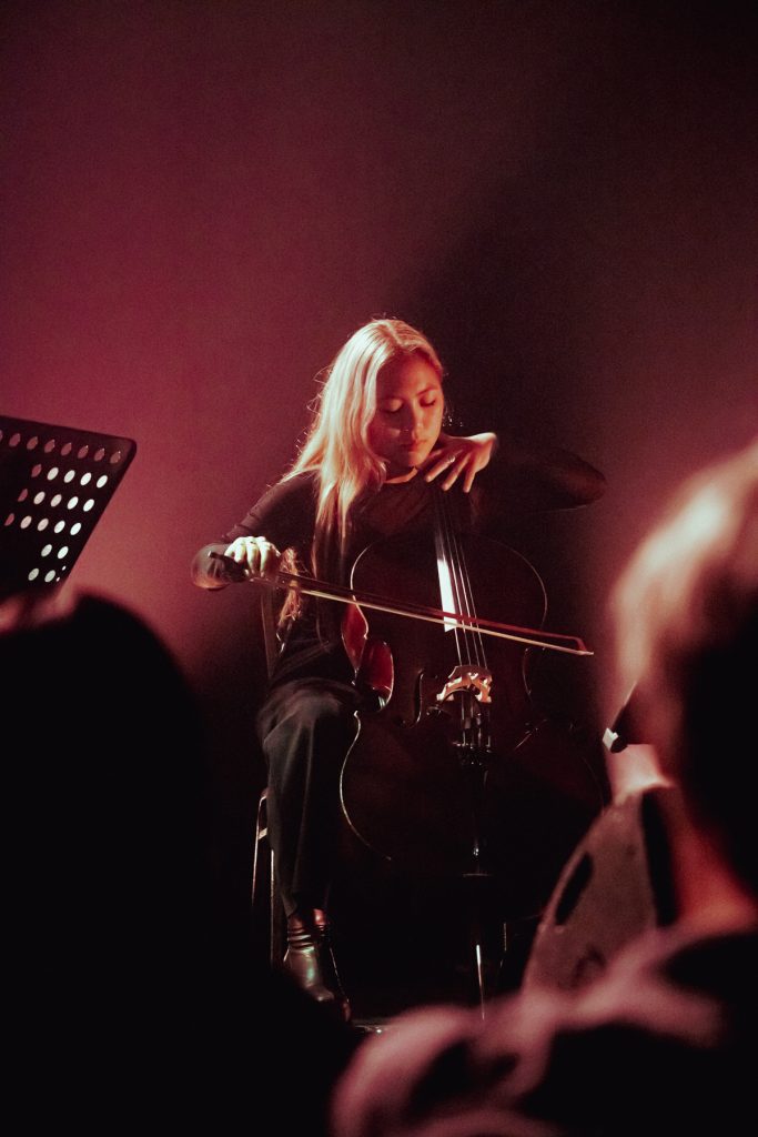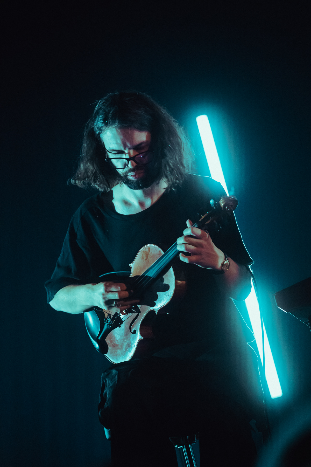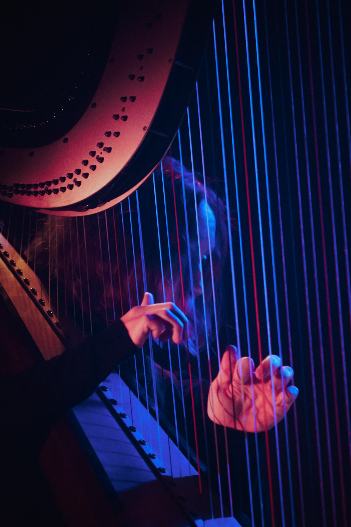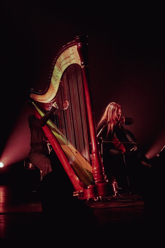 Le public, toujours nombreux et attentif, a vogué entre les morceaux mélodiques et organiques du record, comme the sun, the sky, eau miroir et atlantis. Au clavier, Ambre Ciel ponctue les chansons, subtilement, ou plus librement, avec l’apport de boucles texturées, alors que la harpe naïve et optimiste s’agence aux notes plus lancinantes du violoncelle. La voix de l’artiste, douce et riche à la fois, complète le tout en nous berçant et nous entrainant dans des moments contemplatifs qui nous obligent à fermer les yeux, alors qu’on tente de tout capter avec notre ouïe.
