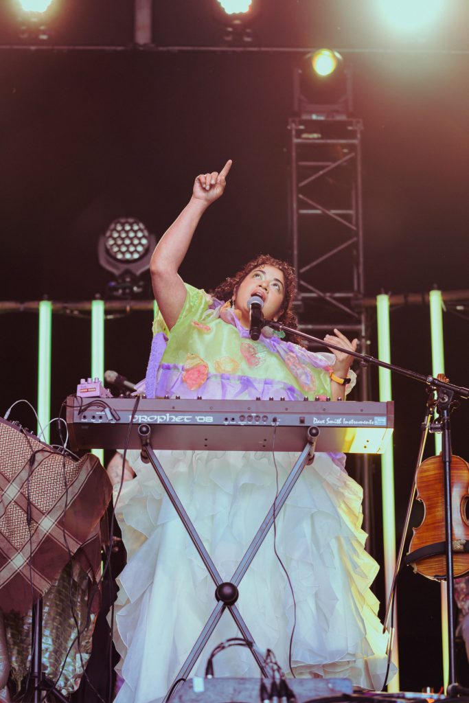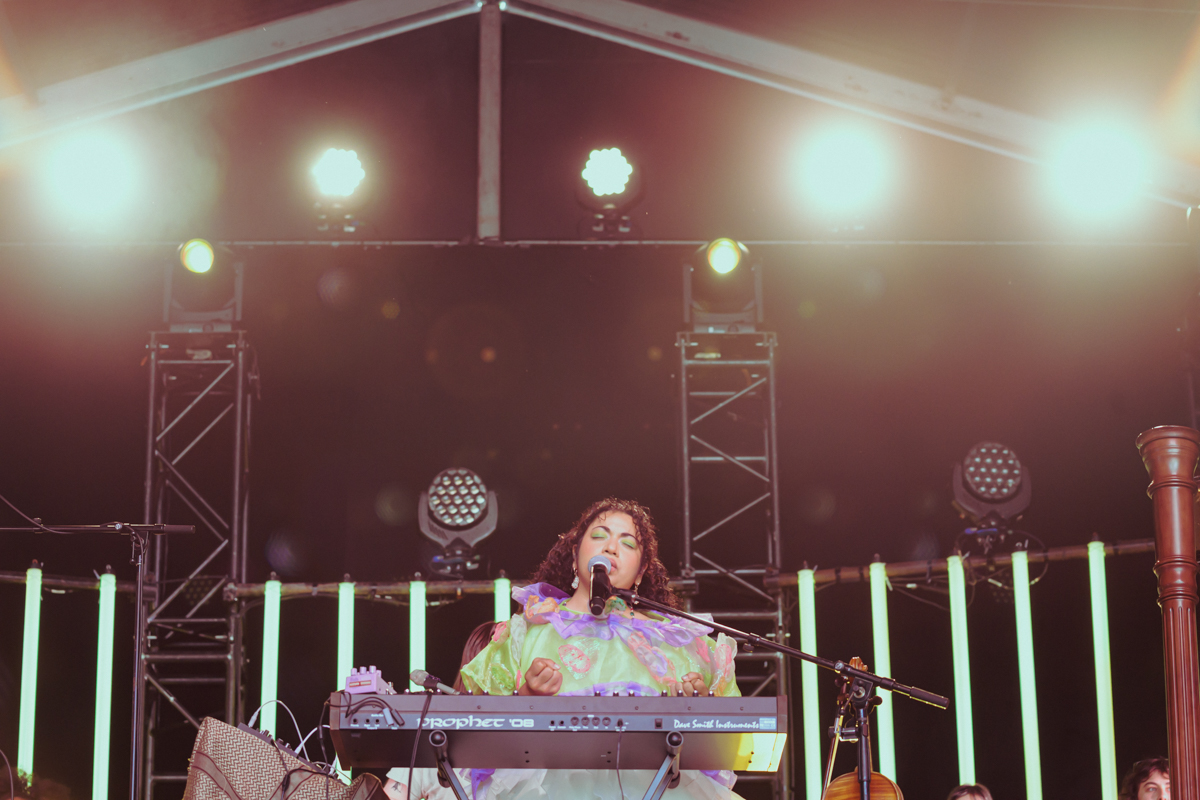 Ayant lancé un nouvel album à la fin avril, Thanya Iyer et son band ont dédié une bonne partie du concert aux chansons future-folk, ambiant et jazz-pop qui habitent TIDE/TIED. C’est au son de jolis morceaux, comme Low Tides, Where does that energy go? et I am here now, que la formation a démontré sa forte cohésion, alors que la chanteuse et multi-instrumentiste, alternait habilement entre son clavier, son violon et le grand piano qui bordait la scène.