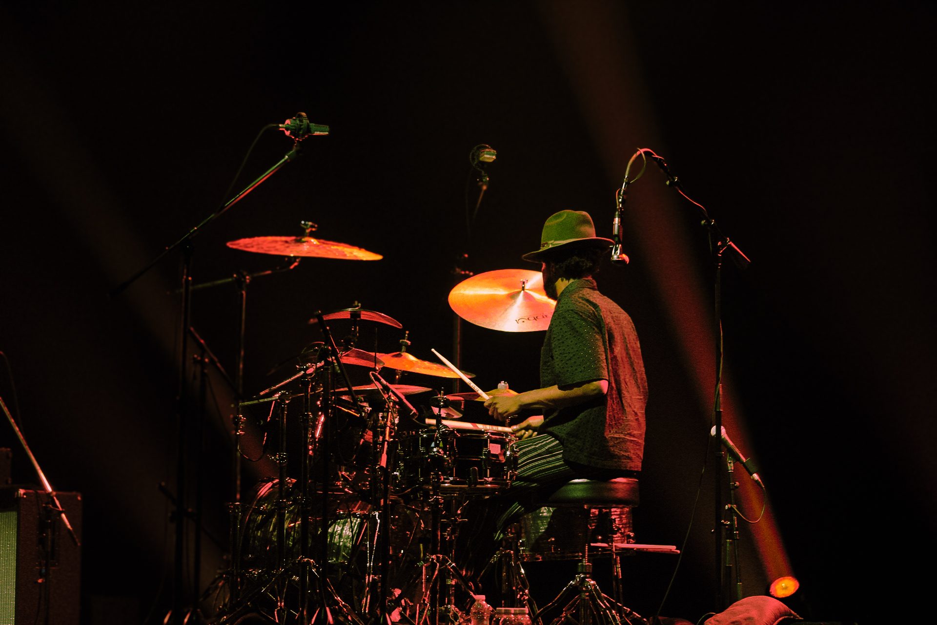 Toutefois, la première moitié du concert est assez dense et plutôt impersonnelle, alors que le trio enfile en vitesse les morceaux délaissant trop souvent la voix du musicien. En plus, ce dernier semble un peu timide dans la première demie-heure, alors qu’il n’adressera pas la foule, elle, qui semble avide de l’entendre blaguer et déblatérer à propos de sujets aléatoires comme à l’habitude. Heureusement, on peut se rabattre sur ses lignes de basse grondantes et maîtrisées, envoyées par ses doigts à la dextérité innée, ainsi que sur les euphorisants solos de batterie de Justin Brown, coiffé d’un impeccable panama pour l’occasion. Pour tout dire, la musique jouée sur scène est impressionnante, mais la connexion avec le public n’est pas tout à fait au rendez-vous.