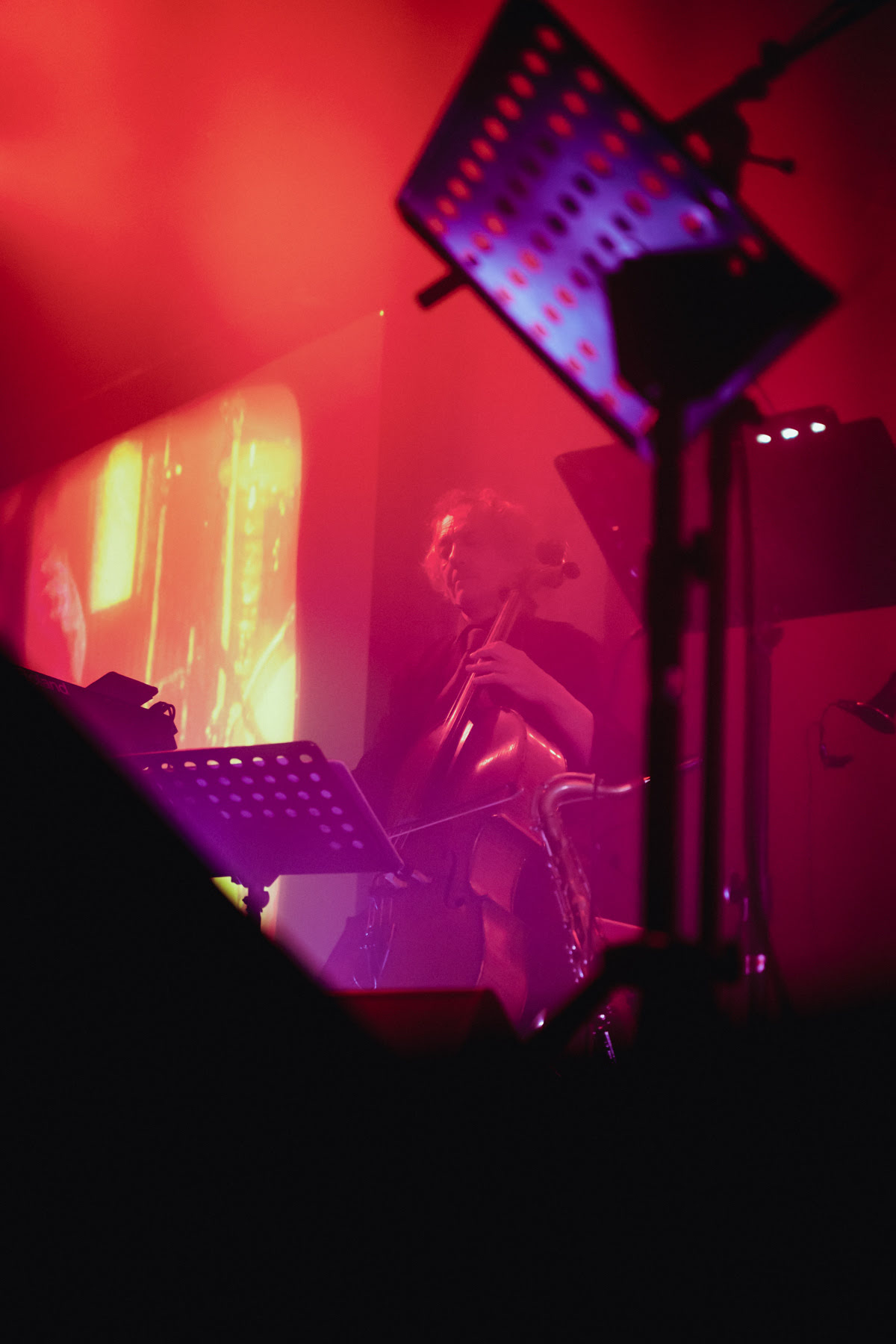 Les lumières rouges tamisées, autre rappel évident comme quelques éléments finement ficelés, faisaient penser à un spectacle de jazz dans un bar de New York. Même si la foule savait à quoi s’attendre, et qu’il n’y a pas eu de surprise, il n’en demeure pas moins que le rendu fut poignant. Le moment a permis de s’immiscer dans le côté effrayant et inquiétant qui fait parfois frissonner à l’écoute de la série, comme à celle de la trame sonore. L’agencement hypnotique et quasi obsessionnel de près d’une dizaine de musiciennes et musiciens, l’aspect sensuel, sombre et élégant des compositions ont ensorcelé le public sans aucune hésitation.