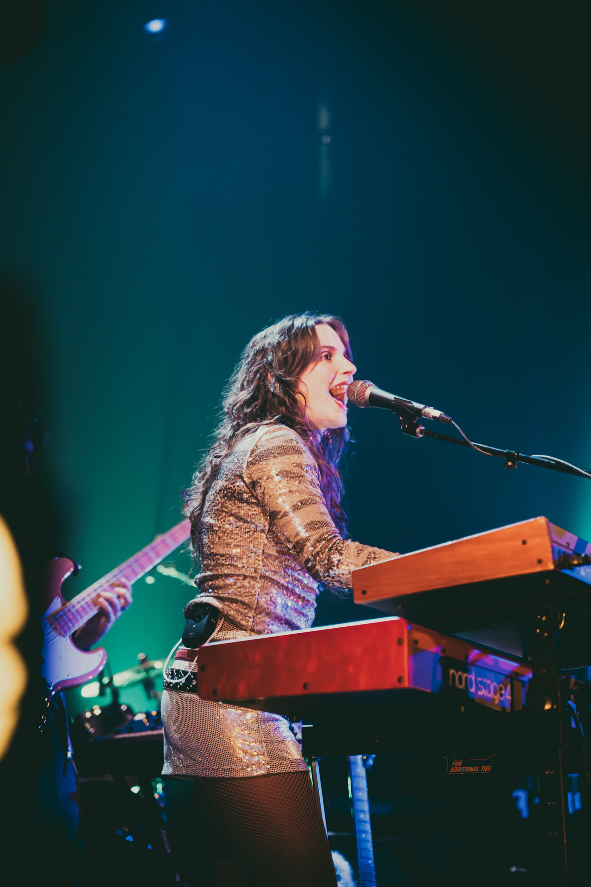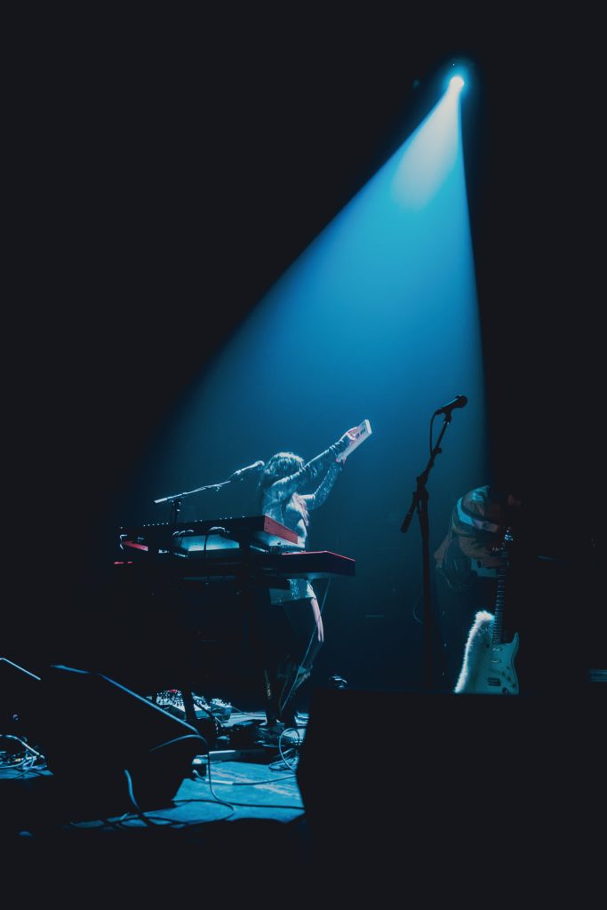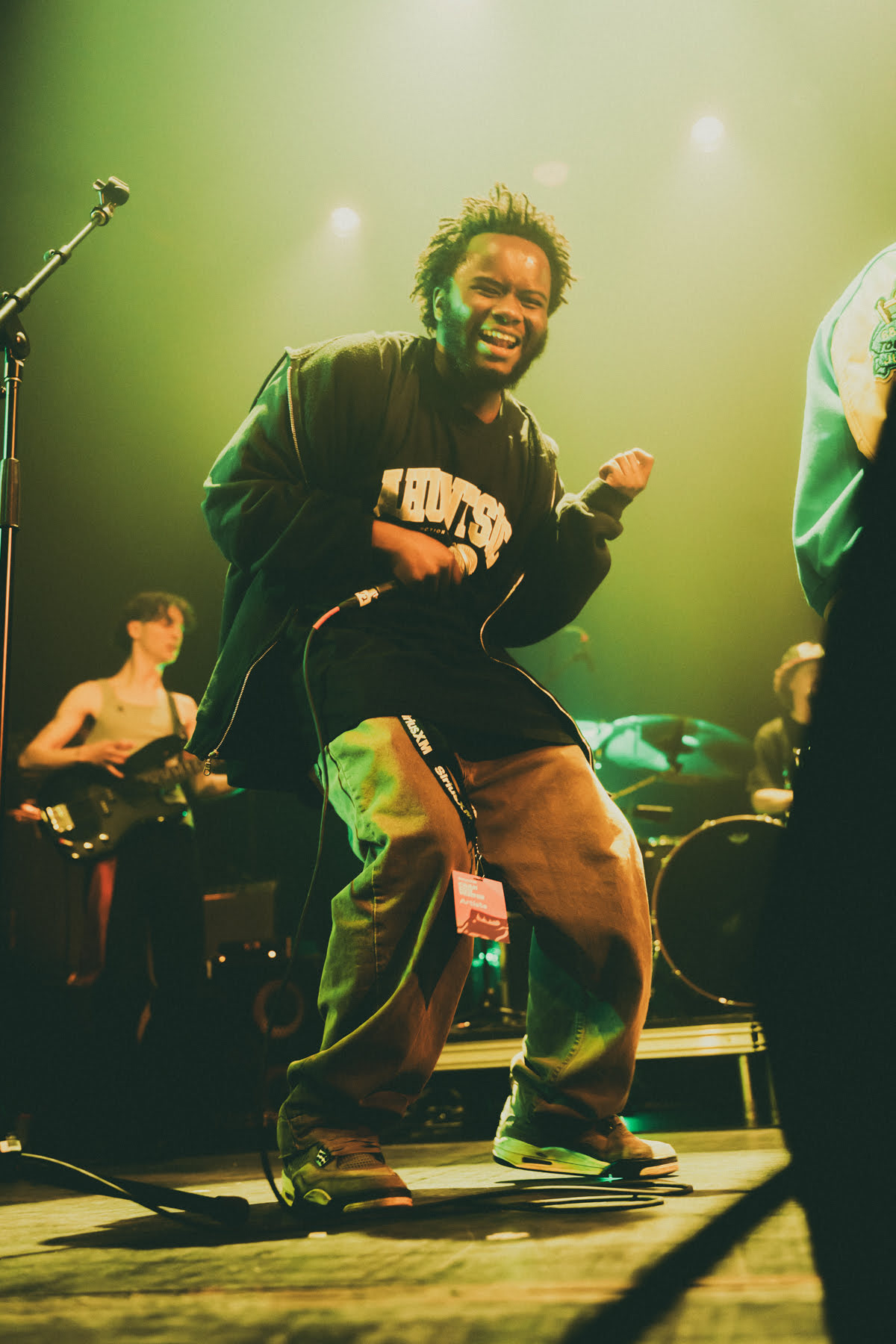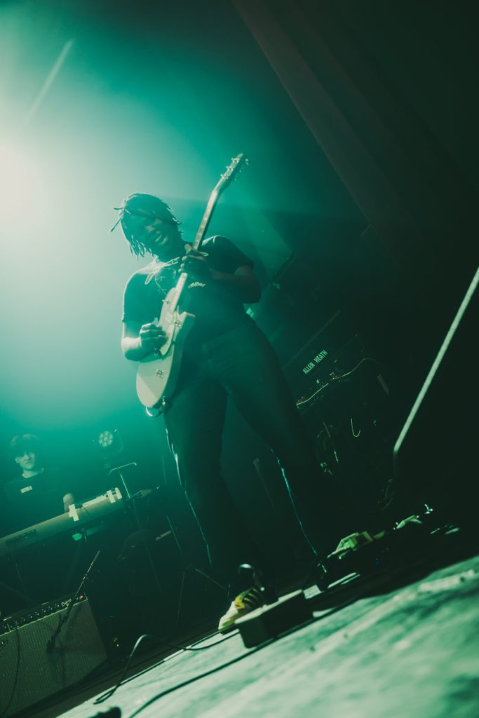 Kat Pereira a démontré qu’elle ne prend pas à la légère la dimension spectacle de la prestation. Si ses pièces sont déjà en soi de très bonnes compositions jouées par d’excellents musiciens, Pereira ajoute tout de même une bonne dose de cute avec son panneau LED où il est écrit WOO qui s’illumine quand elle chante l’interjection. C’est un peu nerd et adorable. Elle propose un mélange de pop-rock très québécoise avec de l’hyperpop et un peu de jazz funky contemporain à la Louis Cole. Pour donner une idée, elle a une chanson sur l’électrocution des corps, une thématique de tous les jours. Avant de lancer sa dernière chanson, Je ne crois plus au karma, elle a fait un appel à soutenir les peuples qui se font taper dessus en ce moment, comme l’Ukraine ou Gaza.