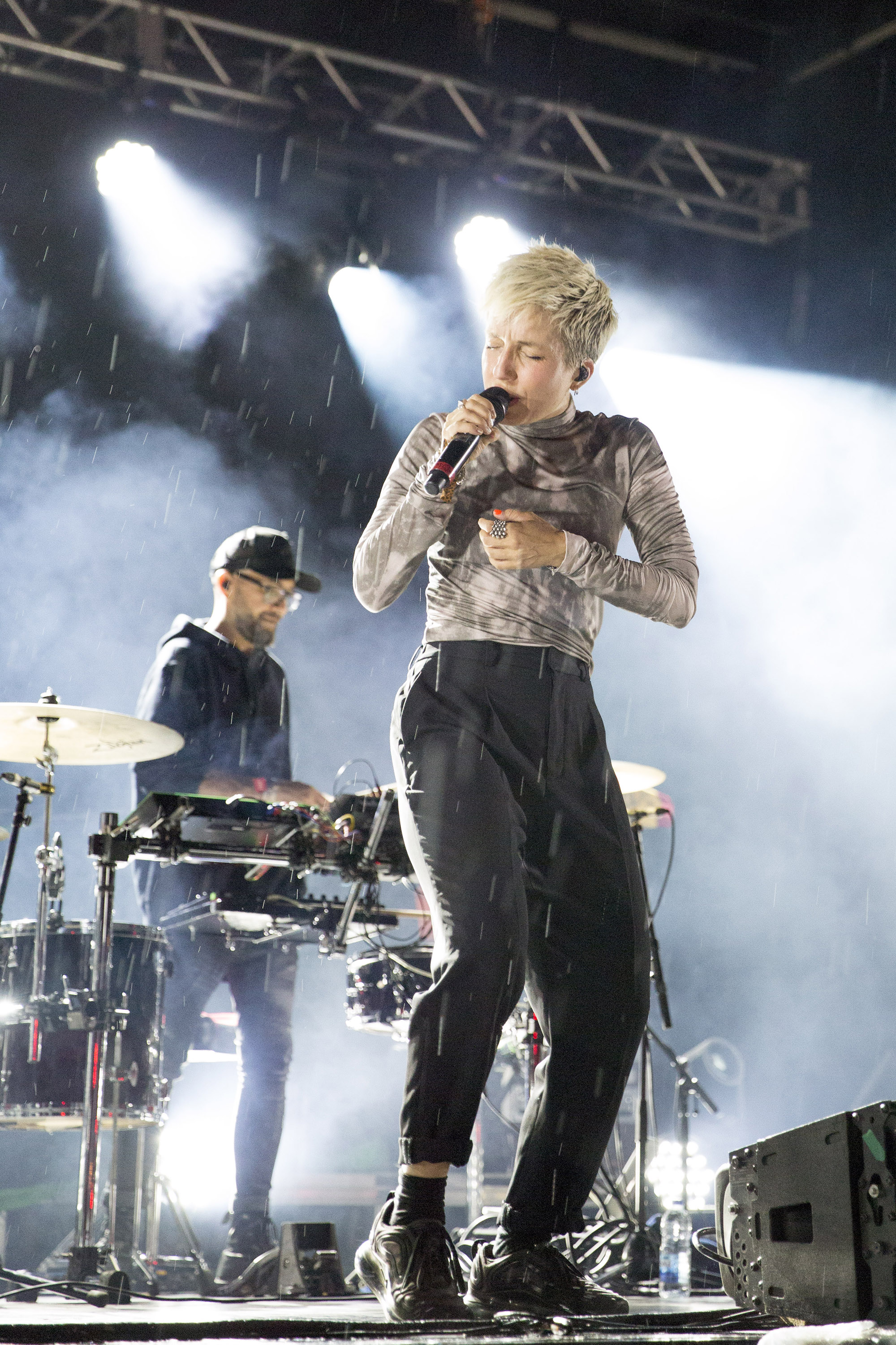 Ça n’a pas empêché les gens d’arriver avec des parapluies, des imperméables, ou tout simplement de braver l’eau. Parce qu’après tout… on n’est pas fait en chocolat! Jeanne Added, elle, ne s’est pas formalisée de la chose et a livré un solide spectacle où elle a démontré à quel point elle avait pris de l’assurance sur scène depuis son dernier passage en sol québécois. A War Is Coming et Lydia de Be Sensational, son deuxième album, ont été des moments forts.