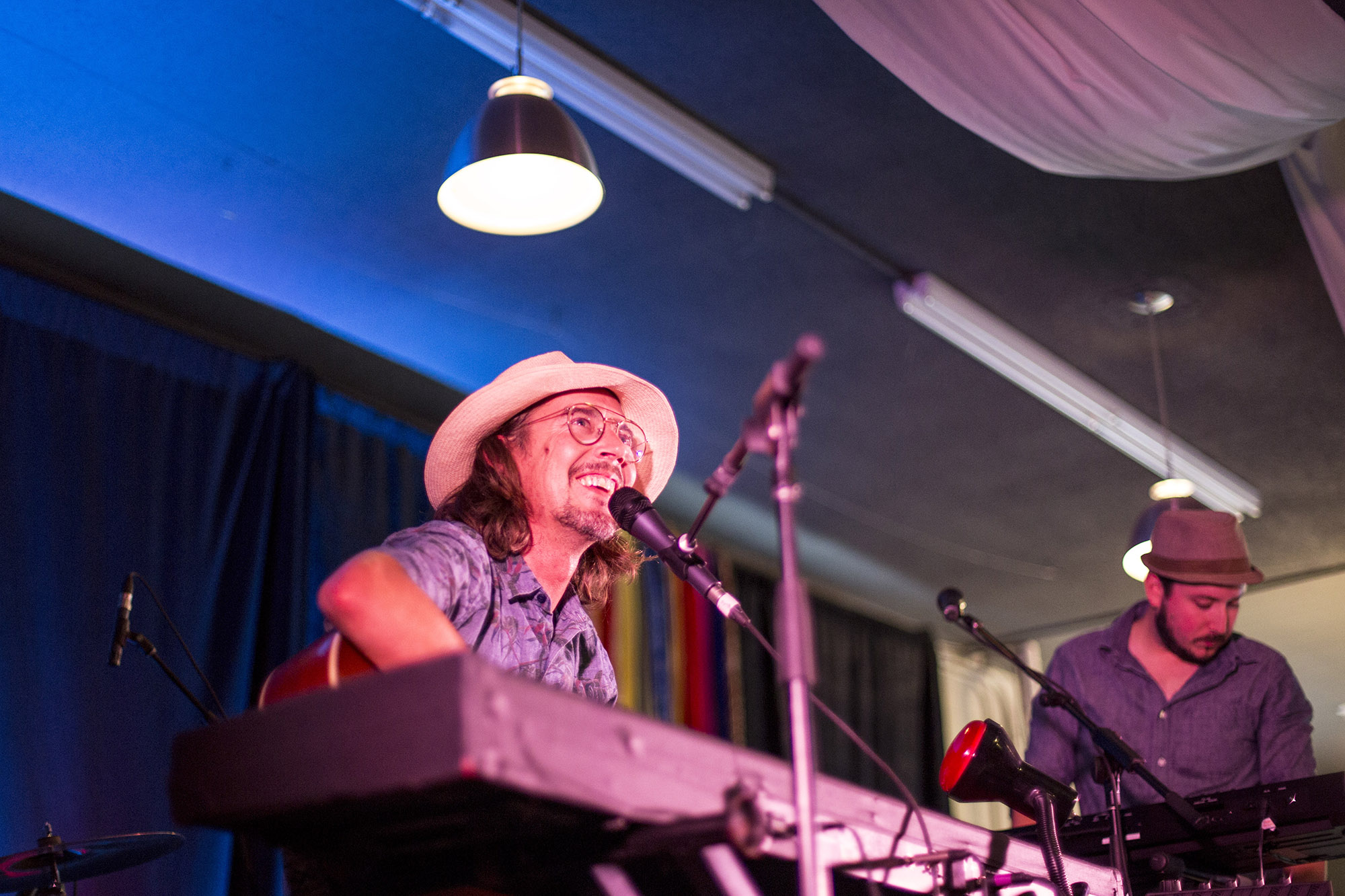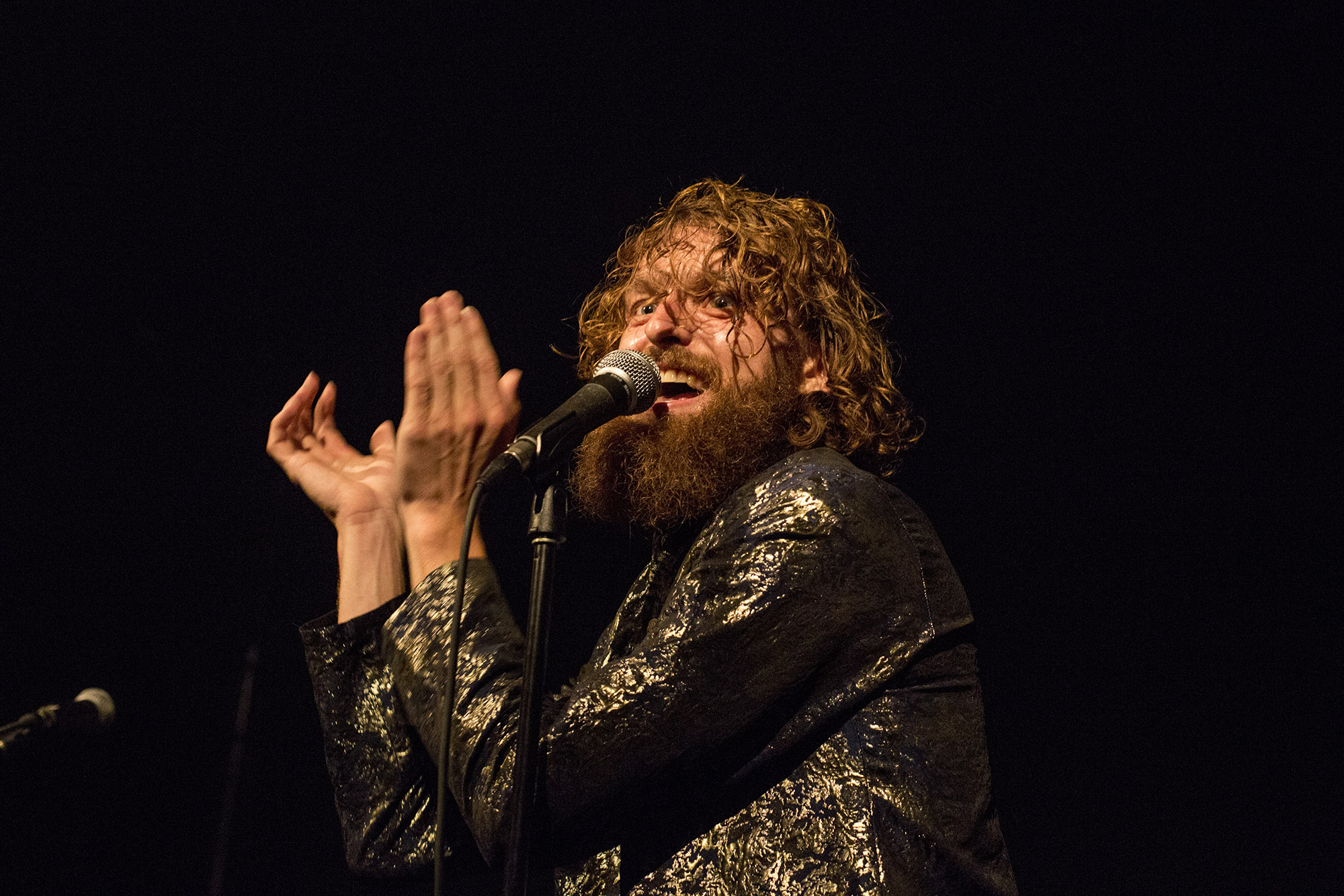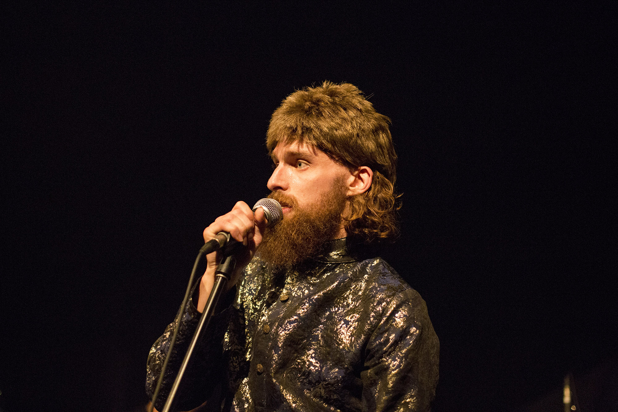 C’était le temps de se replonger dans la faune rouynorandienne pour cette deuxième journée qui a commencé à l’Abstracto avec Sessa. Le brésilien a lancé un très intéressant Grandeza un peu plus tôt cette année. L’ancien comparse de Yonatan Gat a bien livré ses pièces de chanson brésilienne aux influences de jazz et de psych rock. Parfois, ça devient plus intense dans les moments musicaux et lorsque les trois choristes se mettent elles aussi, aux percussions. C’était bien doux pour commencer cette deuxième journée. Moins psychédélique qu’en album, le grand et chevelu jeune homme a livré le tout avec une sympathique authenticité.