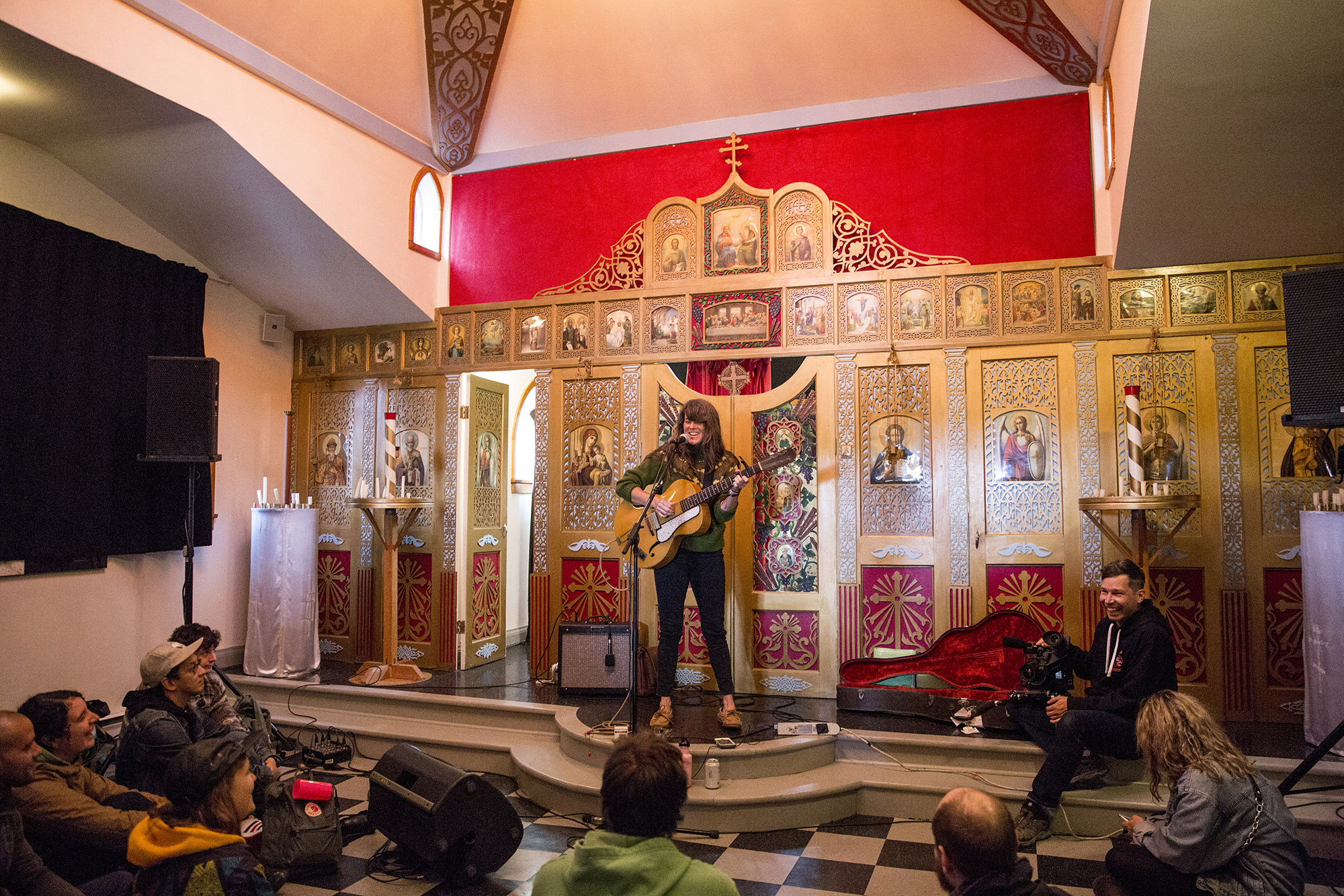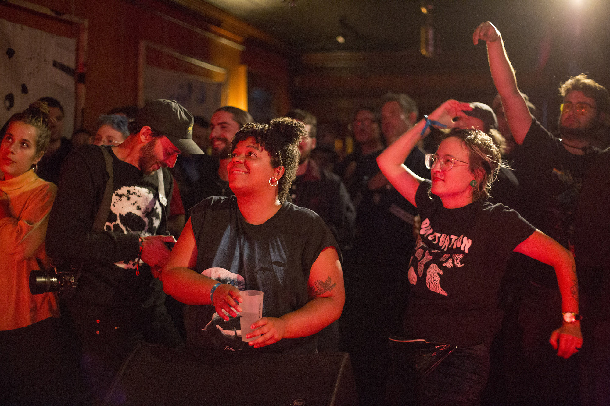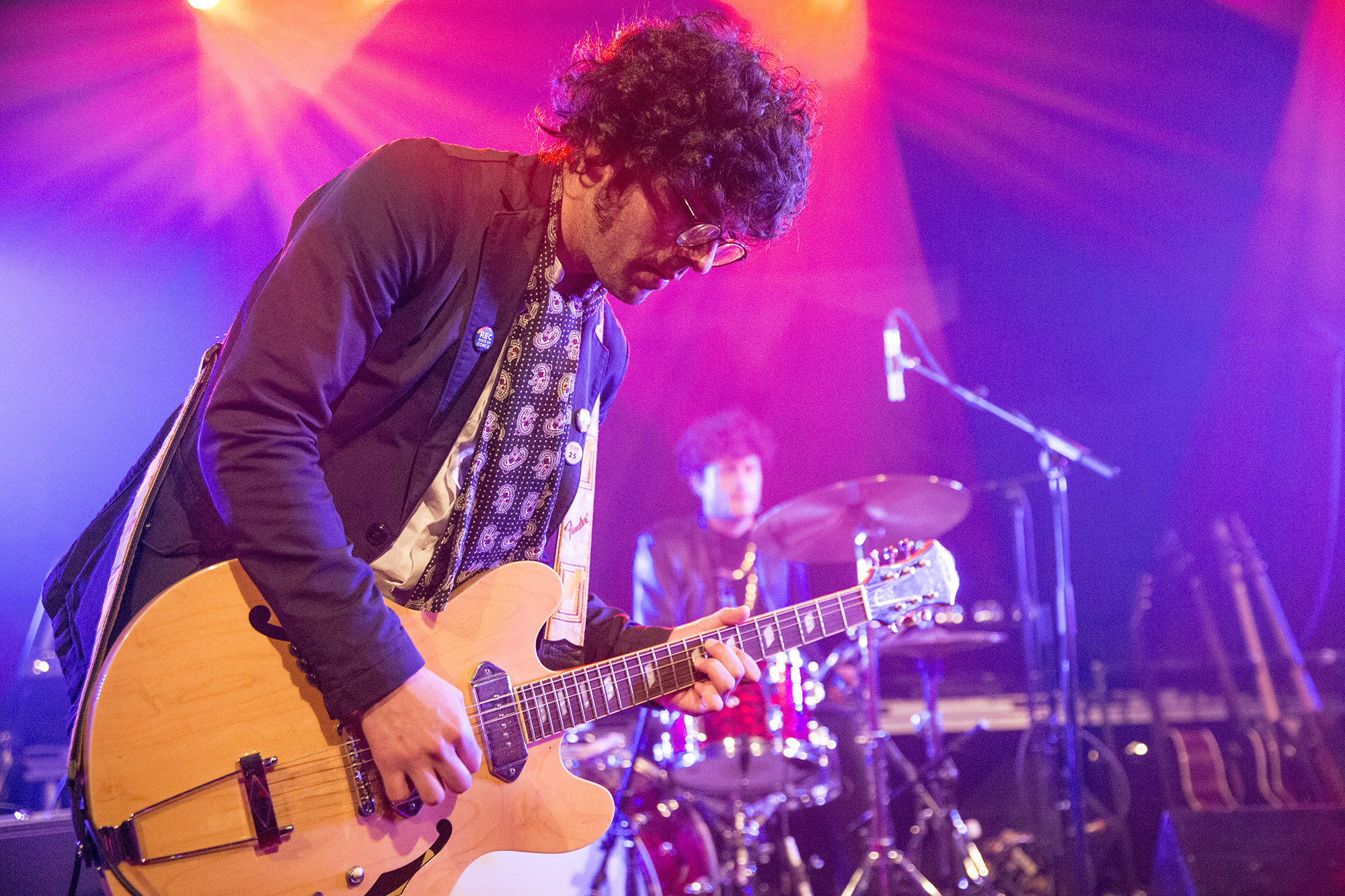 C’était le temps de se replonger dans la faune rouynorandienne pour cette deuxième journée qui a commencé à l’Abstracto avec Sessa. Le brésilien a lancé un très intéressant Grandeza un peu plus tôt cette année. L’ancien comparse de Yonatan Gat a bien livré ses pièces de chanson brésilienne aux influences de jazz et de psych rock. Parfois, ça devient plus intense dans les moments musicaux et lorsque les trois choristes se mettent elles aussi, aux percussions. C’était bien doux pour commencer cette deuxième journée. Moins psychédélique qu’en album, le grand et chevelu jeune homme a livré le tout avec une sympathique authenticité.