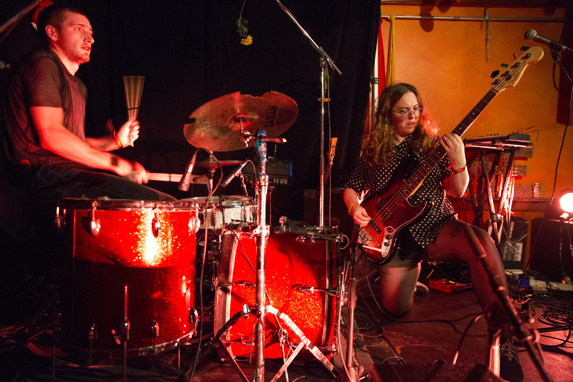 Ma planification de soirée était faite : j’allais à The 5.6.7.8’s. J’étais prêt et décidé. Puis, j’ai croisé Julia Blais qui s’est mise dans la tête de venir à Material Girls. Je me suis donc rendu au Cabaret de la dernière chance pour VICTIME qui en faisait la première partie. C’est toujours le fun de retrouver ce trio bruyant sur scène. Encore une fois, ils ont livré un solide spectacle intense où la voix de Laurence Gauthier-Brown ponctue les élans musicaux du groupe.