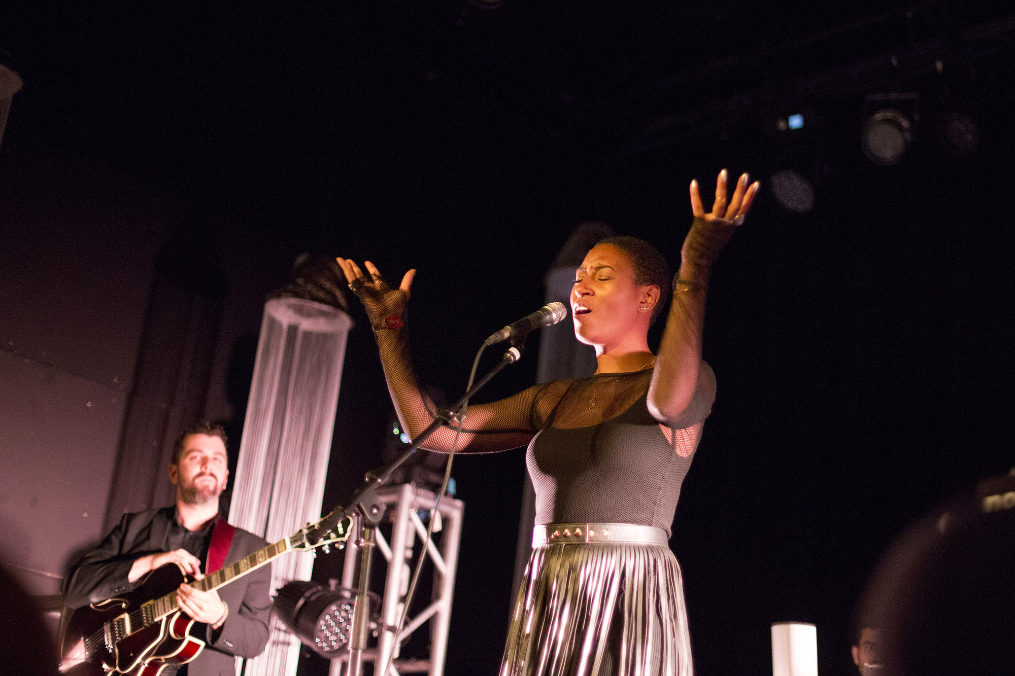 Le samedi soir s’est entamé sur Dominique Fils-Aimé qui livrait à la scène Paramount les chansons de ses deux premiers albums. Elle nous a rapidement demandé de garder les applaudissements pour la fin du spectacle, ce qui n’a fonctionné que pour la première moitié. Voyant les prouesses musicales de ses musiciens et les acrobaties vocales qu’elle nous envoyait, il était difficile de rester sage et passible. Nameless, There Is Probably Fire étaient des moments forts de sa prestation.
