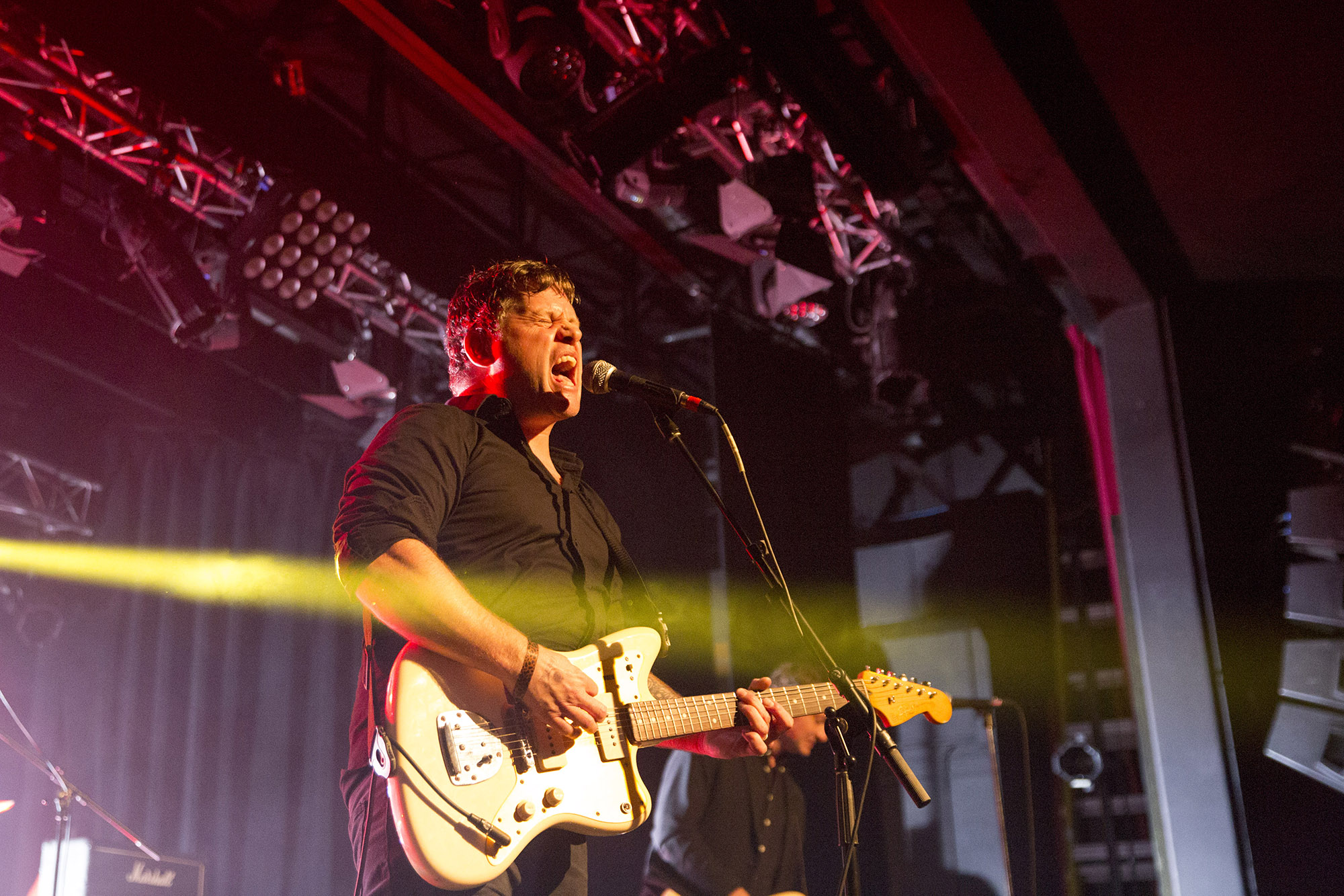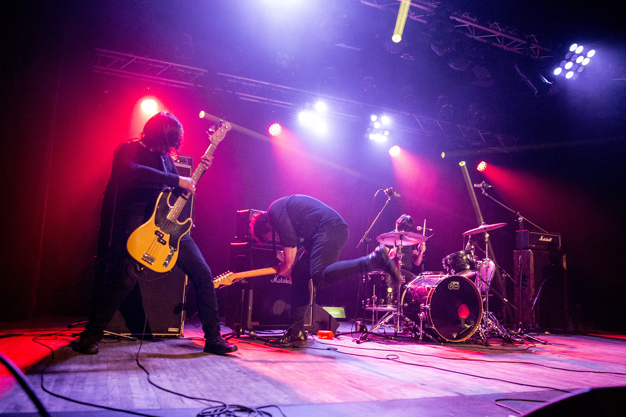 Parce que la suite était le groupe américain …And You Will Know Us By the Trail of the Dead qui venait célébrer les 20 ans de l’album Madonna à Rouyn-Noranda après un passage à Montréal en mai au festival Distorsion. Le quatuor s’est bien défendu avec des pièces énergiques et une livraison intense. Par contre, dans son ensemble, le spectacle manquait un peu chaleur. Les membres semblaient chacun dans leur monde et échangeaient peu de regards sur scène. C’était un peu bizarre. De plus, les chansons ne se démarquaient pas particulièrement de leurs versions originales. N’allez pas croire que c’était mauvais, mais ça manquait un peu d’épices.