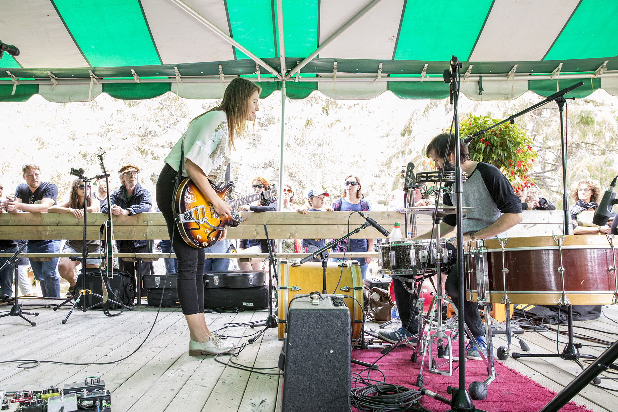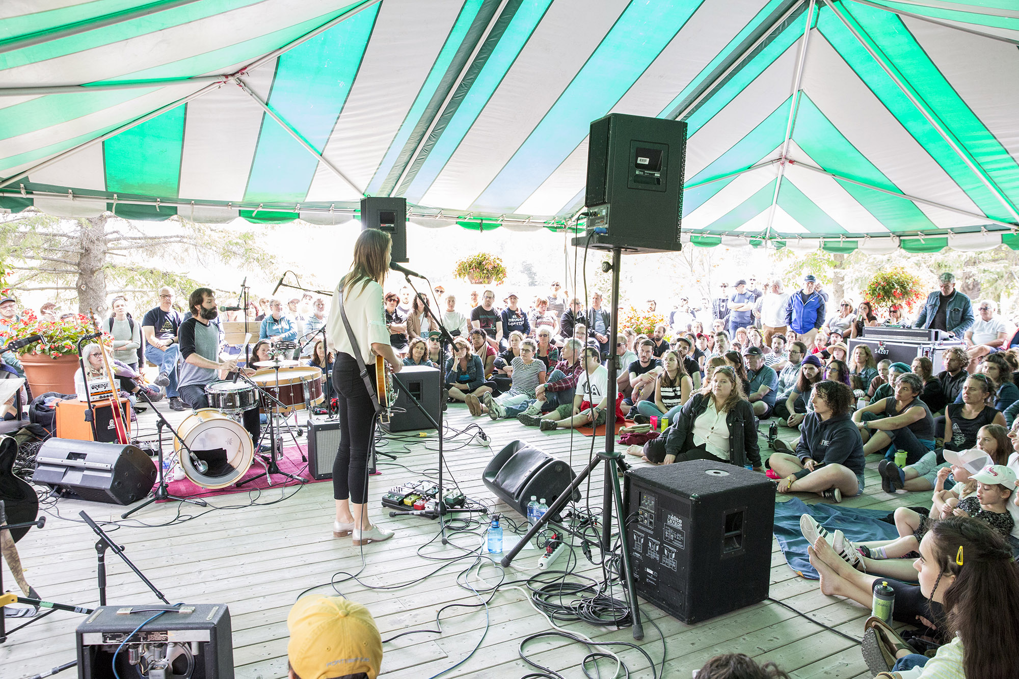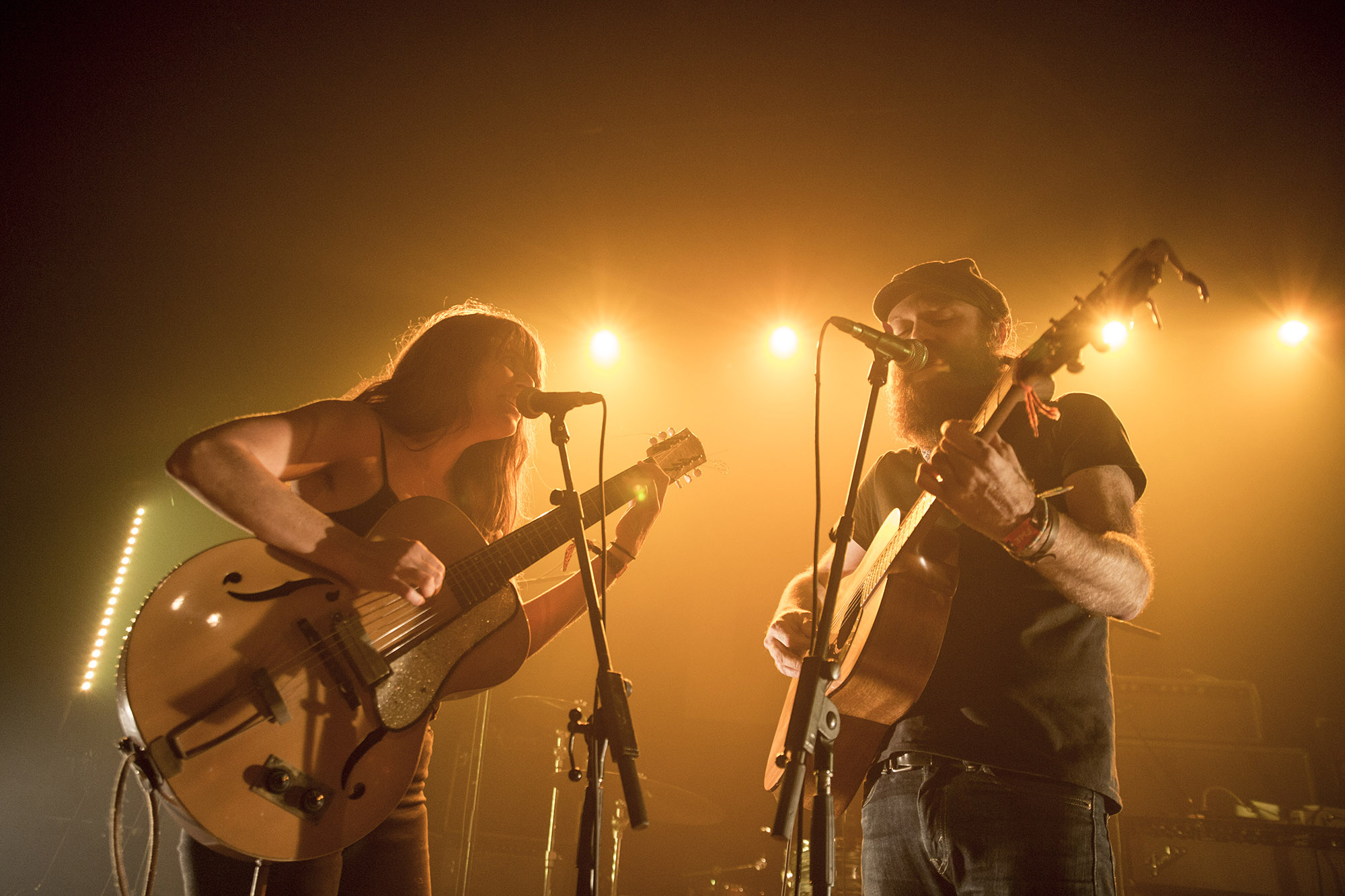 Pour la suite, c’était le spectacle de clôture à l’Agora des Arts. Le tout a commencé avec le couple / duo Julie Doiron et Dany Placard. On va le dire tout bonnement, les deux amoureux sont cutes à mort sur scène. C’était leur première collaboration et ils semblaient un peu nerveux, un peu comme à une première date. Ça riait et lançait des regards complices à la dizaine. Ils ont mélangé leurs répertoires respectifs et joués I Woke Myself Up de Doiron, Too Late, une nouvelle de Placard et quelques autres. Le moment fort qui nous reste est lorsqu’ils ont joué Mon amour était plus fort que ce qu’on voit dans les vues tirée de Full Face. Une pièce que Placard n’avait jamais joué live. POURQUOI? C’est tellement une belle pièce. Ils ont fini le tout avec une reprise de My Mummy’s Dead de John Lennon et le Plastic Ono Band.