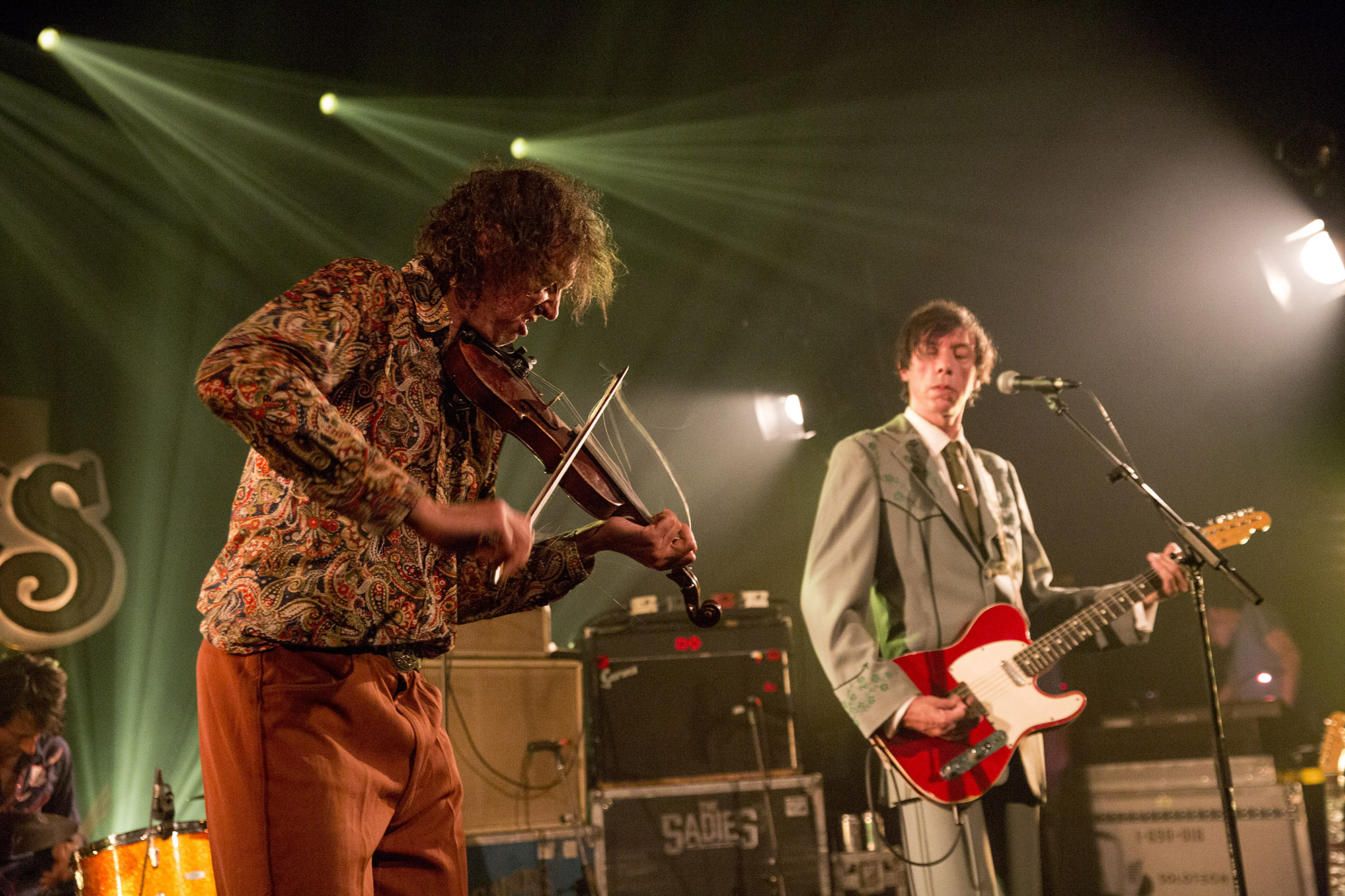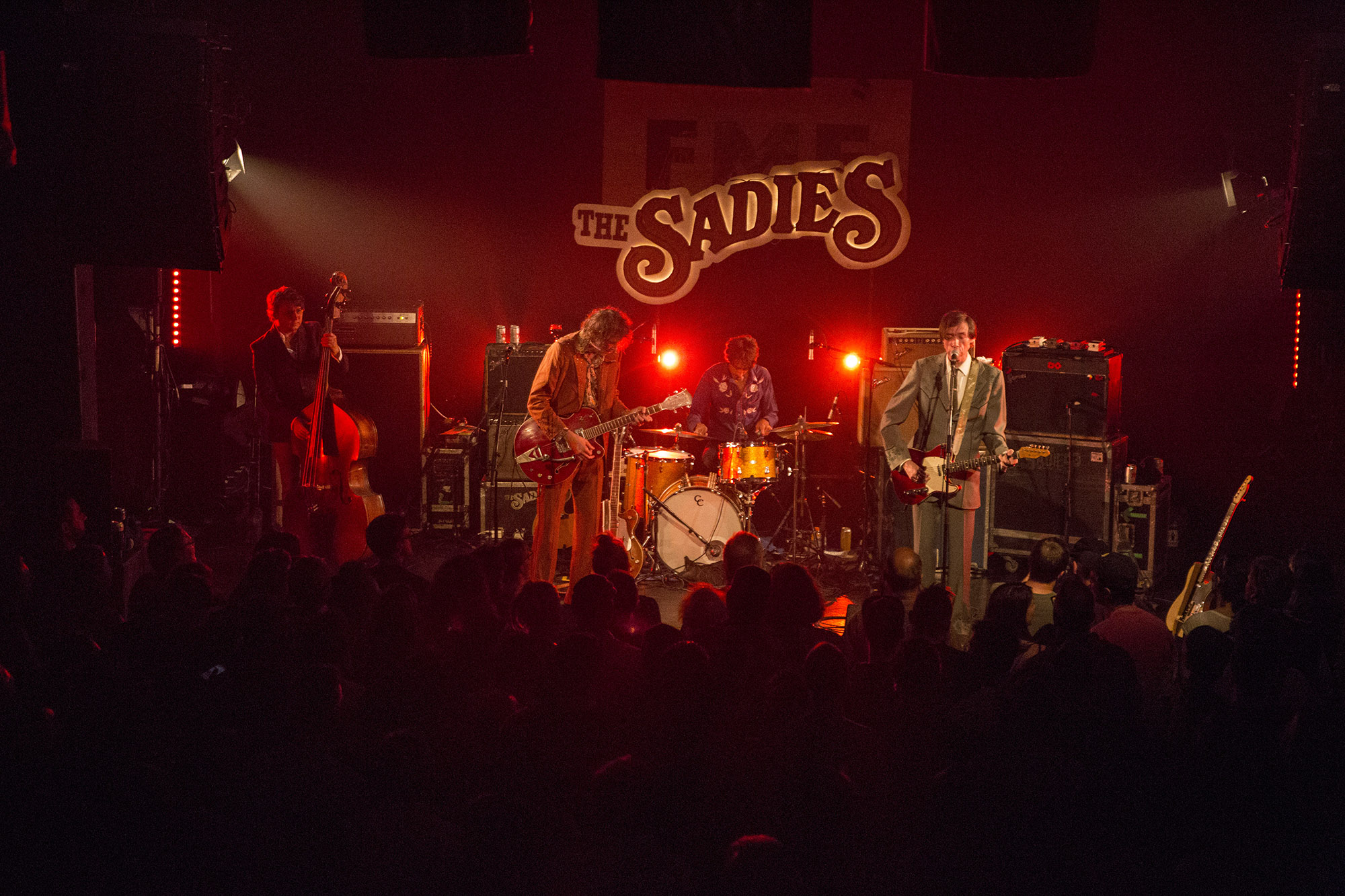 Je pensais que je venais de voir la chose qui allait le plus me surprendre de la soirée. Hélas, c’était mal connaître les Sadies. À mon souvenir, ce n’était pas particulièrement intéressant… j’avais si tort. Lorsqu’on est entré, les quatre vétérans de la scène canadienne étaient affairés à accorder leurs guitares pendant un bon 3 minutes. C’est qu’ils doivent aussi boire quelques gorgées de bière. Les deux frères Good étaient bien solidement paquetés et pourtant quand la musique partait, ils étaient d’une justesse et d’un aplomb qui gênerait bien des gens sobres. Alternant entre la guitare, le violon, l’un des deux frères semblait avoir un peu de misère à se tenir debout, mais les chansons rentraient au poste. The Sadies nous a chanté Et moi et moi et moi de Jacques Dutronc avant de tirer leur révérence. Mais bien sûr, ils sont revenus pour un long rappel sous forme de medley.