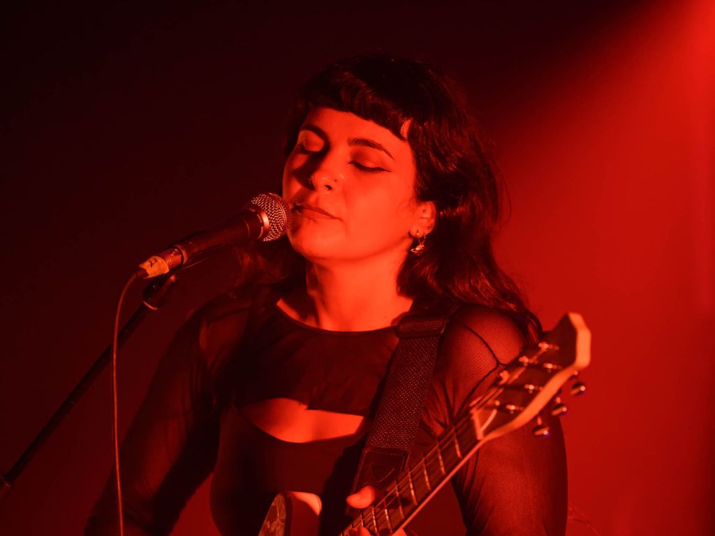 Dès 17h30, c’est APACALDA, de son vrai nom Cassandra Angheluta, qui nous démarrait ça dans la pénombre de ces lieux. L’autrice-compositrice-interprète, qui chante exclusivement en anglais, était jointe par son bassiste Raphaël Bédard de Vilca et de son batteur (dont le nom m’échappe malheureusement, sorré). Ensemble, la petite équipe a déballé There’s a Shadow in My Room and It Isn’t Mine, un premier long jeu qui a vu le jour en juin dernier. Se sont succédé les chansons dream pop aux détours grunge de ce disque, ce qui concordait bien avec les lieux, alors qu’à l’extérieur, un soleil aux rayons chauds plombait enfin sur Rouyn. Au son d’extraits pop rock, comme Darkness, la petite foule s’est déhanchée doucement, mais c’est avec la très convaincante et plus shoegaze Dead Weight qu’APACALDA a joué son meilleur coup et a kickstarté notre seconde soirée.