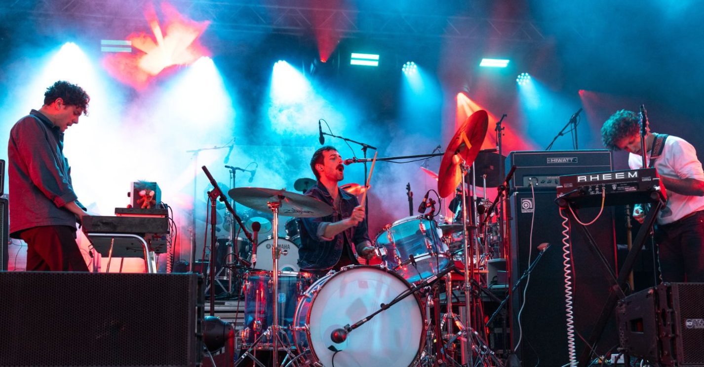 Puis, on se demande finalement comme ces arrangements puissants et clairs, aux détours psychédéliques, font pour sortir des instruments de seulement trois dudes, alors que, quand on ferme les yeux, on pourrait s’imaginer six musiciens sur scène faire ce bruit-là. Pourtant, Population II le fait, maintenant constamment, que ce soit sur le bord de la piscine de la maison du festival, ou sur la grande scène. Ça l’air facile à part de ça.