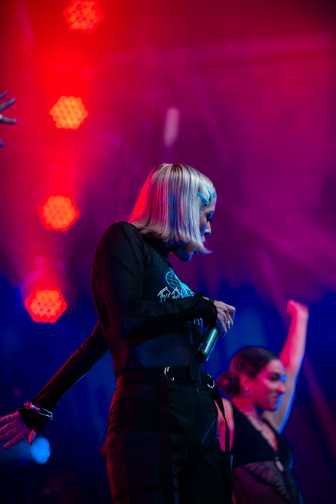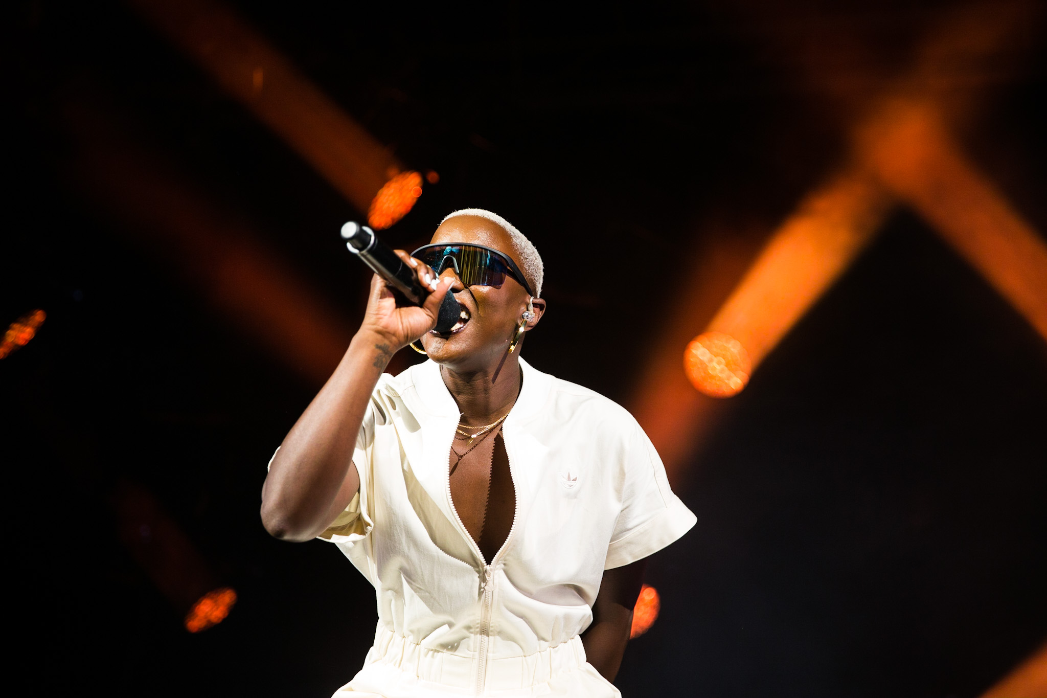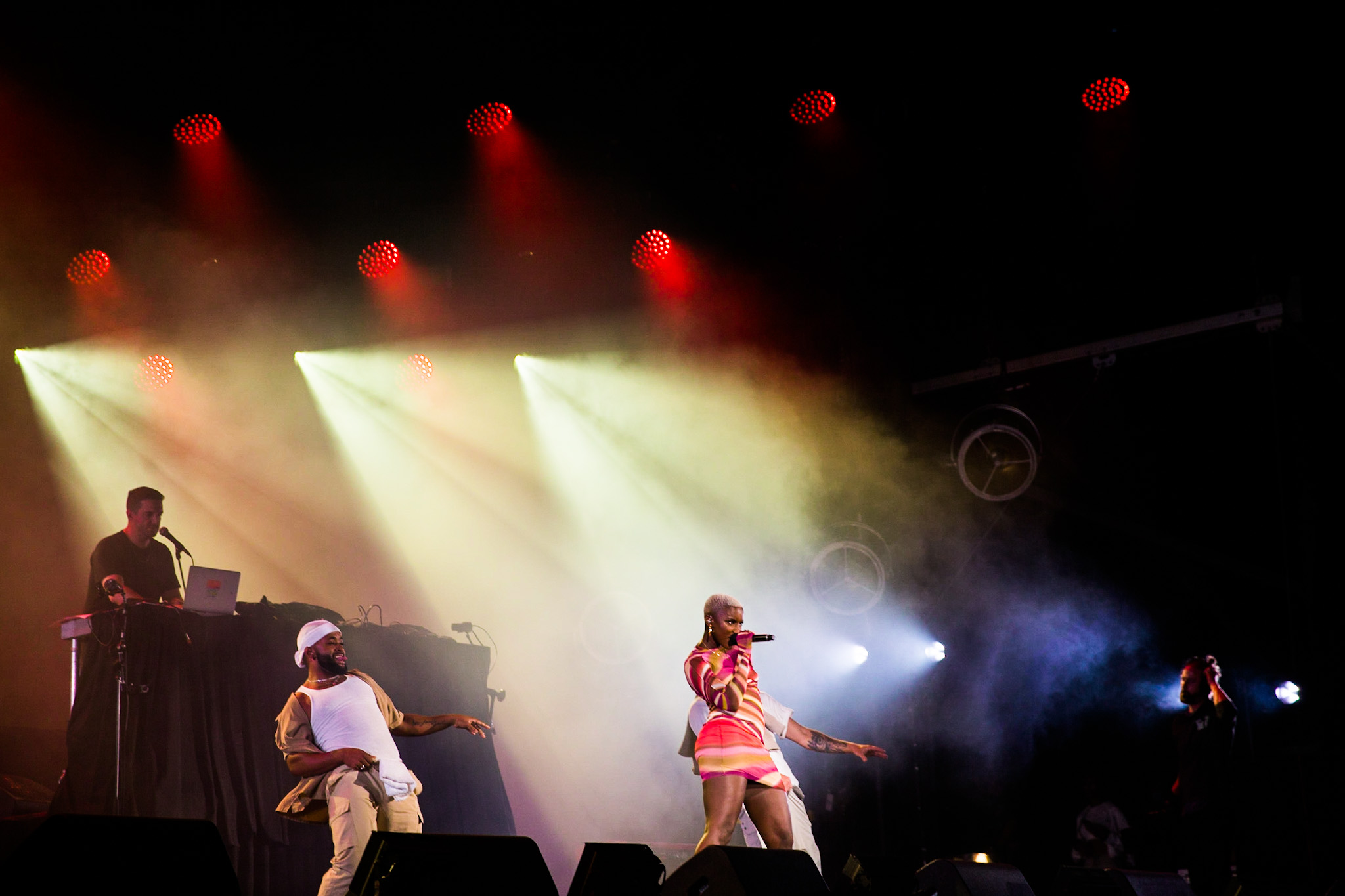 Sarahmée a fait paraître, il y a un peu plus d’une semaine, son troisième album en carrière, Poupée russe. Elle en a fait plusieurs morceaux, au plaisir de la foule qui se laissait transporter au rythme de ses pièces. La foule de tous âges rassemblés devant la scène Bell ne s’est pas fait prier pour danser. J’ai trouvé ça franchement beau, c’est comme si le rap devenait de plus en plus démocratisé au Québec. Parlant de danse, mention spéciale aux danseur.se.s de Sarahmée qui ont franchement assuré!
