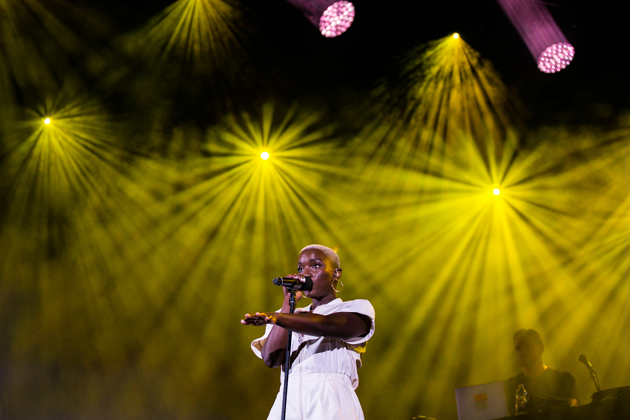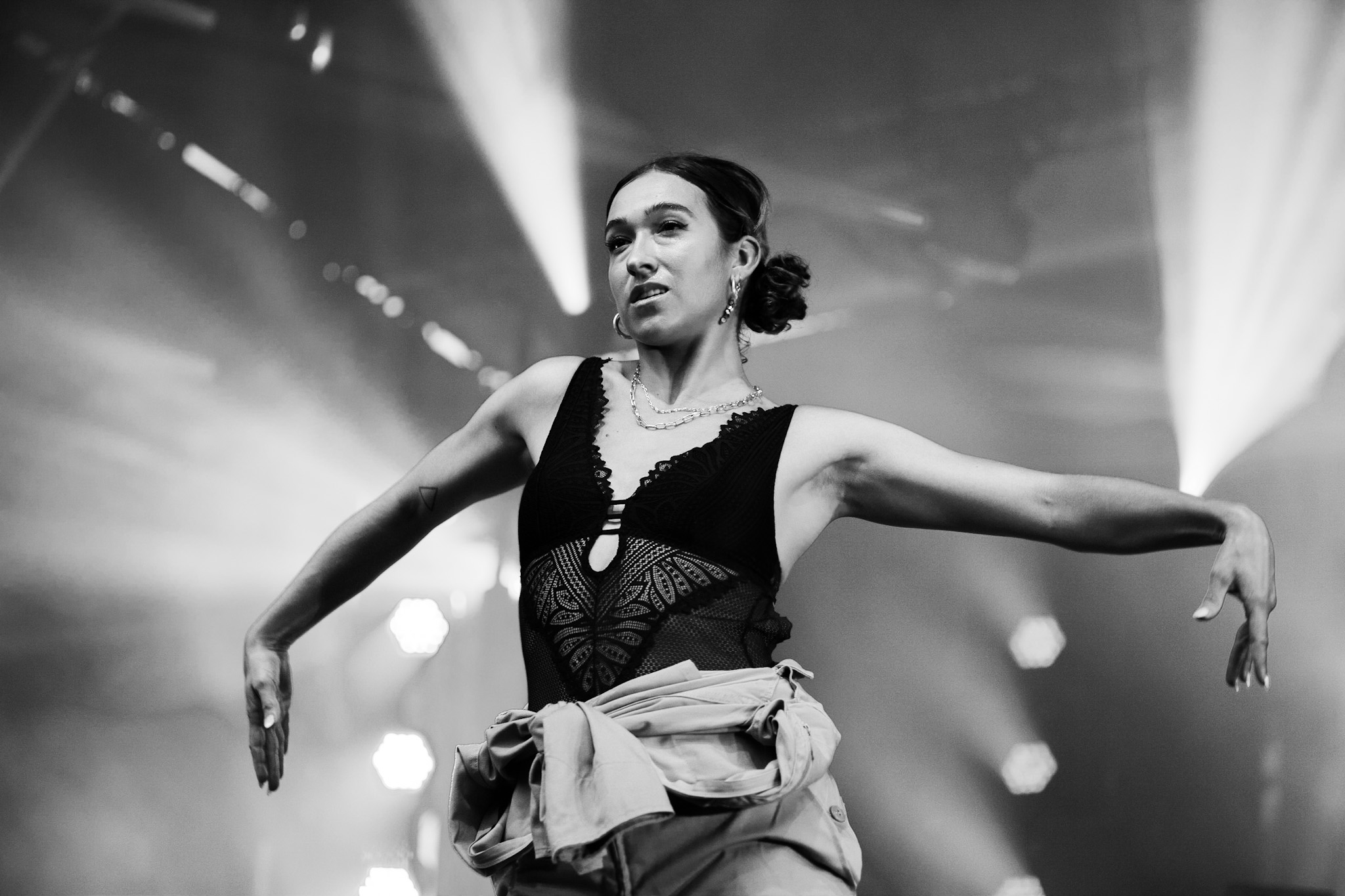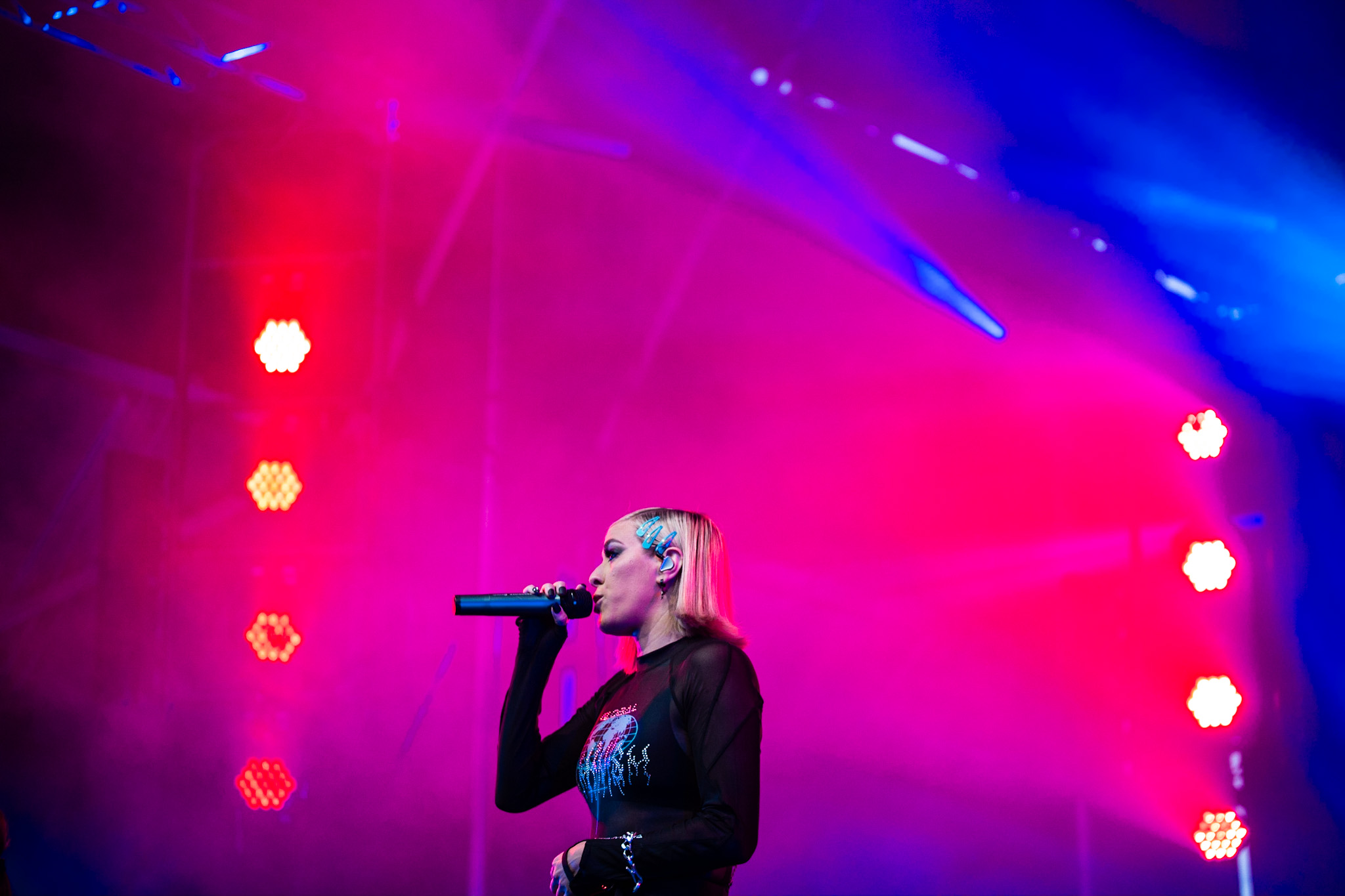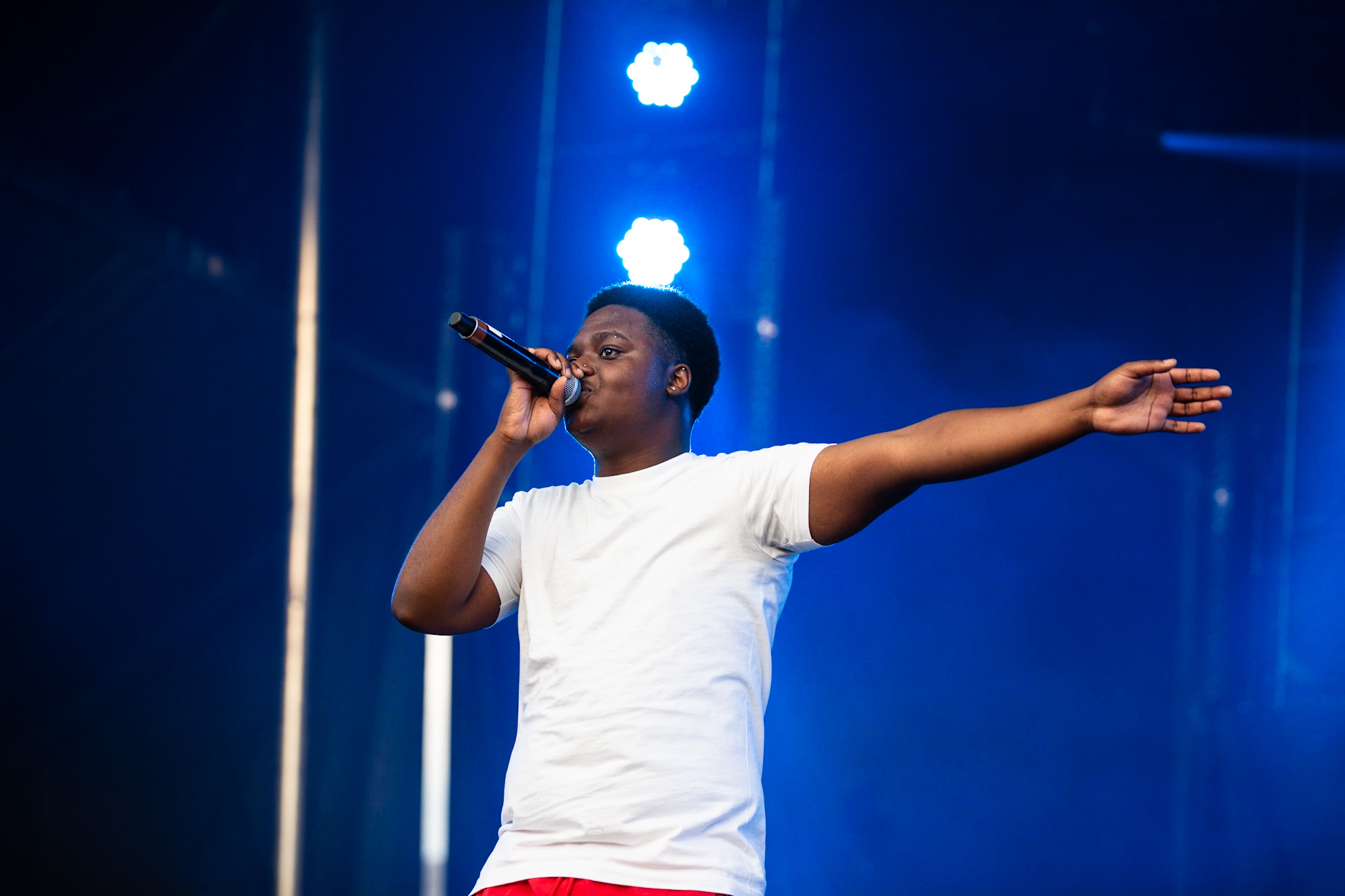 Sarahmée a fait paraître, il y a un peu plus d’une semaine, son troisième album en carrière, Poupée russe. Elle en a fait plusieurs morceaux, au plaisir de la foule qui se laissait transporter au rythme de ses pièces. La foule de tous âges rassemblés devant la scène Bell ne s’est pas fait prier pour danser. J’ai trouvé ça franchement beau, c’est comme si le rap devenait de plus en plus démocratisé au Québec. Parlant de danse, mention spéciale aux danseur.se.s de Sarahmée qui ont franchement assuré!