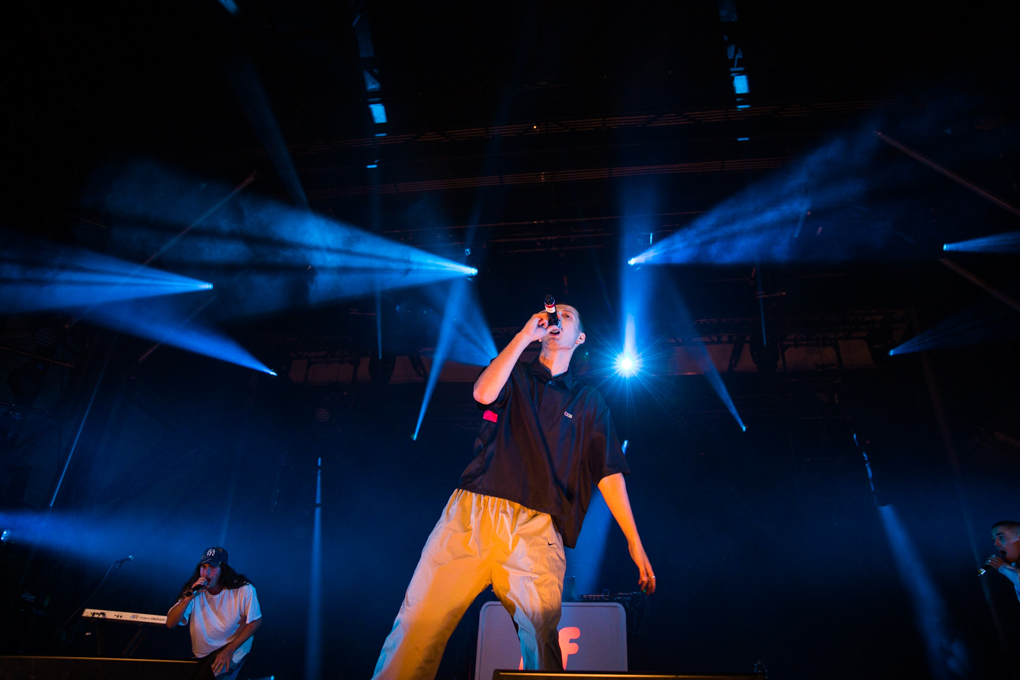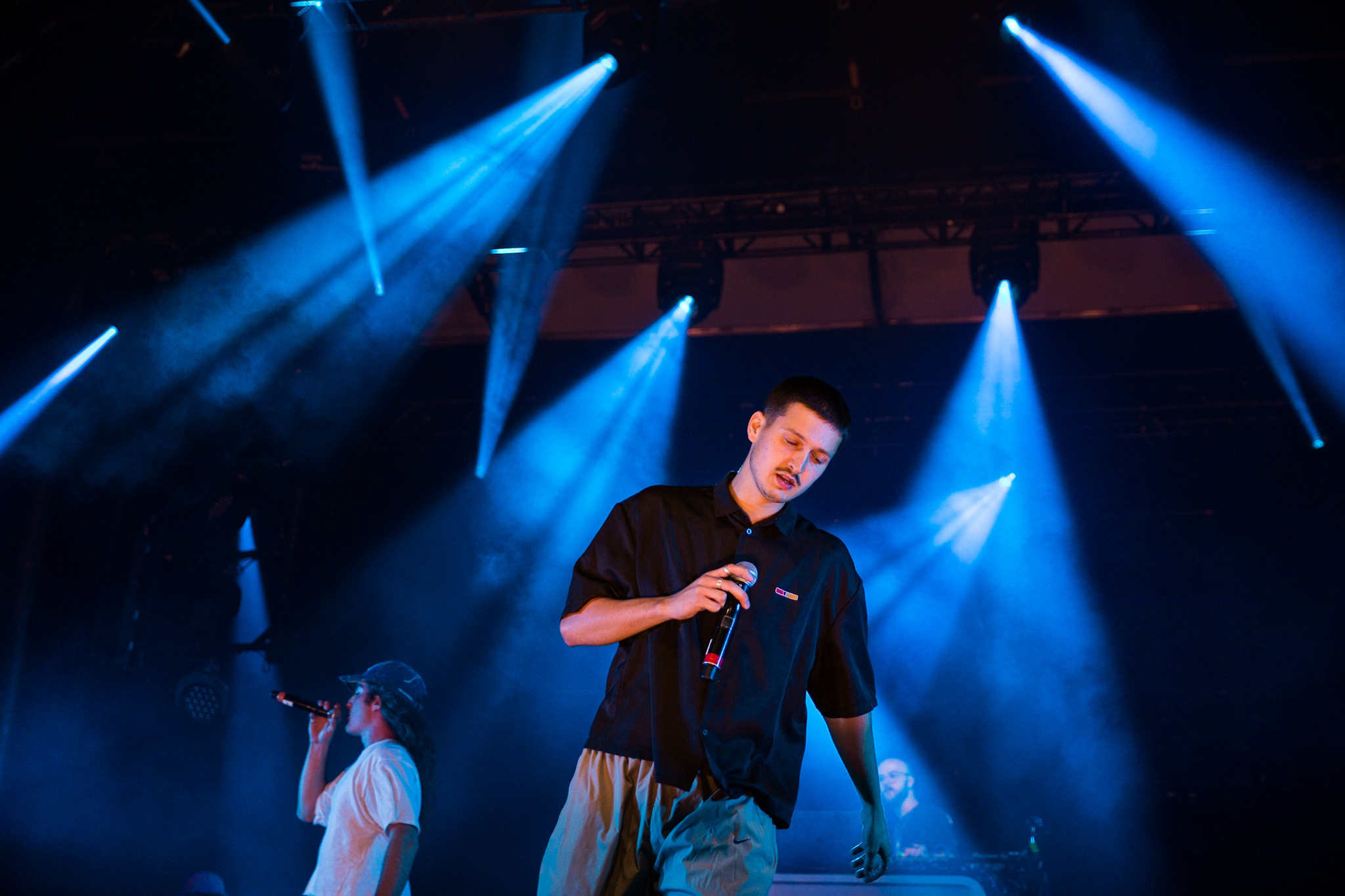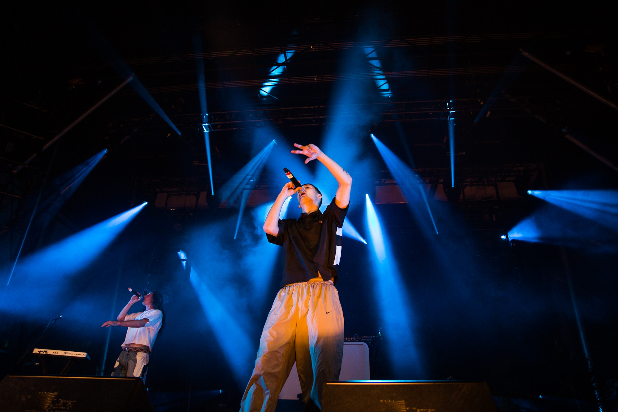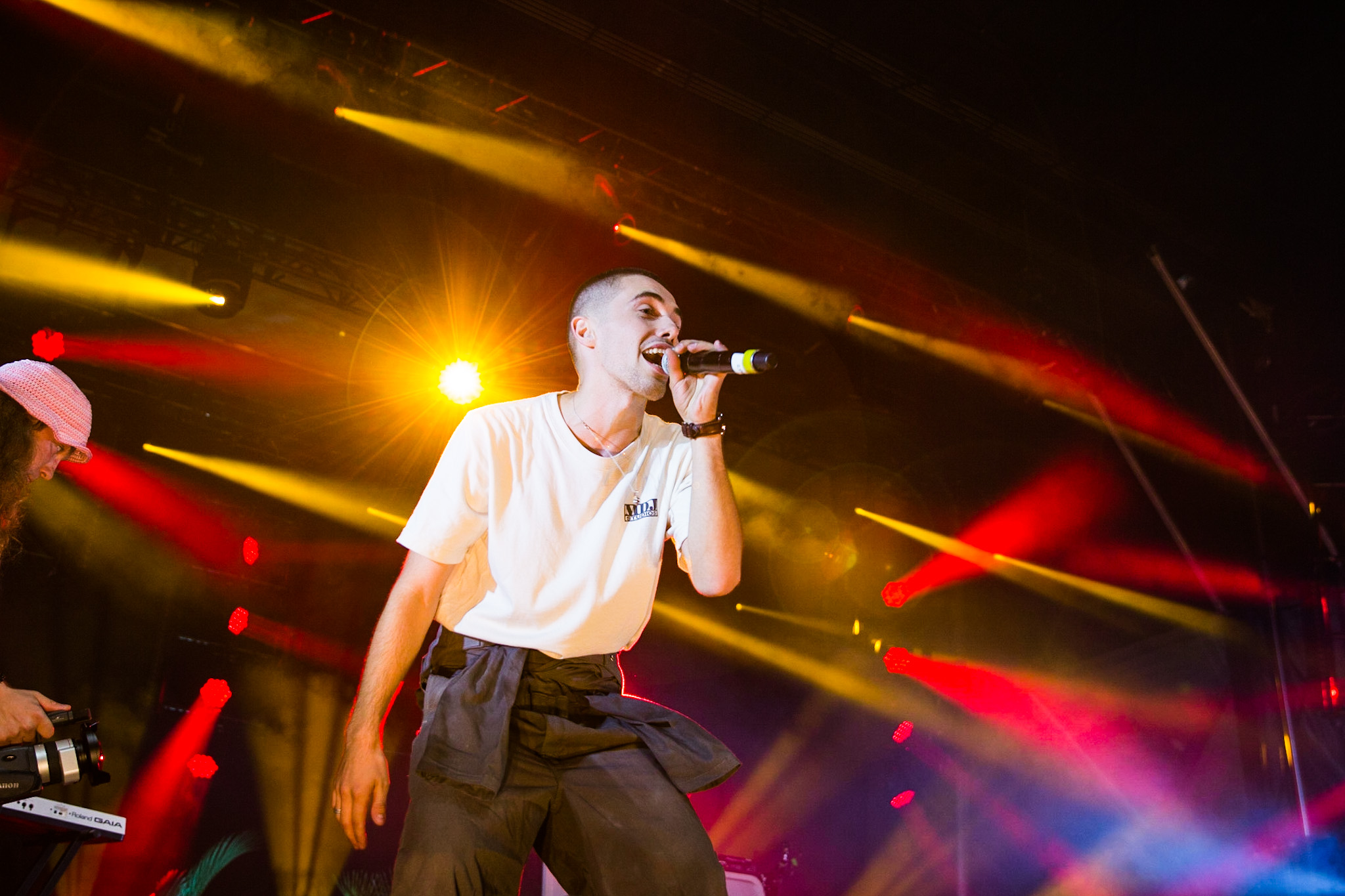 FouKi et Koriass ont honnêtement une belle complicité ensemble, et Koriass en a une encore plus belle avec les caméras braqués sur lui. On voit qu’il aime jouer avec elles. Les deux hommes ont également eu le temps de briller en mode esseulé : Koriass avec Blacklights (qui a donné tout un coup de fouet à une foule déjà pas mal survoltée) et 5 à 7 et FouKi avec Ciel et Copilote.