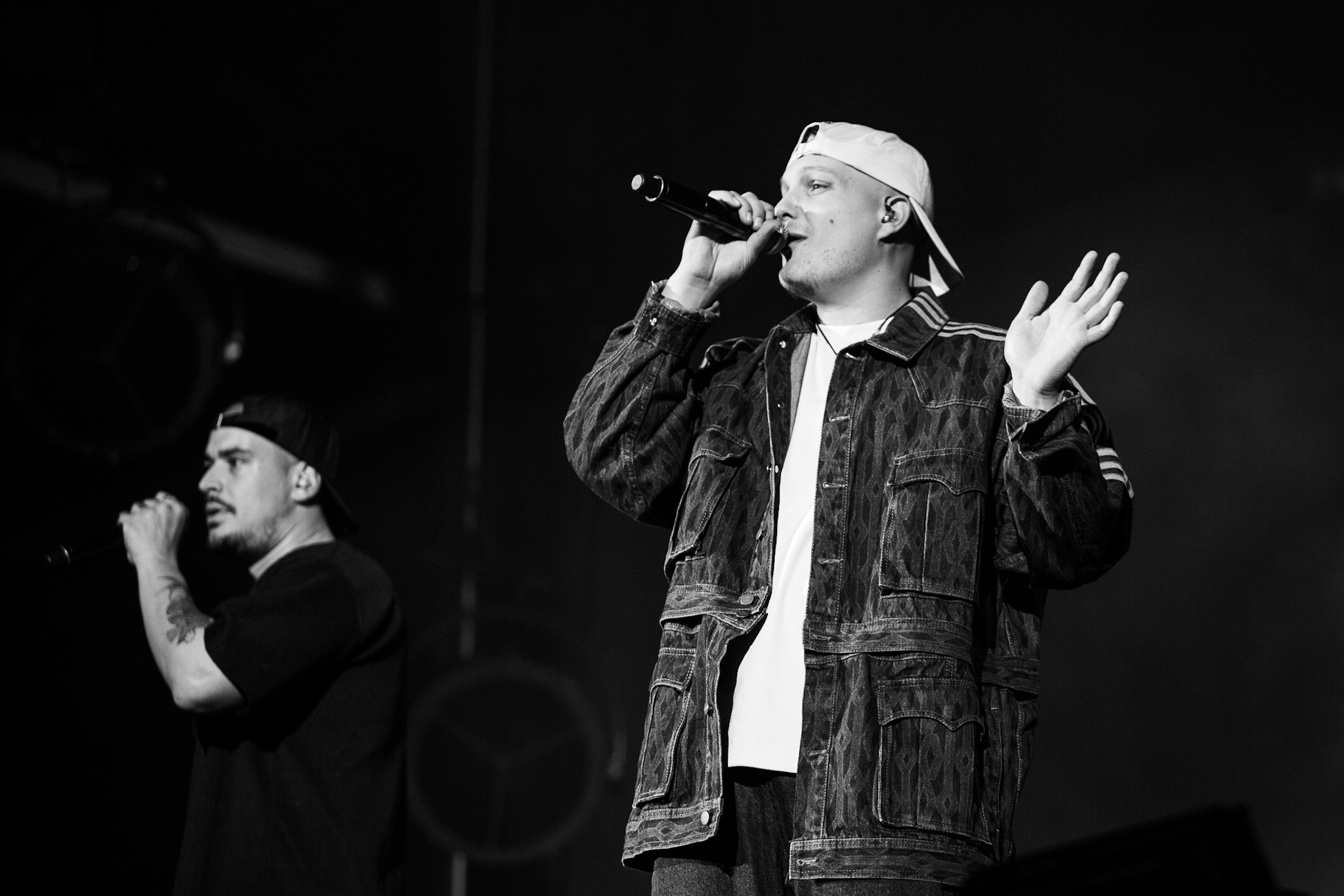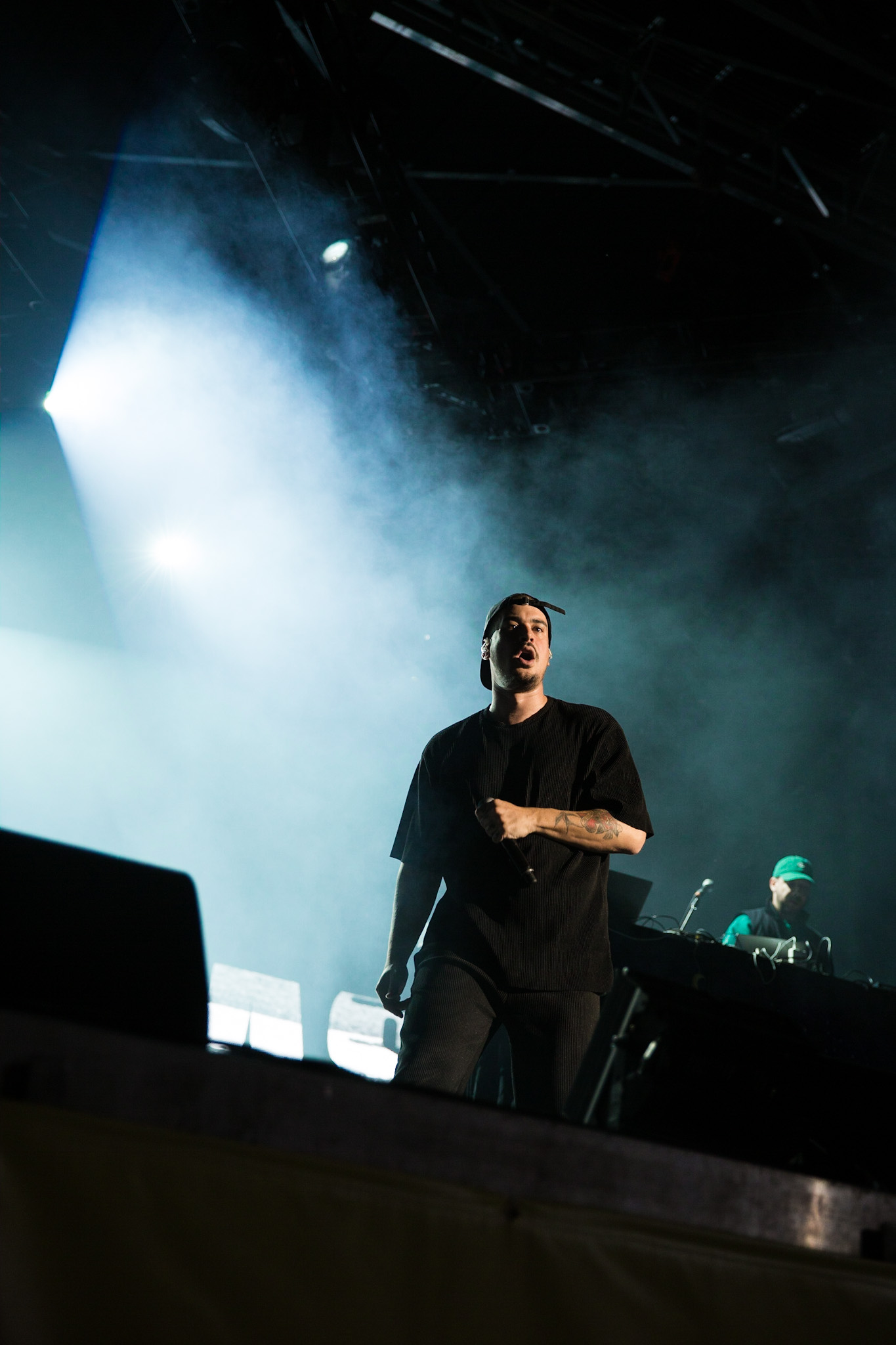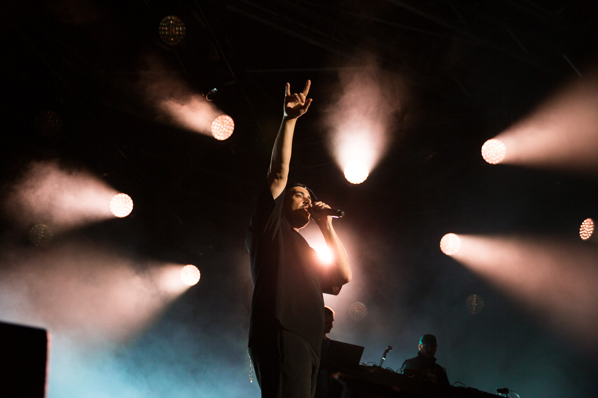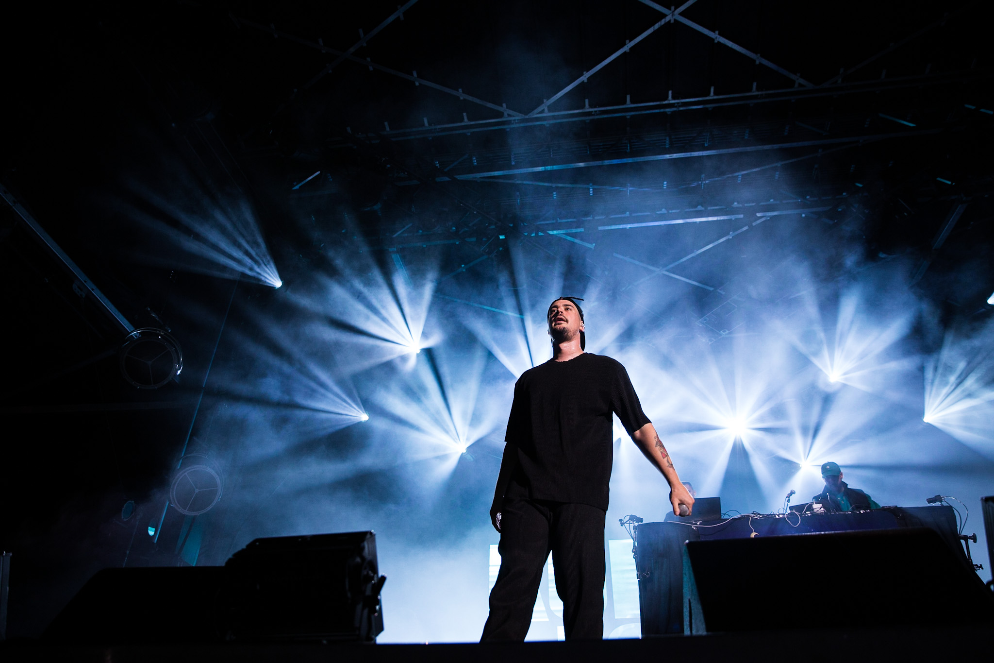 FouKi et Koriass ont honnêtement une belle complicité ensemble, et Koriass en a une encore plus belle avec les caméras braqués sur lui. On voit qu’il aime jouer avec elles. Les deux hommes ont également eu le temps de briller en mode esseulé : Koriass avec Blacklights (qui a donné tout un coup de fouet à une foule déjà pas mal survoltée) et 5 à 7 et FouKi avec Ciel et Copilote.