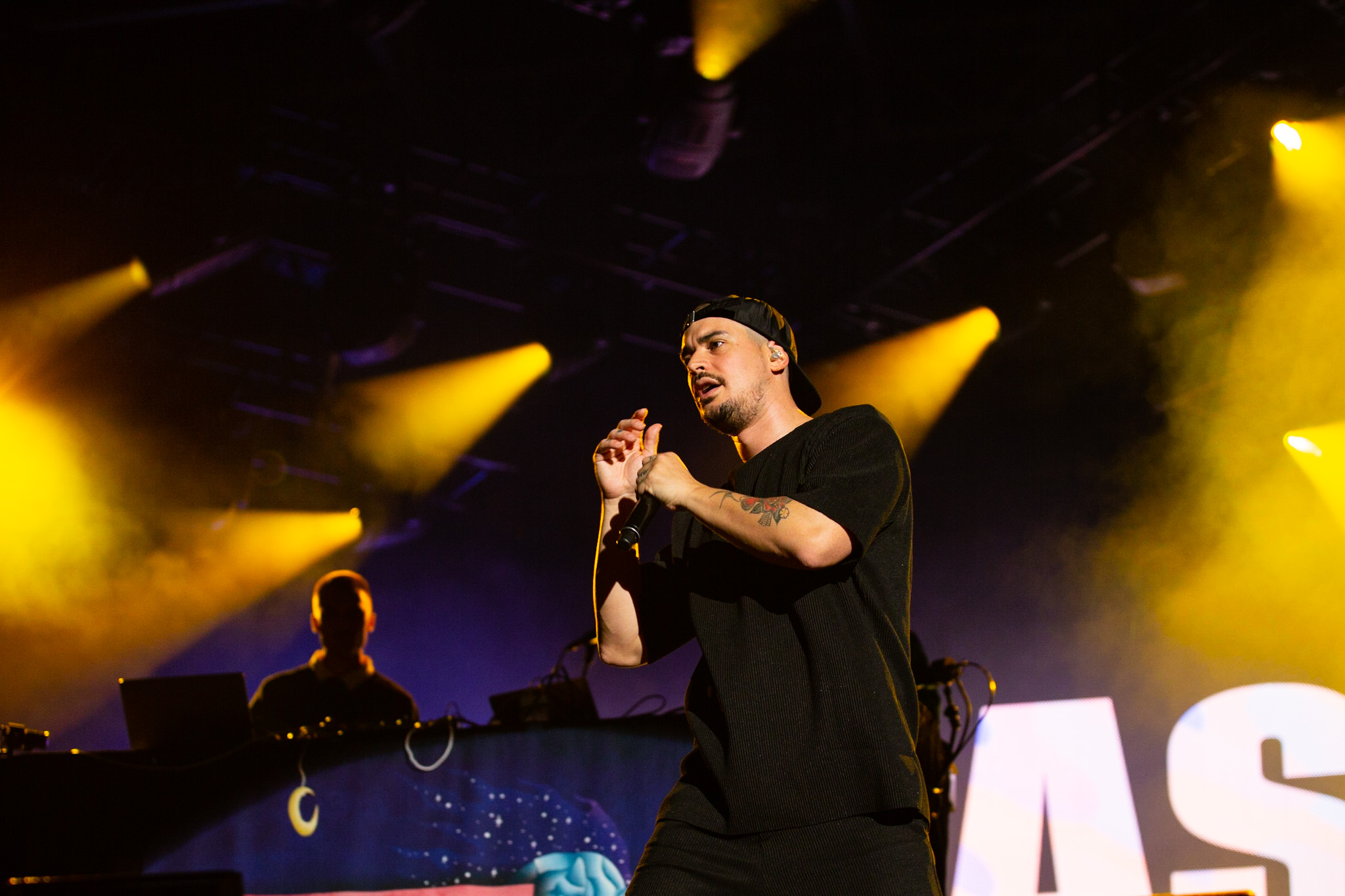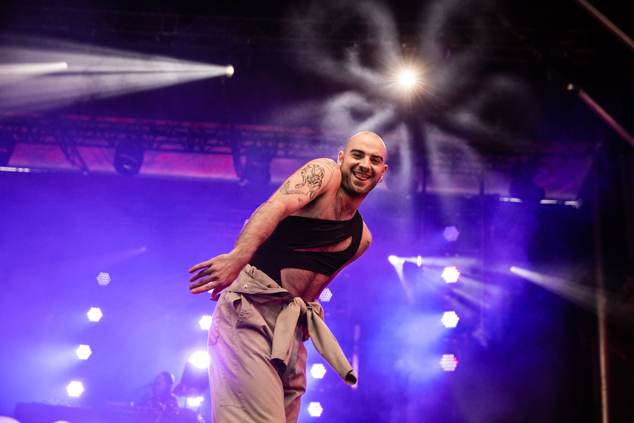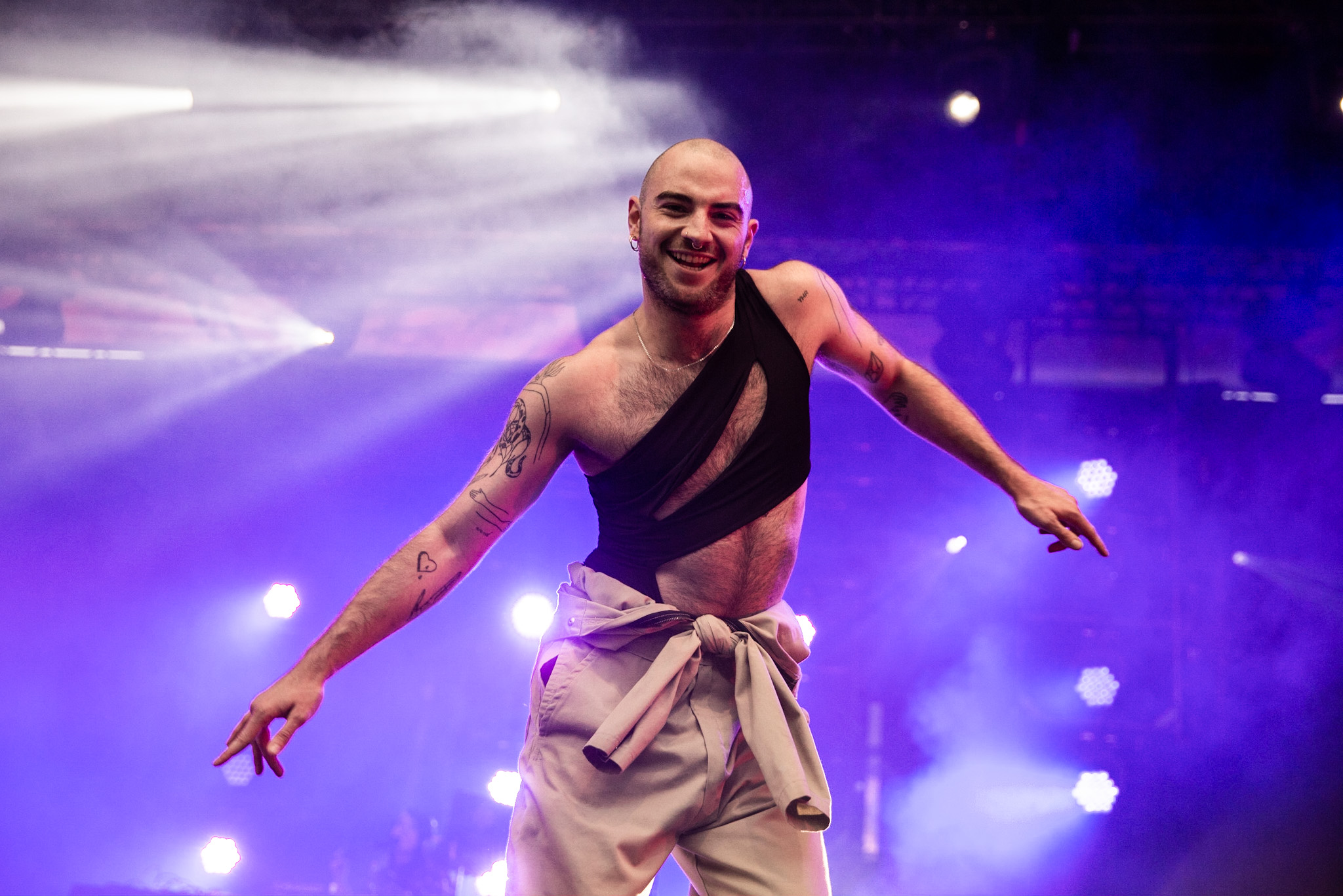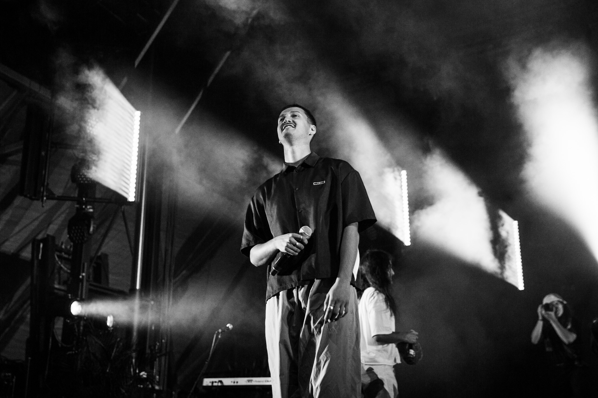 FouKi et Koriass ont honnêtement une belle complicité ensemble, et Koriass en a une encore plus belle avec les caméras braqués sur lui. On voit qu’il aime jouer avec elles. Les deux hommes ont également eu le temps de briller en mode esseulé : Koriass avec Blacklights (qui a donné tout un coup de fouet à une foule déjà pas mal survoltée) et 5 à 7 et FouKi avec Ciel et Copilote.