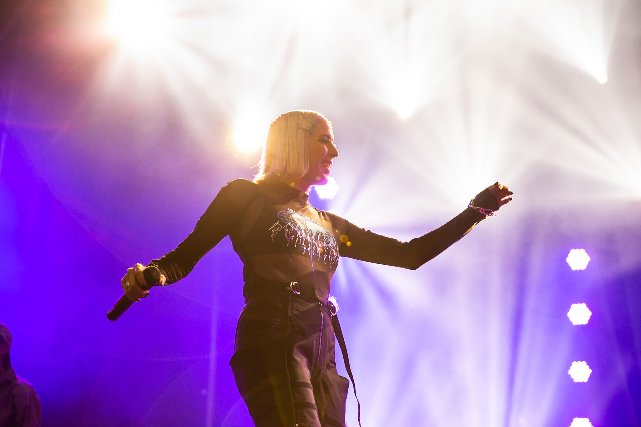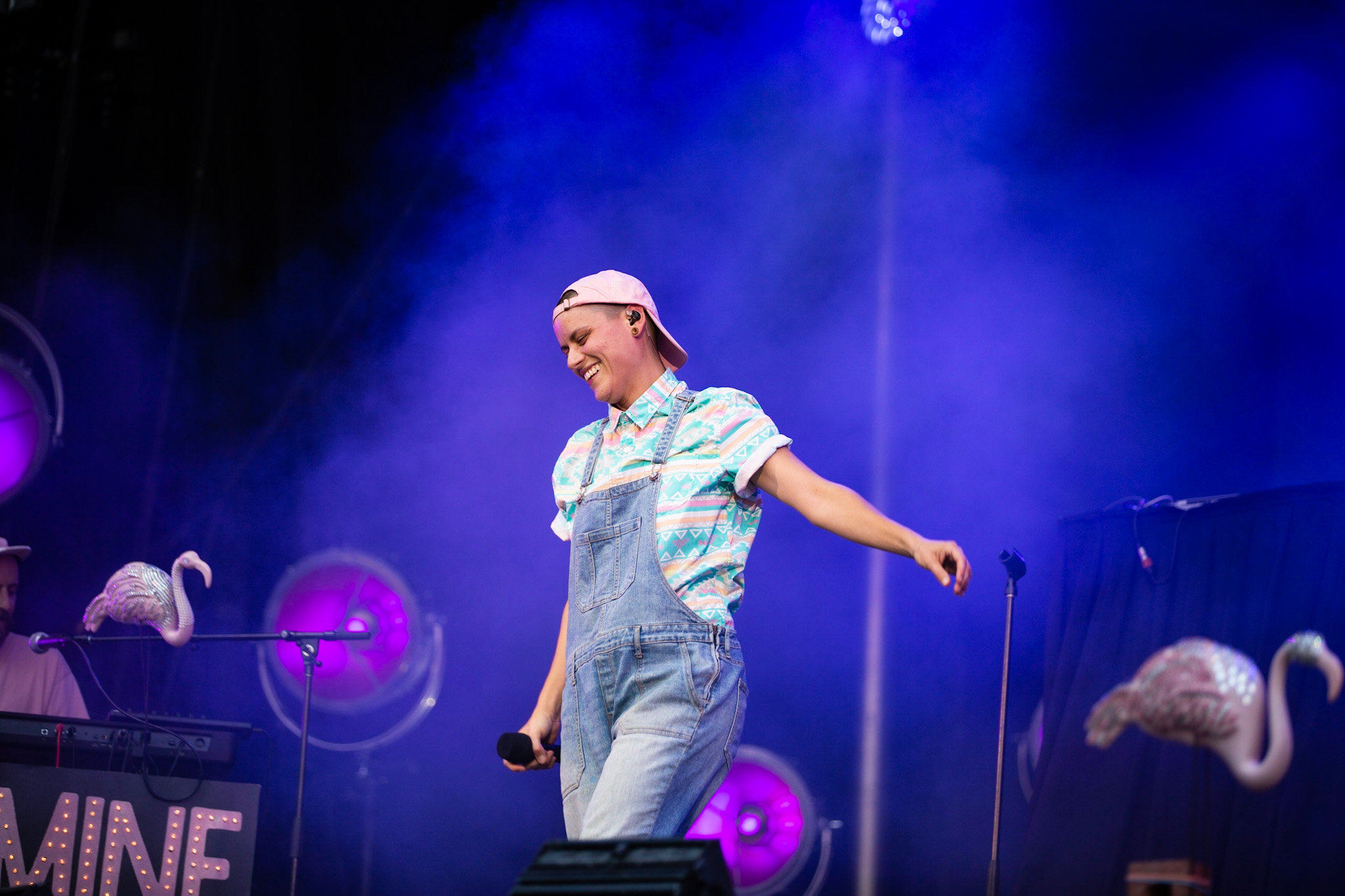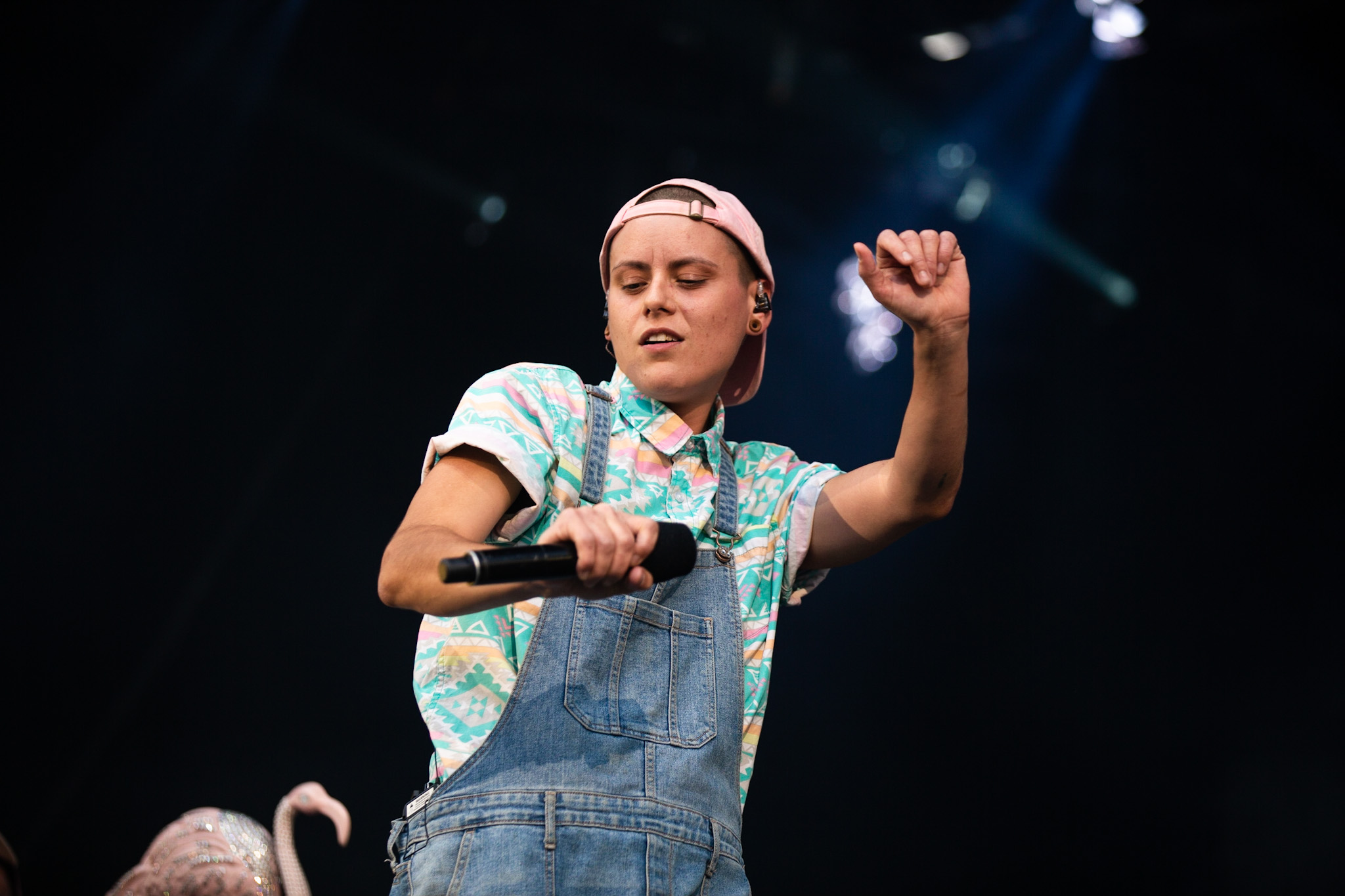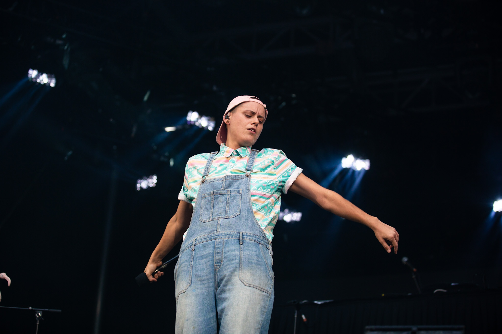 La soirée a commencé en beauté avec la pétillante Calamine. Elle était visiblement vraiment contente d’être là, fucking même, si vous me le permettez. Elle a offert une version live de la majorité des pièces qui se retrouvent sur son album de 2020, Boulette Proof, ainsi que quelques pièces de son album à venir Lesbienne woke sur l’autotune. Ce titre lui provient de la première insulte qu’elle a reçue sur les réseaux sociaux.