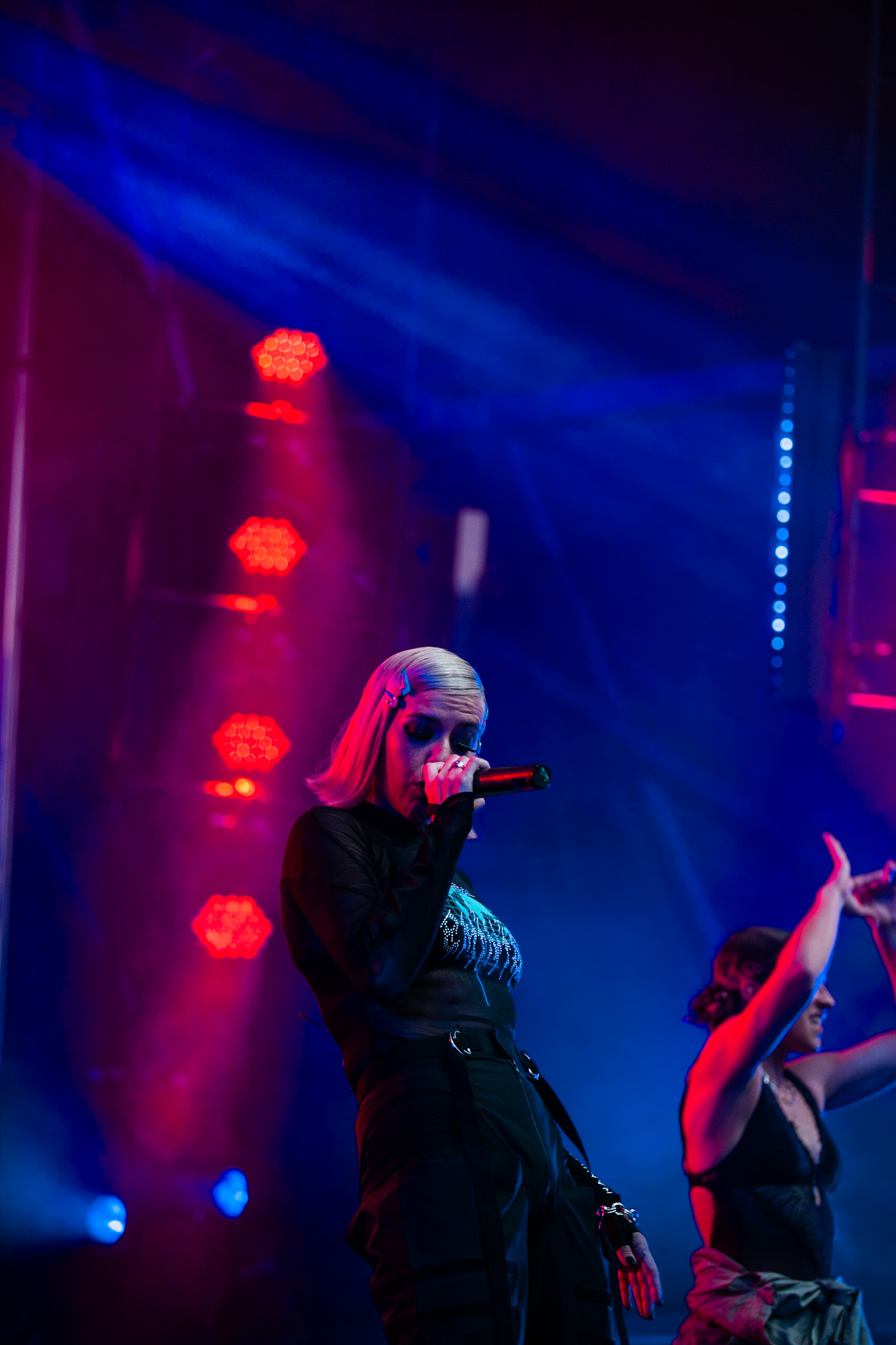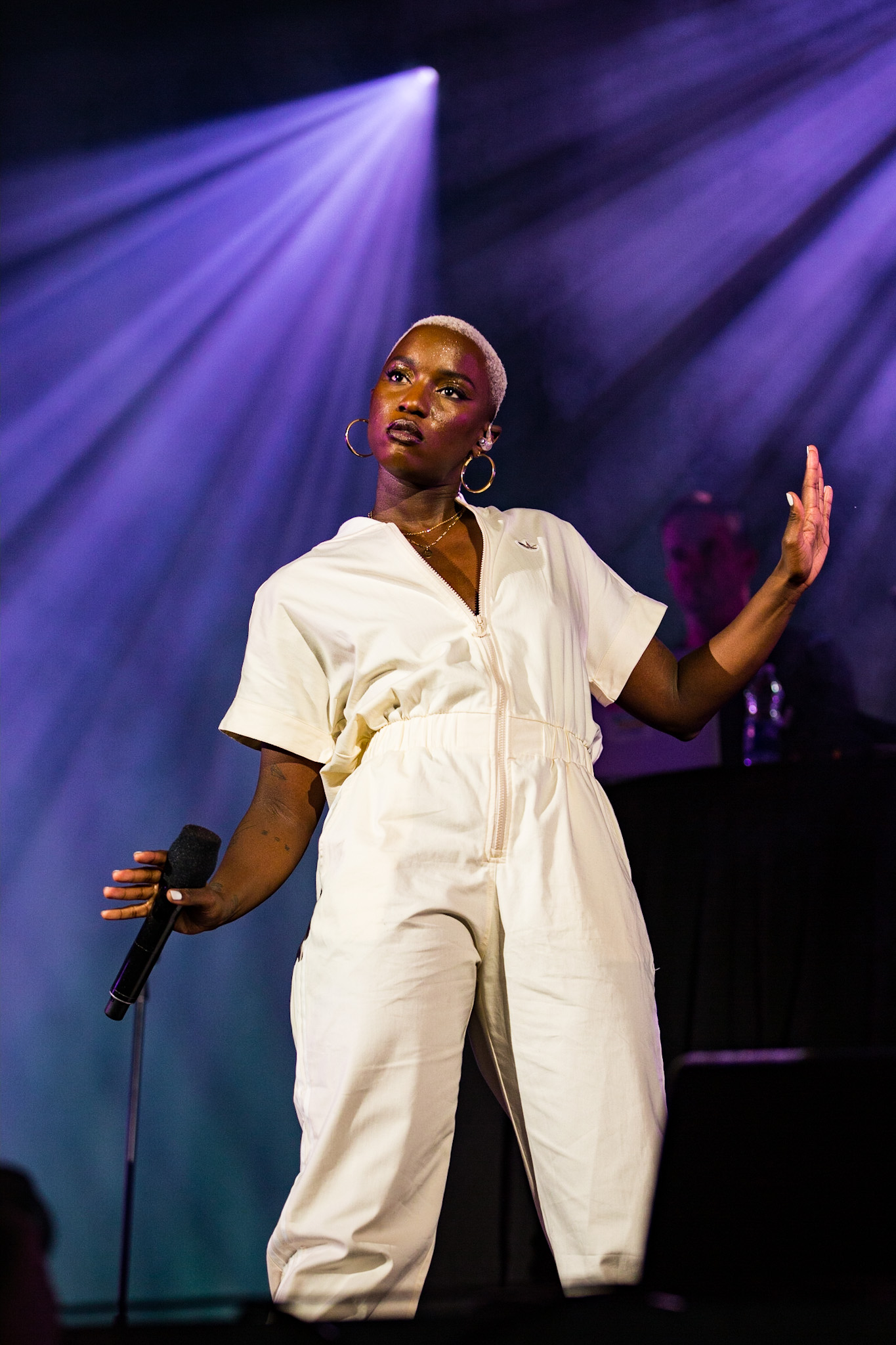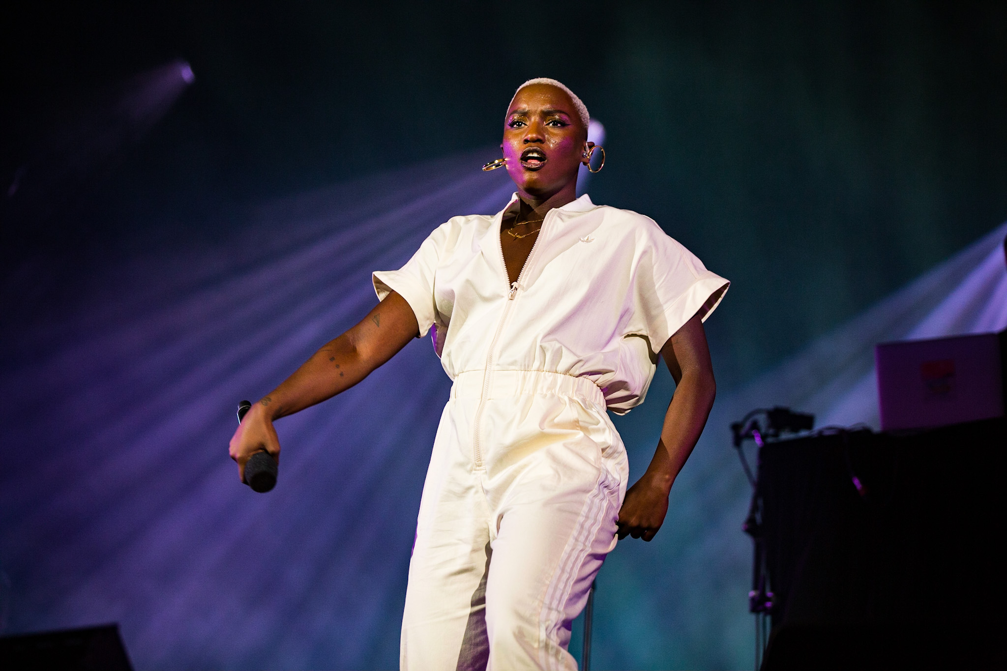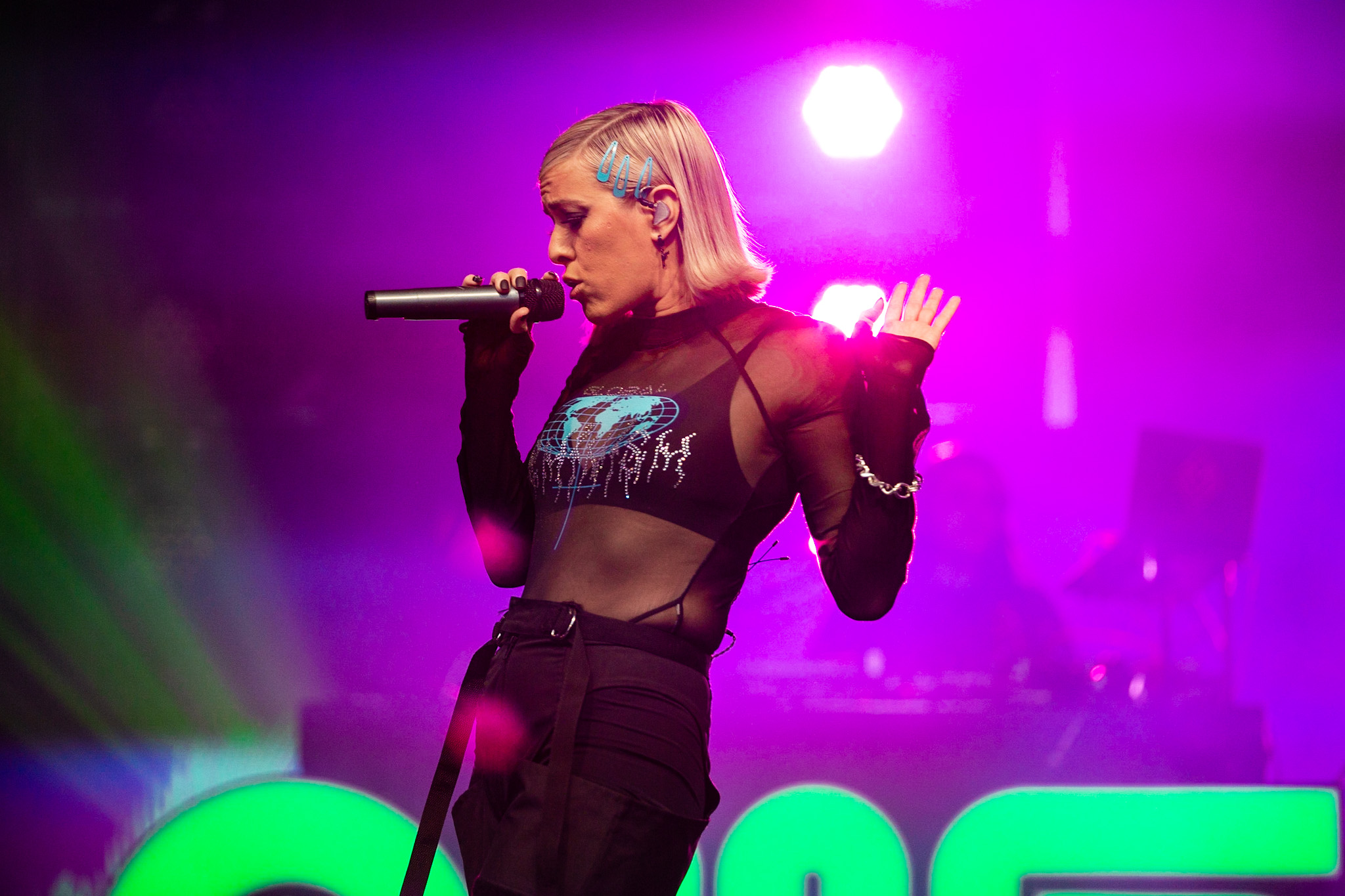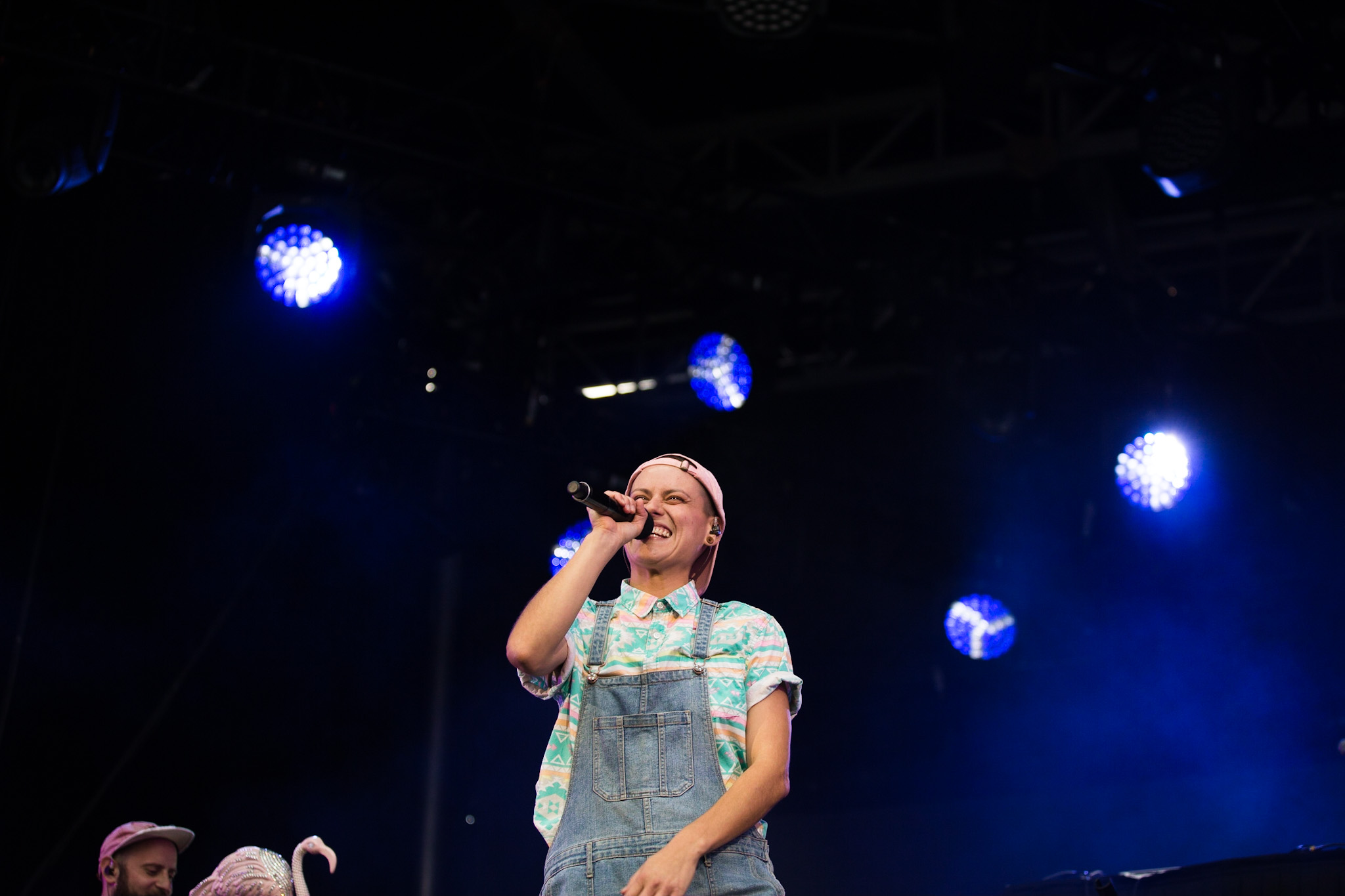 La soirée a commencé en beauté avec la pétillante Calamine. Elle était visiblement vraiment contente d’être là, fucking même, si vous me le permettez. Elle a offert une version live de la majorité des pièces qui se retrouvent sur son album de 2020, Boulette Proof, ainsi que quelques pièces de son album à venir Lesbienne woke sur l’autotune. Ce titre lui provient de la première insulte qu’elle a reçue sur les réseaux sociaux.