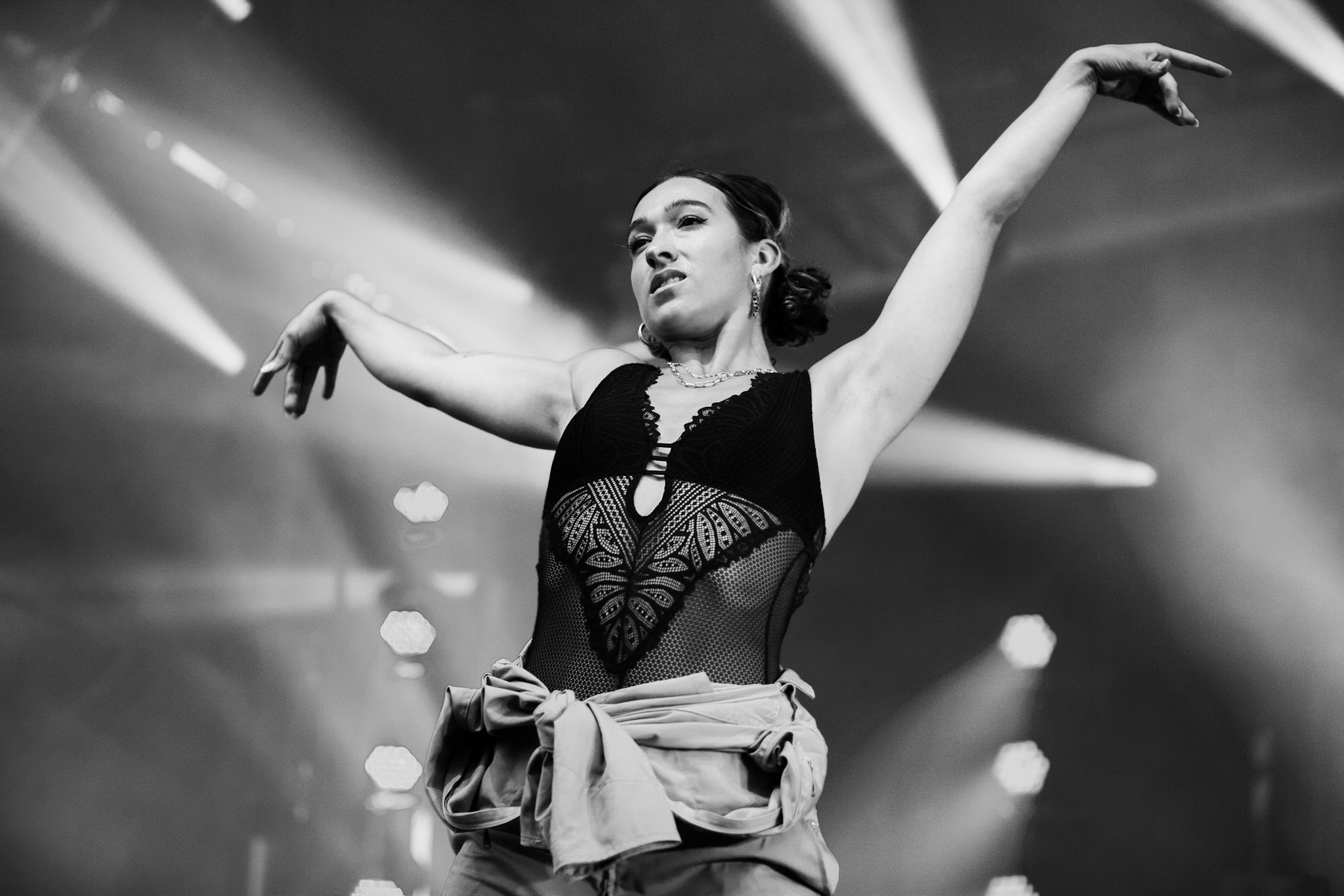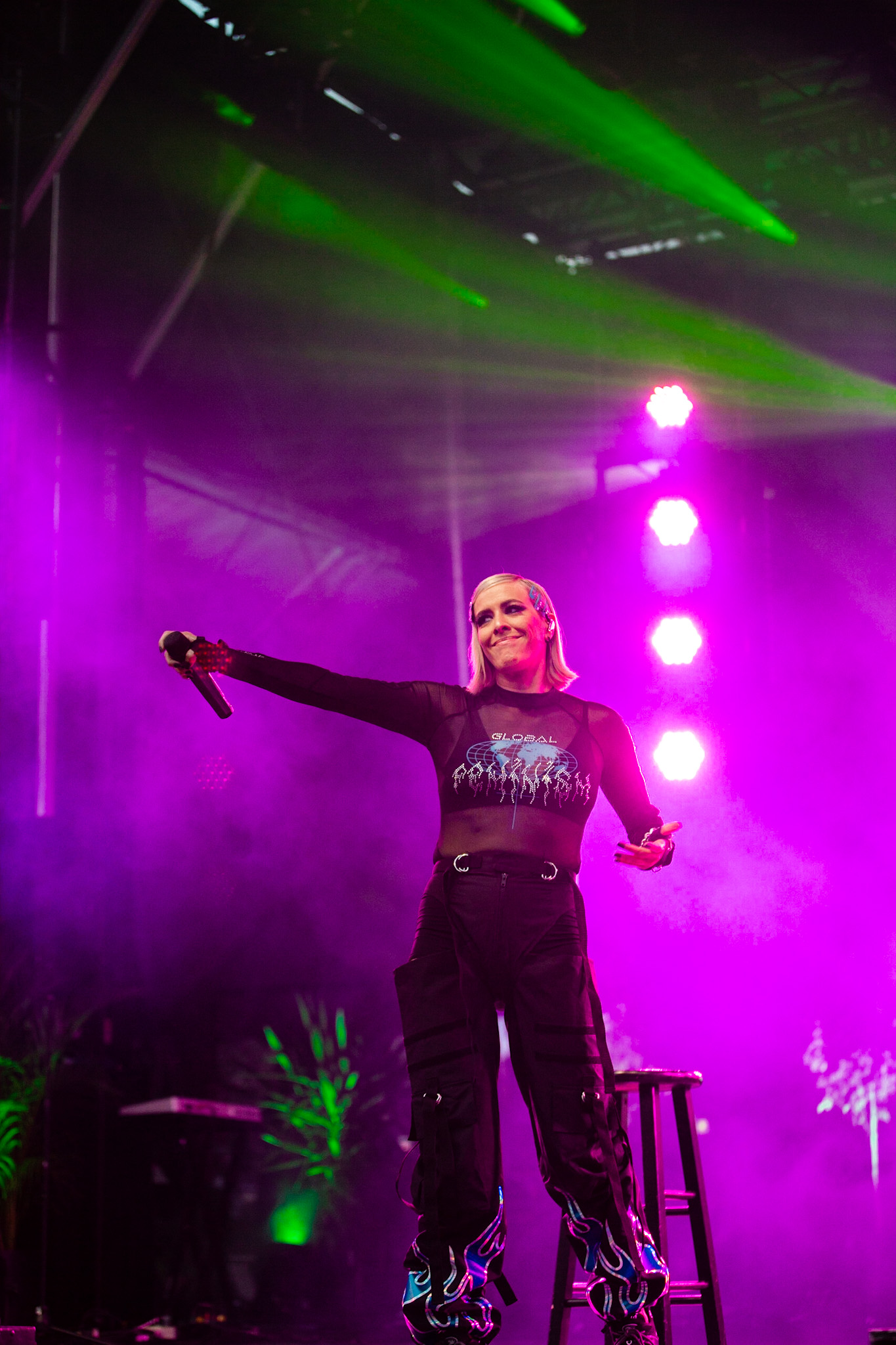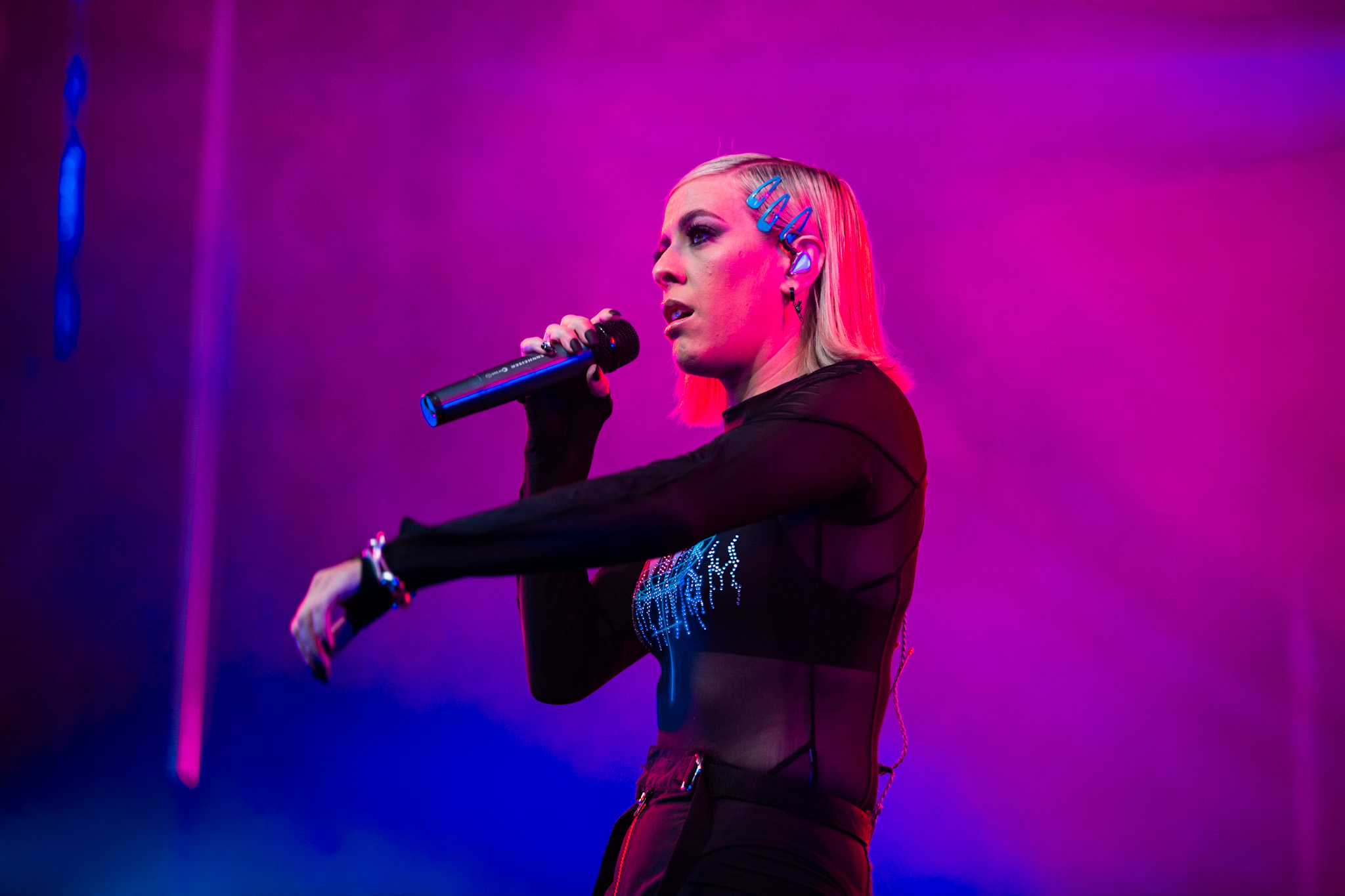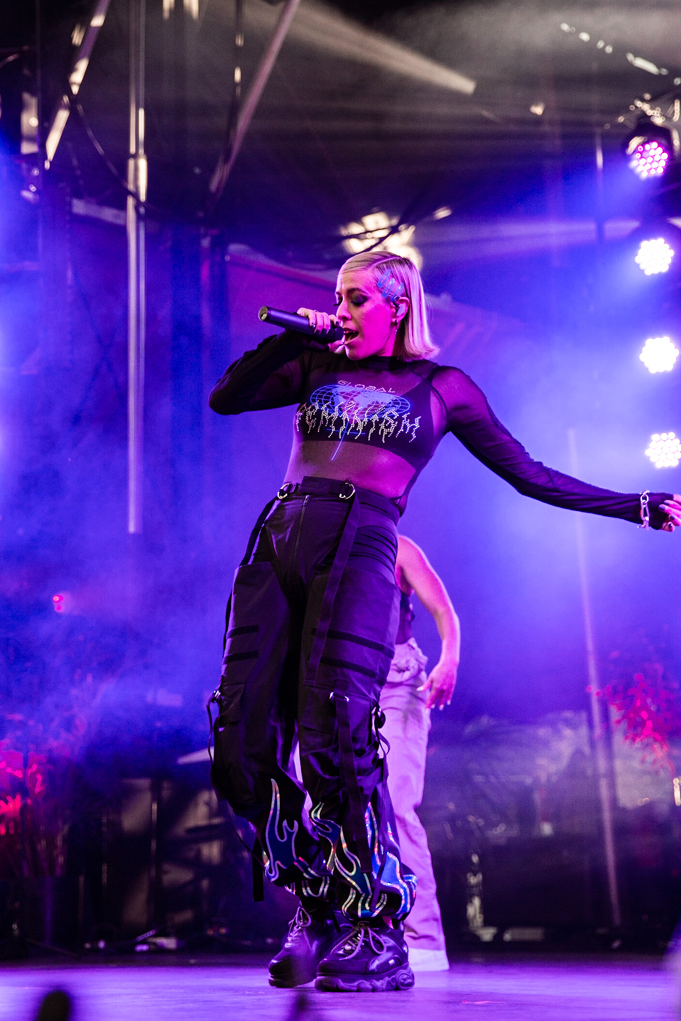 La soirée a commencé en beauté avec la pétillante Calamine. Elle était visiblement vraiment contente d’être là, fucking même, si vous me le permettez. Elle a offert une version live de la majorité des pièces qui se retrouvent sur son album de 2020, Boulette Proof, ainsi que quelques pièces de son album à venir Lesbienne woke sur l’autotune. Ce titre lui provient de la première insulte qu’elle a reçue sur les réseaux sociaux.