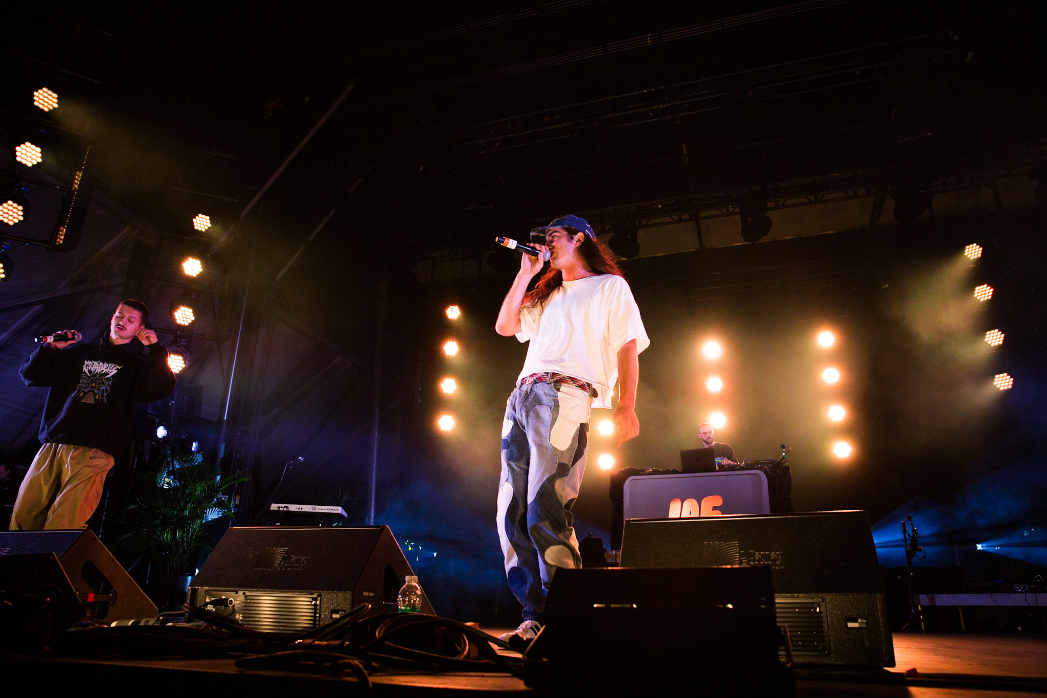 J’avoue qu’au début, quand j’ai vu FouKi et Koriass ensemble sur la programmation des Francos, j’ai été surprise. Je doutais de la viabilité de la cohabitation entre ces deux rappeurs ensemble. Ils ont une énergie diamétralement opposée. Mais l’année passée, ils ont lancé un album ensemble, Génies en herbe. Honnêtement, en spectacle, ça le fait entièrement. Même si ça donne des moments un peu spéciaux où Koriass rappe comme seul Koriass sait le faire, un peu agressivement, comme sur la pièce Bénis par exemple, vers un pauvre FouKi qui ne réussit pas à matcher cette énergie.